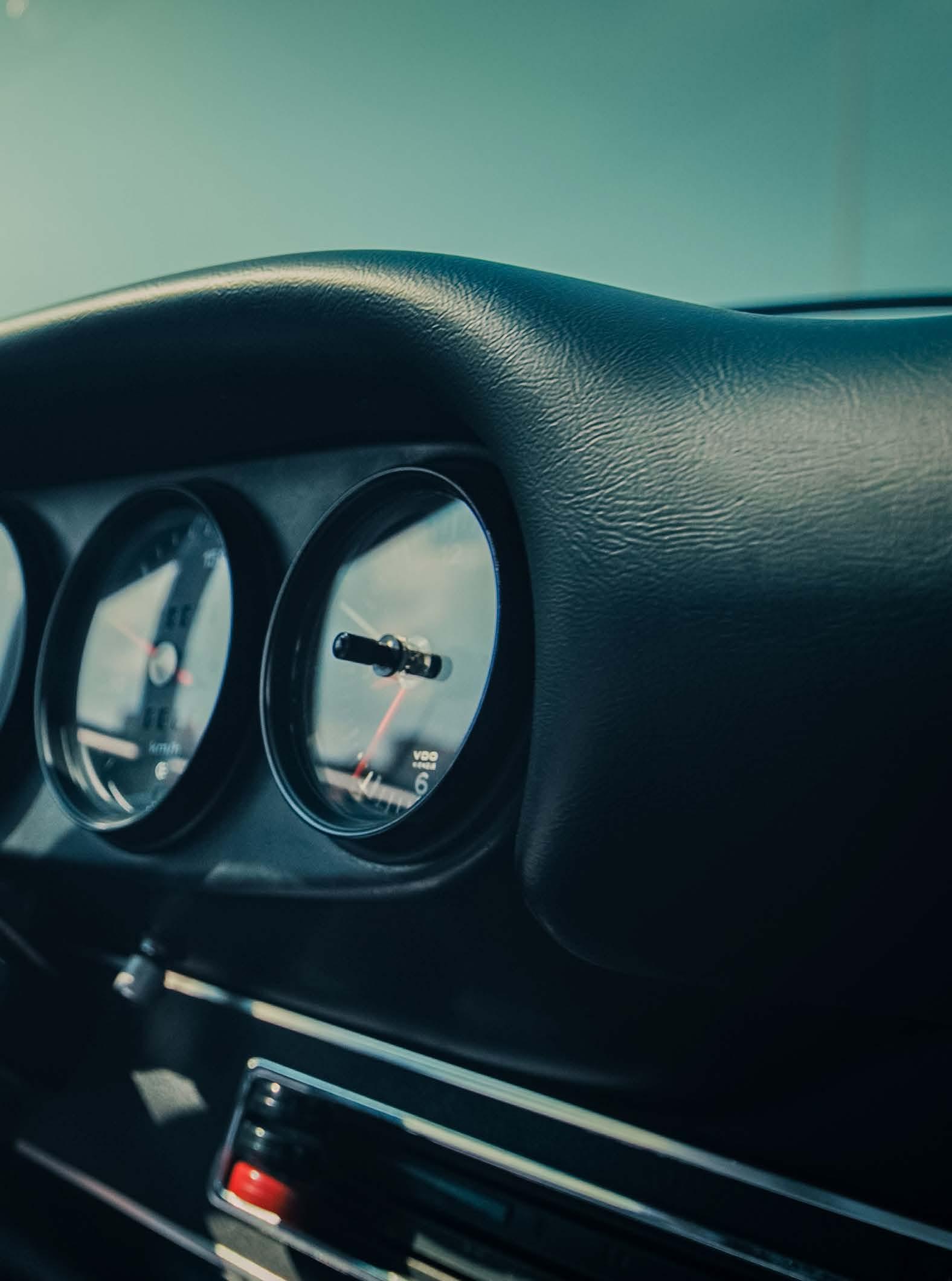 From 1974, a striking Guards Red Carrera Coupe, wearing black 911 script on the bonnet, a detail rarely seen and appreciated by the keen-eyed covered the enterance. Inside it's 1974 counter
