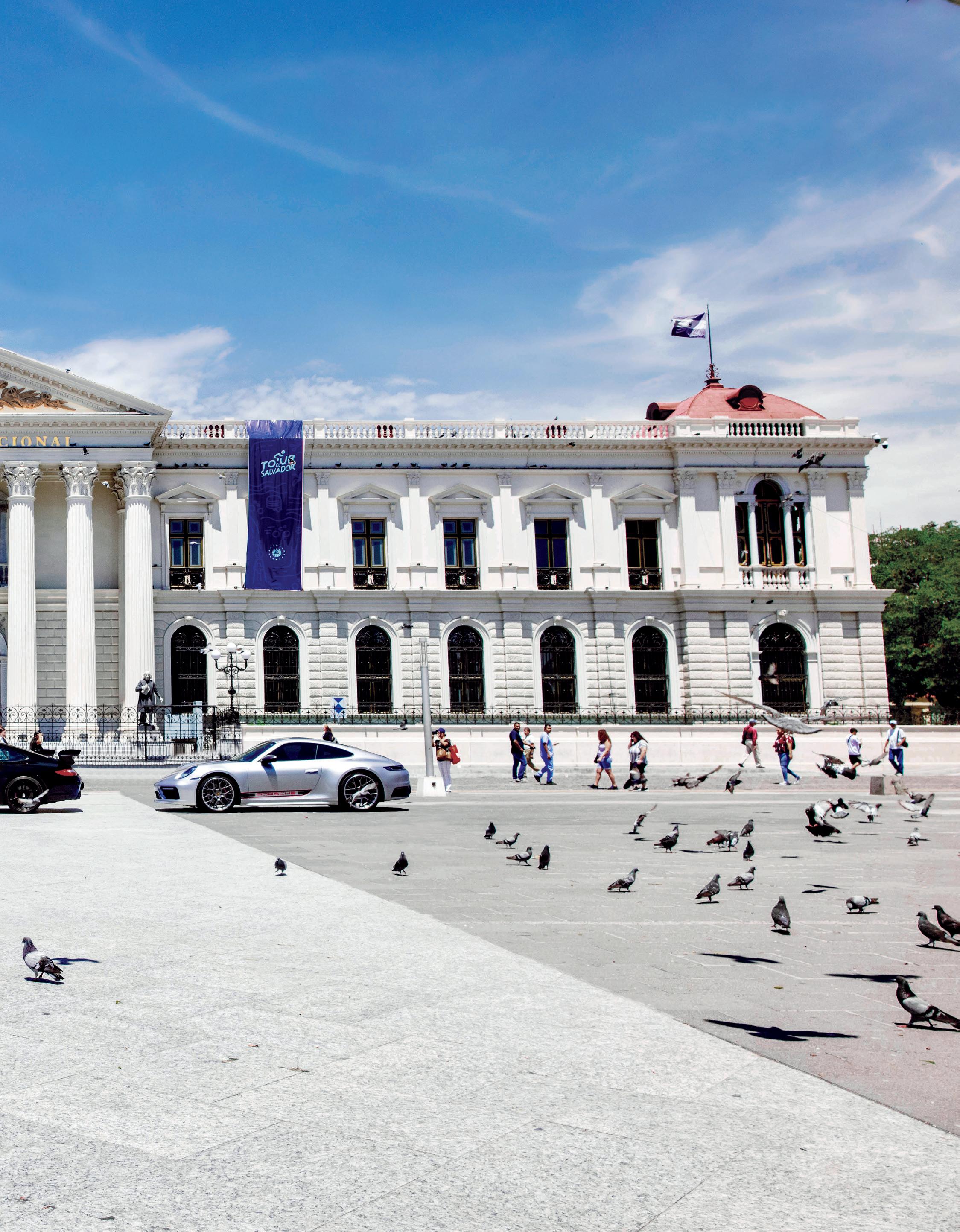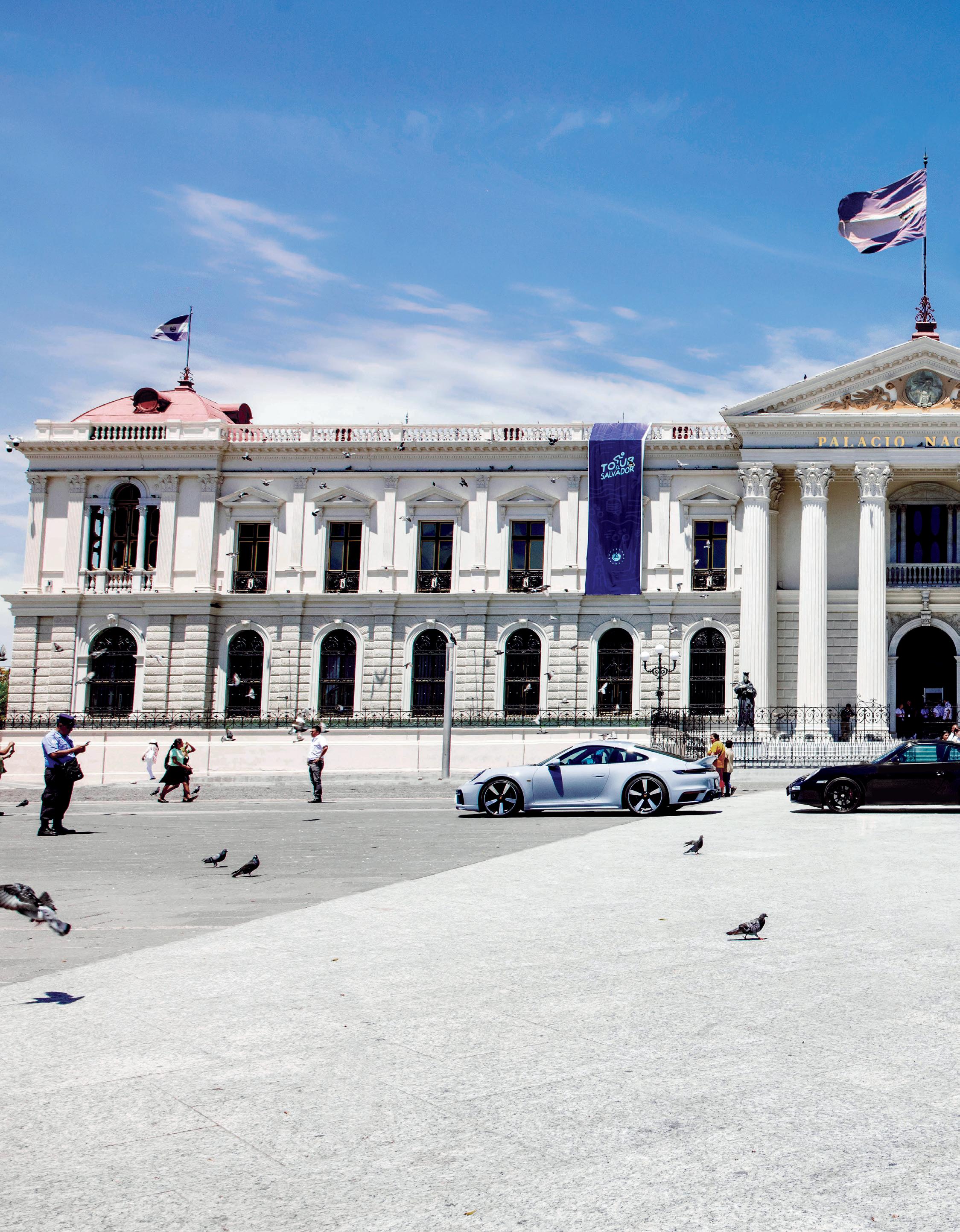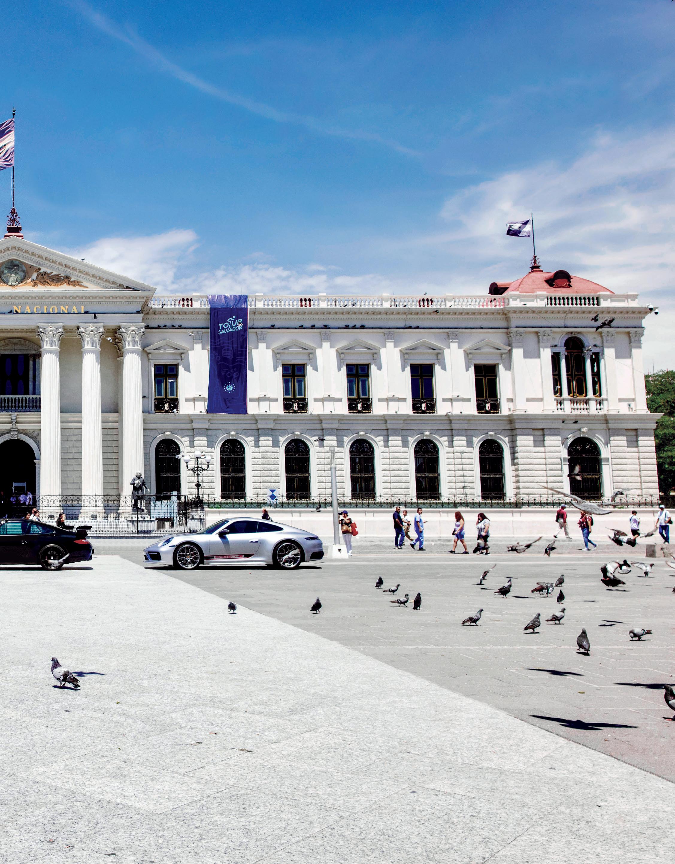 This is where we’ve planned our photo session. The square is heavily secured and accessible only to pedestrians. Police officers and soldiers stand guard at every corner. It is therefore a rare privilege that Porschist received permission to drive three Porsches onto the square. Guillermo Damián, Max Nogua, and Javier Prado, three members of the Salvadoran Porsche Club, are all present. They wouldn’t miss this unique moment for anything. We hold our breath as the cars slowly roll onto the plaza, wondering whether all the soldiers have actually been informed of our authorization. In El Salvador, people have been detained for far less. But everything goes smoothly. For a brief moment, Porsche merges with the heritage of El Salvador, captured in an unforgettable image. We immediately decide that this photograph will grace the cover of the next Porschist edition.