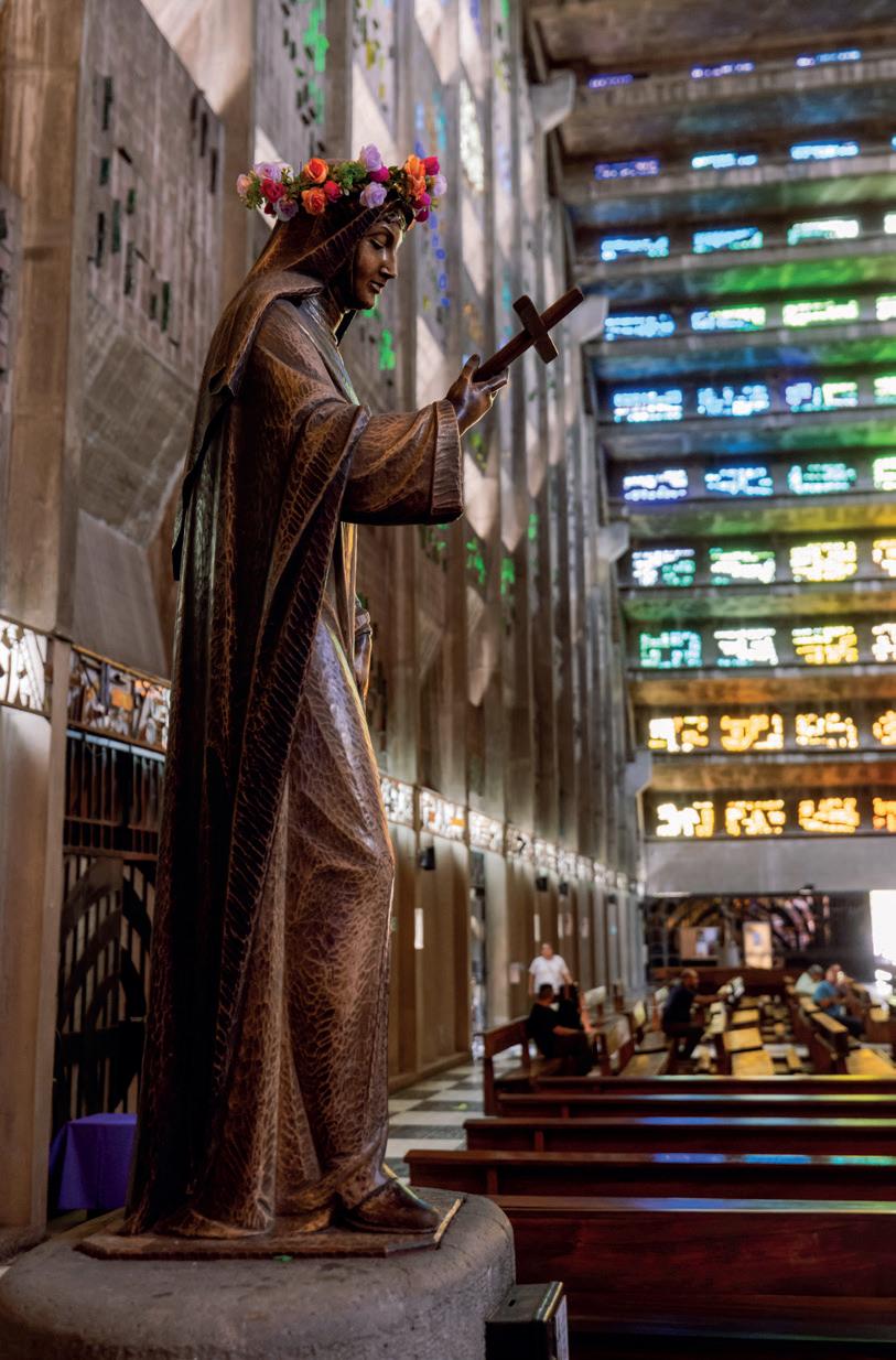 Within walking distance stands the Iglesia El Rosario, often praised as one of El Salvador’s architectural gems. From the outside it looks austere, almost industrial, a concrete arch with no ornamentation. But inside, a breathtaking play of light awaits us. Hundreds of stained-glass windows let sunlight dance across the floor in shifting rainbows. The church is unique because it is completely free of supporting pillars, thanks to an innovative structure of curved concrete ribs that hold up the roof. The design was so revolutionary, so radically different from traditional church architecture, that it could only be built with the personal approval of the Pope.