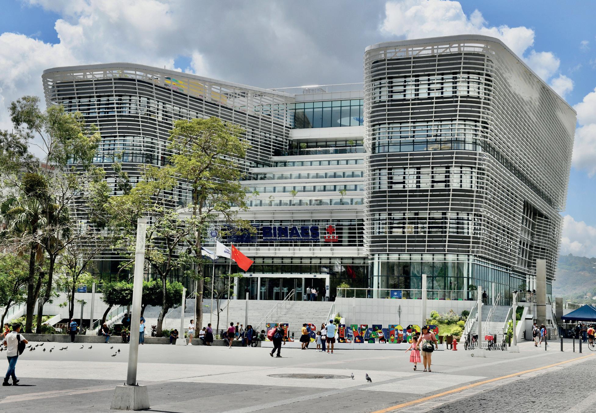 On the same square, right next to the Palacio Nacional, stands the new Biblioteca Nacional de El Salvador. The futuristic building, fully designed and financed by China, is striking for its façade of vertical slats that open and close depending on the light, causing the structure to constantly change in color and atmosphere. At the entrance, the Salvadoran flag waves alongside the red five-star flag. Since El Salvador broke diplomatic ties with Taiwan in 2018, Beijing has been investing in large-scale projects in the country. A strategy that fits neatly within China’s broader ambition to strengthen its presence in Latin America.