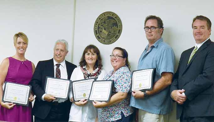 to R: Amanda Hopkins, Ph.D., RN, Illinois Wesleyan University; O. Ed Reitz, Ph.D., RN, Illinois State University; Amy Grugan, MSN, RN, Bradley University; Angela J. Caldieraro-Bentley, MS, RN-BC, St. John’s College; Richard Ellis, MSN, MSHA, RN, Methodist College; and Kevin Schoeben, IBHE Deputy Director for Fiscal Affairs.
