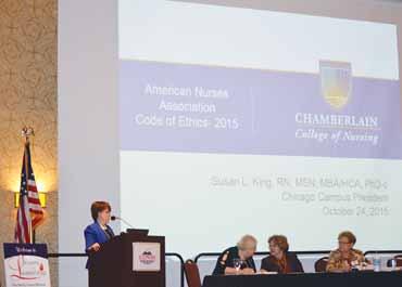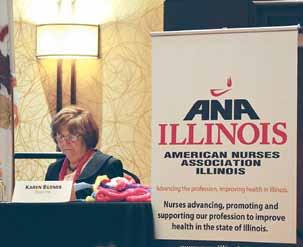 ANA-Illinois president, Pam Brown shared with those present the association’s progress toward meeting the 2015-2018 strategic goals: (1) Promote a safe, ethical environment as well as the health and wellness of nurses in all settings; (2) Advance the quality and safety of patient care in a transforming health care environment; (3) Optimize professional nursing practice and the quality of health care in Illinois through leadership development and by ensuring full use of the knowledge and skills of RNs and APNs; and (4) Aggressively grow membership by acquiring, engaging and retaining members.