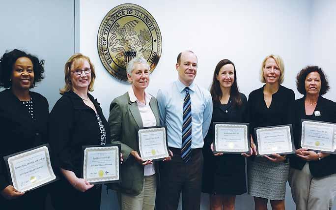 The Illinois Board of Higher Education (IBHE) and the IDFPR Advisory Board for the Illinois Center for Nursing (ICN) recognized the 2015 Nurse Educator Fellows on September 9, 2015 in a joint ceremony held in Chicago and Springfield. This distinguished group of 22 Nurse Educator Fellows were nominated by their schools and selected from 49 nominations. The Fellows shared information about their research projects with the group of nursing leaders and were commended for their work