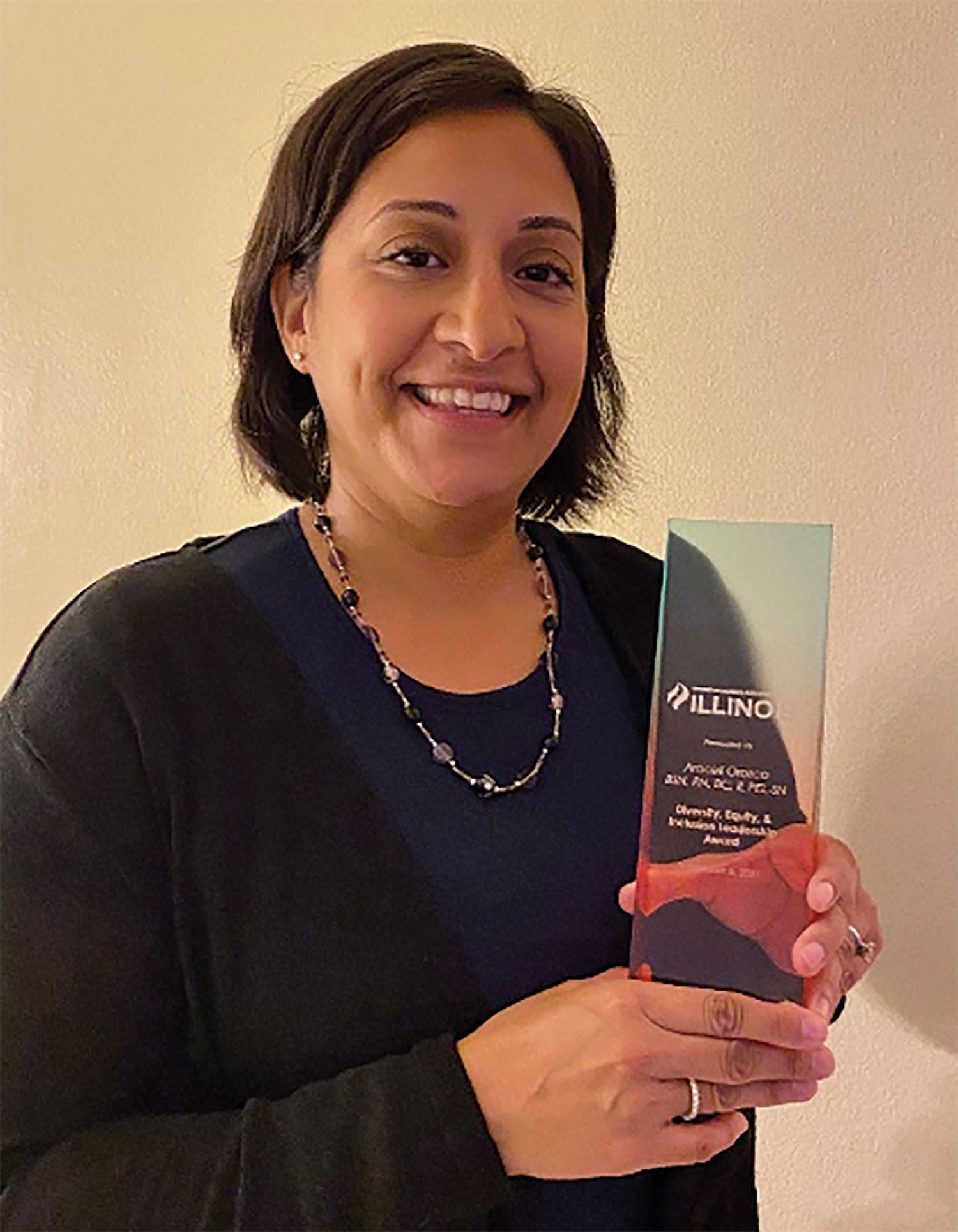 As an organization, we have many things to be grateful for as we have made significant progress this year despite continuing to live through the COVID-19 pandemic, and I’ll highlight some of those achievements. Congratulations to our newly elected ANA-Illinois Board of Directors, and thank you to Dr. Colleen Morley and Dr. Nicole Lewis for your service and contributions over the years. We have hosted monthly virtual Nursing Hot Topics meetings that offer CEs for attending; thus far, topics have focused on self-care, nurse staffing, personal branding, ethical leadership, and moving into clinical leadership roles. We look forward to continuing these virtual meetings and are open to more topic ideas. Members, affiliates, students, and non-members are all welcome to attend these virtual meetings. The Expert Panel on Diversity, Equity, and Inclusion (DEI) have made significant progress this year with establishing goals to maximize diversity, strengthen equity, and optimize inclusion, sharing resources on the ANA-Illinois website, establishing a new DEI Leadership Award, and the on-demand Train-the-Trainer Webinar Series continues to have great success—visit the ANA-Illinois website to register for upcoming webinars. Thank you to those who participated in the RNconnect to Well-Being text messaging program; we hope you found the resources helpful and will continue prioritizing your health and wellness. The ANA-Illinois Board of Directors supported signing a joint statement with ANA taking a position on mandatory COVID-19 vaccinations for healthcare workers, voted to adopt a formal DEI statement that commits to advancing the values of DEI across the association, and members were appointed to the new Community Service Task Force and Expert Panel on Nursing Education. Legislatively we had a huge success in getting the Nurse Staffing Improvement Act of 2021 passed and signed into law! Thank you to everyone who helped make this happen by communicating with your elected officials. A special thank you to our lobbyists Sue Clark, Debbie Broadfield, and Kristin Rubbelke for their tireless efforts to get this bill passed to work towards a better solution to nurse staffing. Thank you to Dr. Susan Swart for working with other stakeholders to ensure hospital leaders and nurses understand and follow the new law.