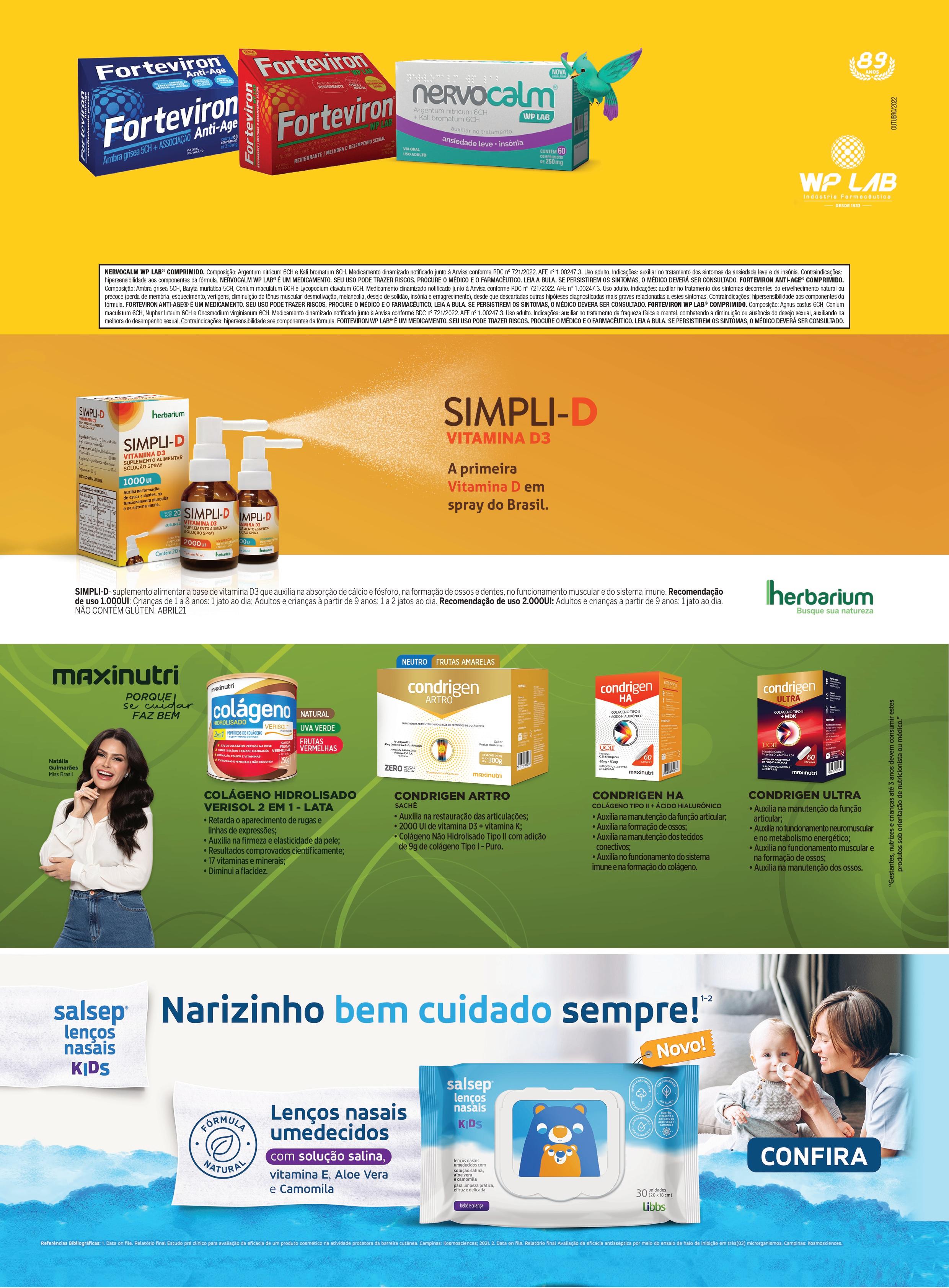 Forteviron Anti Age com 60 comprimidos 99, 90 cadaR$ Forteviron 250mg com 60 Comprimidos 67, 10 cadaR$ Nervocalm 250mg com 60 comprimidos 68, 90 cadaR$ Salsep lenços Nasais Kids com 30 unidades18, 99 Rcada $ Simpli D 1 000UI spray com 20ml 49, 90 Rcada $ Simpli D 2 000UI spray com 20ml 59, 90 Rcada $ 79, 90 Rcada $ 114, 90 Rcada $ 149, 90 Rcada $ 119, 90 Rcada $