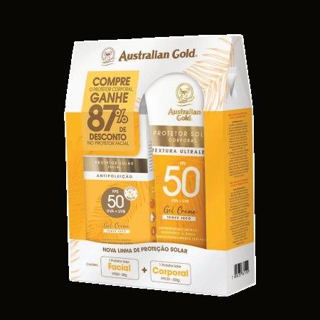 Protetor Sola Australian Go 03 Antioleosi FPS 60 40g 54, 9 62, 90 de por cada Acelerador Australian Gold Dark Tanning 237ml 35, 90 cada 42, 90 de por cada Bronzeador Australian Go Accelerator I Bronzer gel s 237g 62, 9 72, 90 de por cada Protetor Sola Corporal Aus Gold gel spra 30 237ml 64 72, 90 de por cada Bronzeador Australian Gold Intensifier 237ml 74, 90 cada 82, 90 de por cada Kit Australian Gold Protetor Solar Corporal FPS 50 200g + Protetor Solar Facial FPS 50 antipoluição 50g 65, 90 cada 78, 90 de por cada