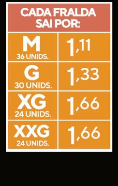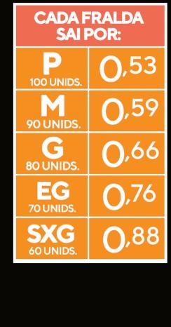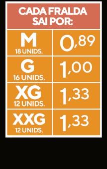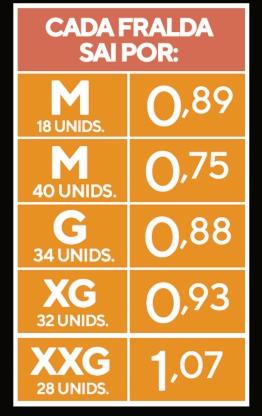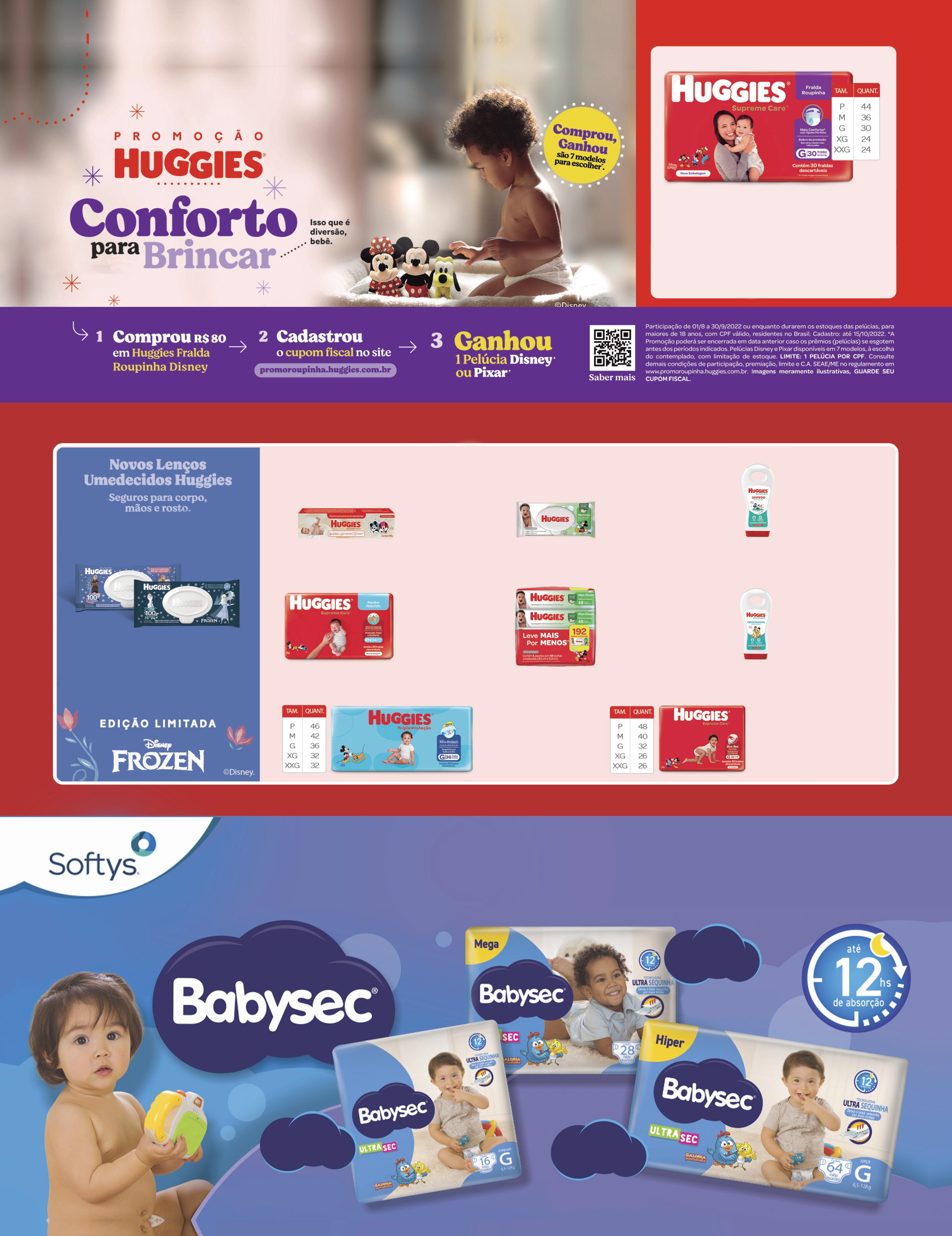 Creme preventivo de assaduras Huggies Supreme Care 80g 21, 89 cada Fralda Babysec Ultra Sec Hiper tamanhos 69, 90 cada 79, 90 de por cada Fralda Babysec Ultra Sec tamanhos 29, 89 cada 36, 99 de por cada Fralda Babysec Ultra Sec tamanhos 15, 99 cada 18, 69 de por cada Lenço umedecido Huggies Supreme Care com 48 unidades leve 4, pague 3 38, 67 cada Shampoo Huggies Disney Baby 400ml 20, 81 cada Shampoo Huggies Disney Baby 200ml 11, 89 cada Toalhas umedecidas Huggies Disney Baby com 48 unidades 12, 89 cada Fralda Huggies Supreme Care Mega tamanhos 39, 89 cada Fralda Huggies Tripla Proteção tamanhos 39, 90 cada Fralda Huggies Supreme Care Mega tamanhos 39, 89 cada 48, 90 de por cada FraldaSupremeHuggiesCareRecém-Nascido-tamanhos 29, 89 cada