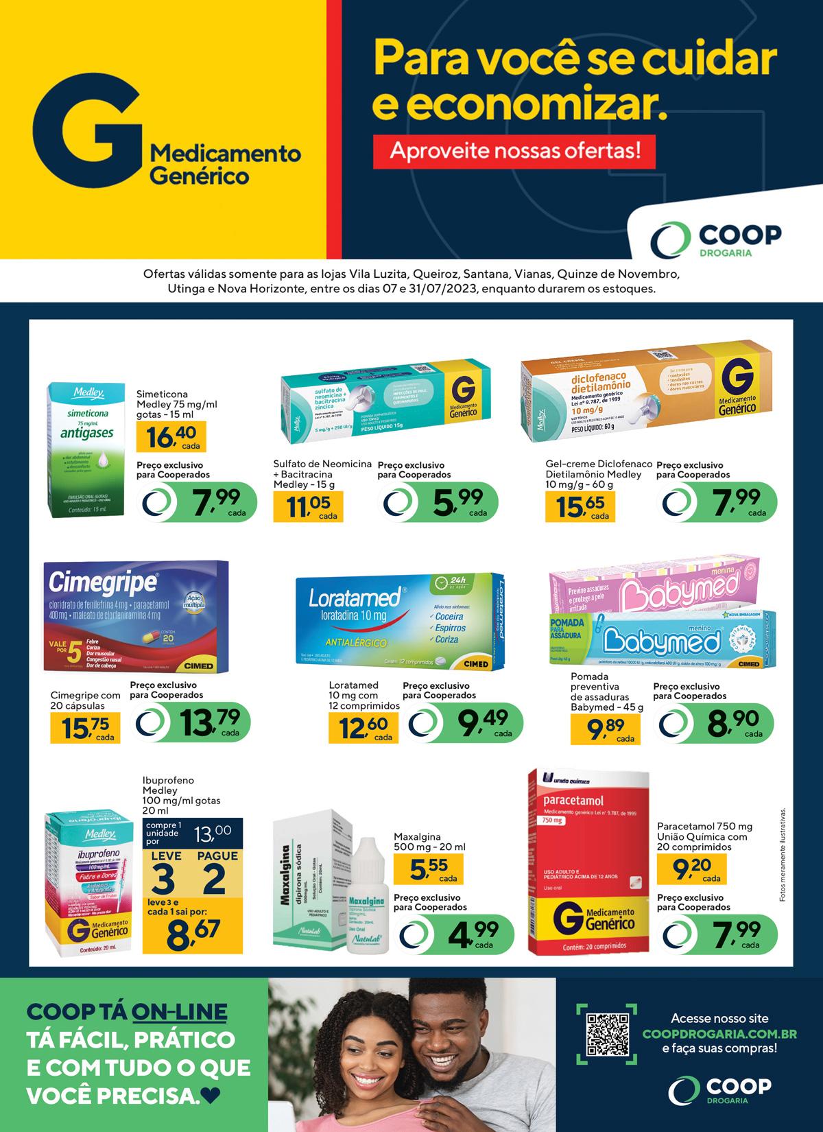 Ofertas Drogarias Coop - Genéricos e Similares - Ofertas Validas do dia 07 a 31.07