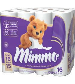 Papel higiênico folha dupla Mimmo neutro Leve 16, Pague 15 rolos de 30 m