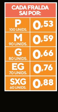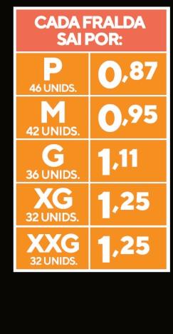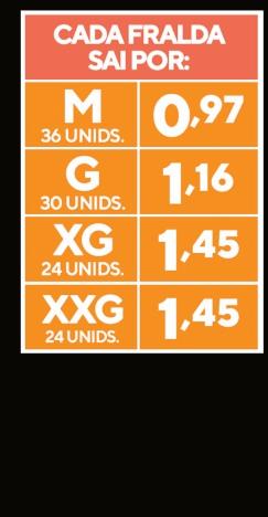 Condicionador Johnson s Baby 200ml 18, 59 cada 2 20, 99 Shampoo Johnson s Baby 400ml tipos 10, 50 cada POR compre 1 un dade por: LEVE Fralda Toquinho de Gente Plus tamanhos 52, 90 cada Fralda descartável para Adultos Suavidade - tamanhos 54, 90 cada por Absorvente Intimus Gel com 32 unidades 14, 89 cada 2 28, 99 Sabonete líquido Johnson s Baby 400ml tipos 14, 50 cada POR compre 1 un dade por LEVE Fralda Babysec Ultra Sec tamanhos 32, 89 cada 37, 99 de por cada Fralda Huggies Supreme Care roupinha tamanhos 34, 89 cada 52, 90 de por cada Fralda Pampers Pants Tamanhos 49, 90 cada 65, 90 de por cada Fralda Huggies Tripla Proteção - tamanhos 39, 89 cada 42, 90 de por cada Fralda Huggies Little Swimmers tamanhos 28, 89 cada 41, 90 de por cada Creme para assaduras Huggies Supreme Care 80g 21, 89 cada 25, 59 de por cada Absorvente Intimus com abas com 28 unidades 19, 89 cada Absorvente Sempre Livre Adapt com abas com 32 unidades 14, 89 cada 1769 de por cada Fralda geriátrica noturna Tena Slip 69, 90 cada Fralda geriátrica Tena Dermacare tamanhos 67, 90 cada SUPER OFERTA SUPEROFERTA
