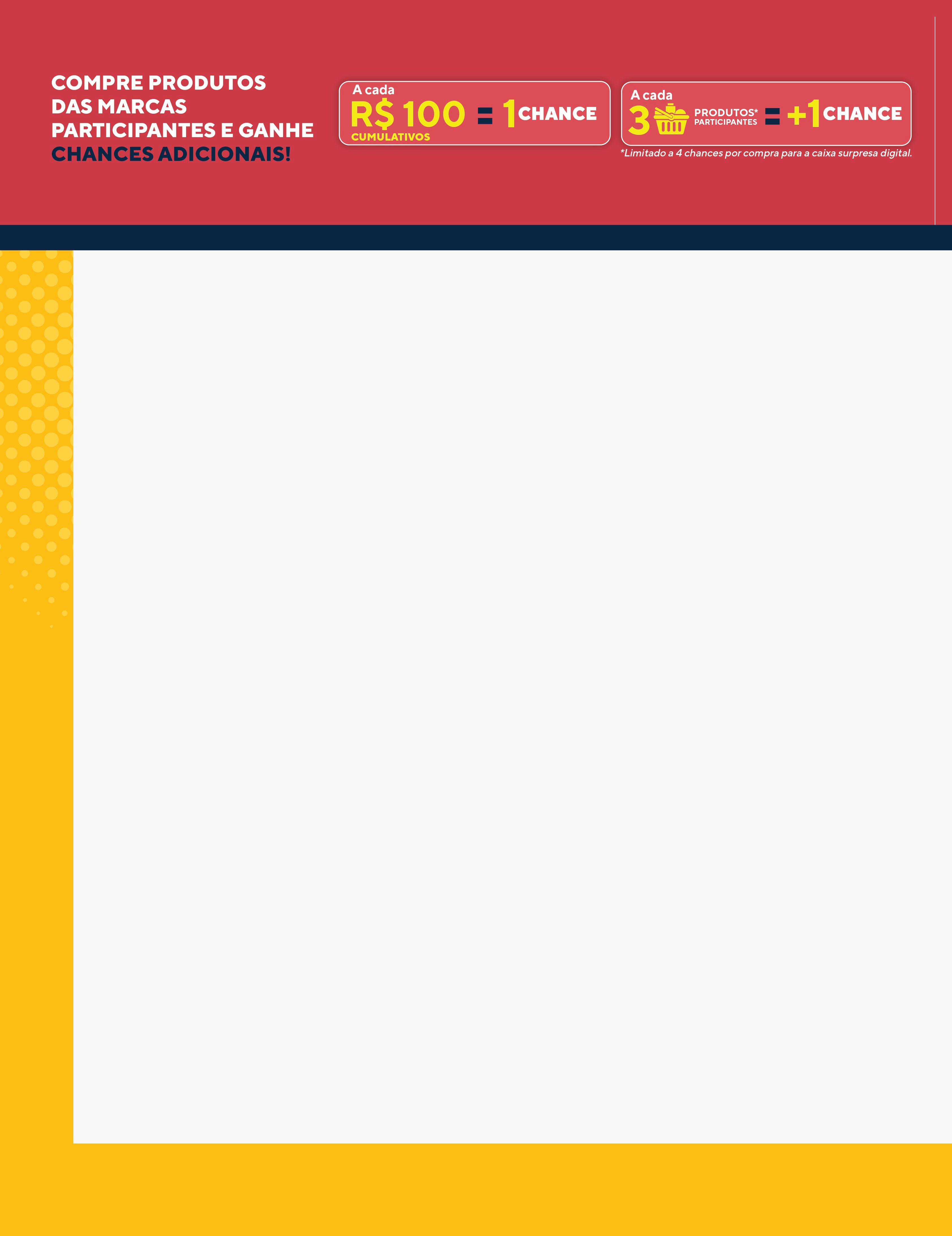Arroz tipo 1 Camil 5kg 19, 99 cada Café Pilão 500g Embalagem almofada ou a vácuo 17, 99 cada 1999 de por cada Macarrão com ovos Dona Benta 500g 2, 99 cada 389 de por cada Macarrão instantâneo Nissin 85g sabores 2, 15 cada Farinha de trigo Renata 1kg 6, 29 cada Massa para lasanha com ovos Renata 500g 6, 99 cada 7, 79 de por cada Arroz integral Camil 1kg 4, 99 cada 529 de por cada Arroz tipo 1 Albaruska 5kg 23, 89 cada 2559 de por cada Café solúvel 3 Corações refil 50g 3, 99 cada 6, 29 de por cada Café solúvel 3 Corações vidro 100g 12, 99 cada 17, 59 de por cada Café Fort almofada 500g 13, 99 cada 16, 59 de por cada Azeite extravirgem Gallo vidro 250ml 15, 99 cada 17, 39 de por cada Óleo de canola Soya 900ml 16, 29 cada Óleo de girassol Soya 900ml 15, 49 cada SUPER OFERTA Café solúvel Nescafé original sachê 50g 4, 42 l4 eve e cada 1 sai por: compre 1 unidade por 5, 89 4 3 LPAGUE EVE 13, 99 l3 eve e cada 1 sai por: compre 1 unidade por 20, 99 3 2 LPAGUE EVE Cápsulas 3 Corações classic com 10 unidades Café Jardim 500g 11, 99 cada 13, 49 de por cada Cápsulas de café Pilão tipos com 10 unidades 14, 99 l3 eve e cada 1 sai por: compre 1 unidade por 22, 49 3 2 LPAGUE EVE