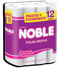 Papel higiênico folha dupla Noble com 12 rolos de 20 m cada pacote econômico