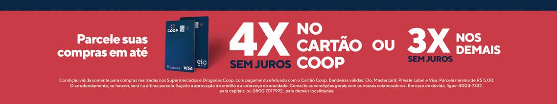 Ofertas válidas para as lojas de Sorocaba, entre os dias 13 e 15/01/2023, enquanto durarem os estoques. Espeto de queijo coalho Premiatta kg 59,90 Refrigerante Coca-Cola 1,5 litro 6,69 cada Cerveja Itaipava pilsen lata 350 ml 2,59 cada de 21,99cada Suco misto de uva e maçã Natural da Fazenda - 1,5 litro 13,99 cada por Copo para chopp Nadir Munich 300 ml 7,99 cada de 96,90cada Faqueiro Tramontina Dynamic para churrasco com 12 peças 69,90 cada por de 19,69cada Carvão Coop 2 kg 12,99 cada por Papel-toalha folha dupla Kitchen Jumbo Leve 240 folhas, Pague 220 folhas 10,99 cada Guardanapo folha simples Mili 21x22 cm 1,79 cada de 6,69cada Papel-toalha Mili 110 folhas 5,29 cada por de 2,99cada Prato Copomais 15 cm com 10 unidades 1,99 cada por de 14,99cada Copo descartável Copomais 300 ml com 100 unidades 7,99 cada por Mike’s Hard Lemonade vários sabores lata 269 ml 5,49 cada Cerveja Patagonia vários tipos lata sleek 350 ml 5,29 cada de 25,99cada Vinho chileno tinto meio seco Maipo cabernet sauvignon 750 ml 21,99 cada por Beats Caipirinha lata 269 ml 5,49 cada de 45,99 Contrafilé bovino kg 38,89 por Barriga suína kg 19,89 Coração ou miolo de alcatra - kg 42,90 Costela bovina kg 24,89 de 42,90 Fraldinha bovina kg 32,89 por Coração de frango kg 28,99 Asa de frango kg 15,99 Coxinha da asa de frango - kg 16,99 de 24,59 Meio da asa de frango - kg 20,99 por de 22,99 Linguiça toscana Sadia - kg 16,99 por SÃO PROIBIDAS A VENDA ENTREGA DE BEBIDAS ALCOÓLICAS MENORES DE 18 (DEZOITO) ANOS (art. 81, do Estatuto da Criança do Adolescente). Cerveja Amstel lager lata 350 ml 3,19 cada Cerveja Brahma duplo malte lata 269 ml 2,79 cada Vinho tinto ou branco seco ou suave Pérgola 1 litro 21,99 cada de 19,59cada Faca chef Tramontina Plenus 14,99 cada por de 8,59cada Energético Red Bull vários sabores - 250 ml 6,99 cada por leve e cada 1 sai por: 6 2,99 cada Talher avulso Tramontina Leme preto, azul ou vermelho LEVE 6 5 PAGUE 3,59cada compre 1 unidade por Os objetos de decoração não fazem parte do preço. Imagem meramente ilustrativa