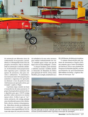 RQ-450, fabricado em Israel, utilizado pela FAB. O domínio da tecnologia deste tipo de aeronave permitirá também maior segurança contra ações de espionagem Aerovisão Jan/Fev/Mar/2014