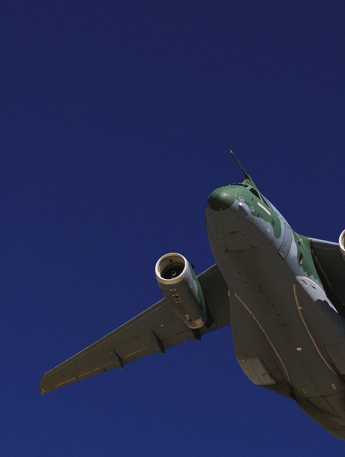 Emcolaboraçãocontínuadesde1969, aForçaAéreaBrasileira(FAB) e a Embraer têm fortalecido significativamente as capacidades aeroespaciais do Brasil. A aeronave KC-390 Millennium, operada pelo Primeiro Esquadrão do Primeiro Grupo de Transporte (1º/1º GT) – Esquadrão Gordo – e pelo Primeiro Grupo de Transporte de Tropa (1º GTT) – Esquadrão Zeus, destaca-se como um cargueiro multimissão, oferecendo capacidades avançadas para transporte de carga e pessoal, reabastecimento em voo e suporte a operações especiais (foto).