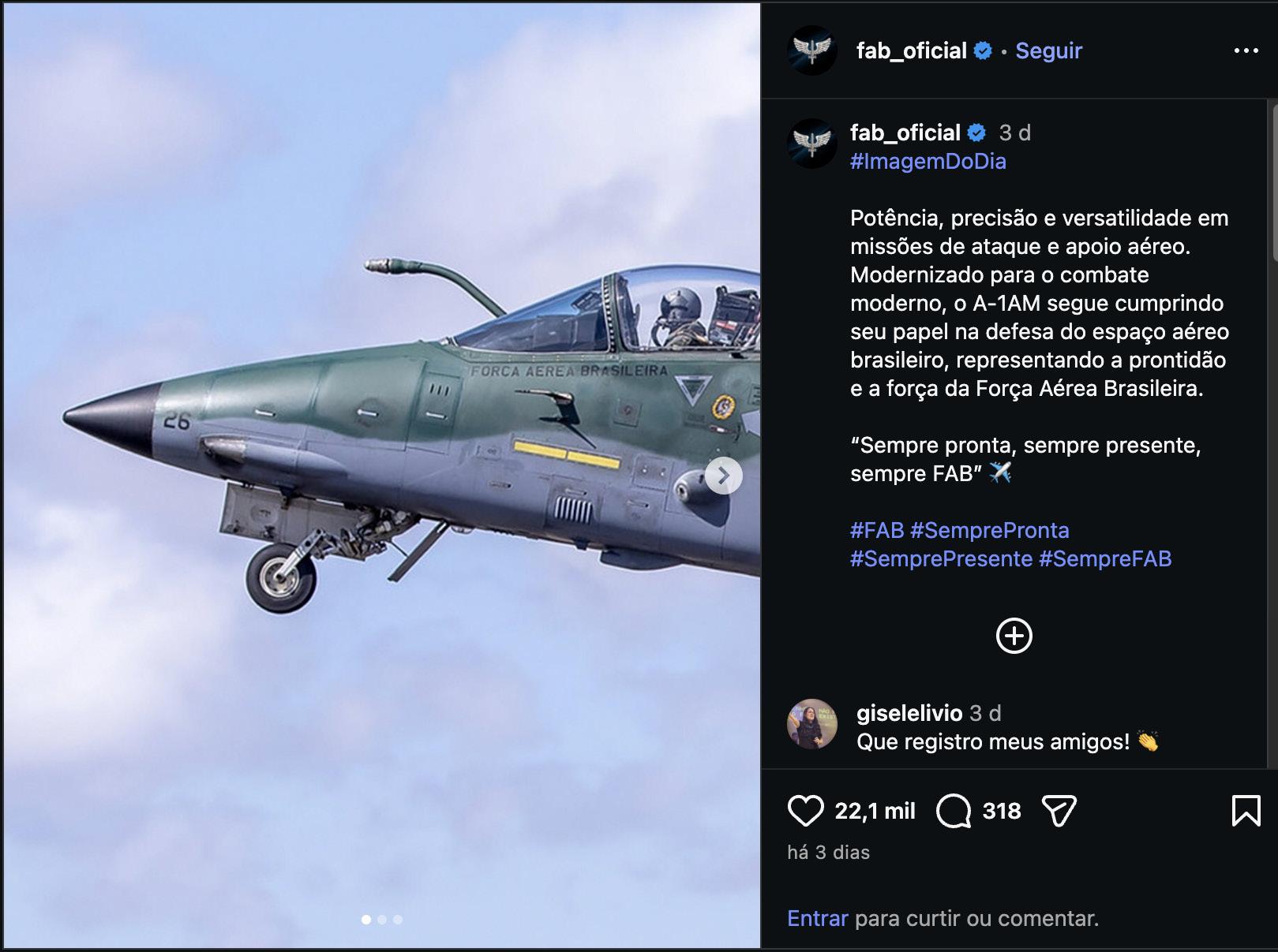 A publicação do Instagram da aeronave modernizada para o combate moderno, o A-1AM, foi o destaque nas mídias sociais.