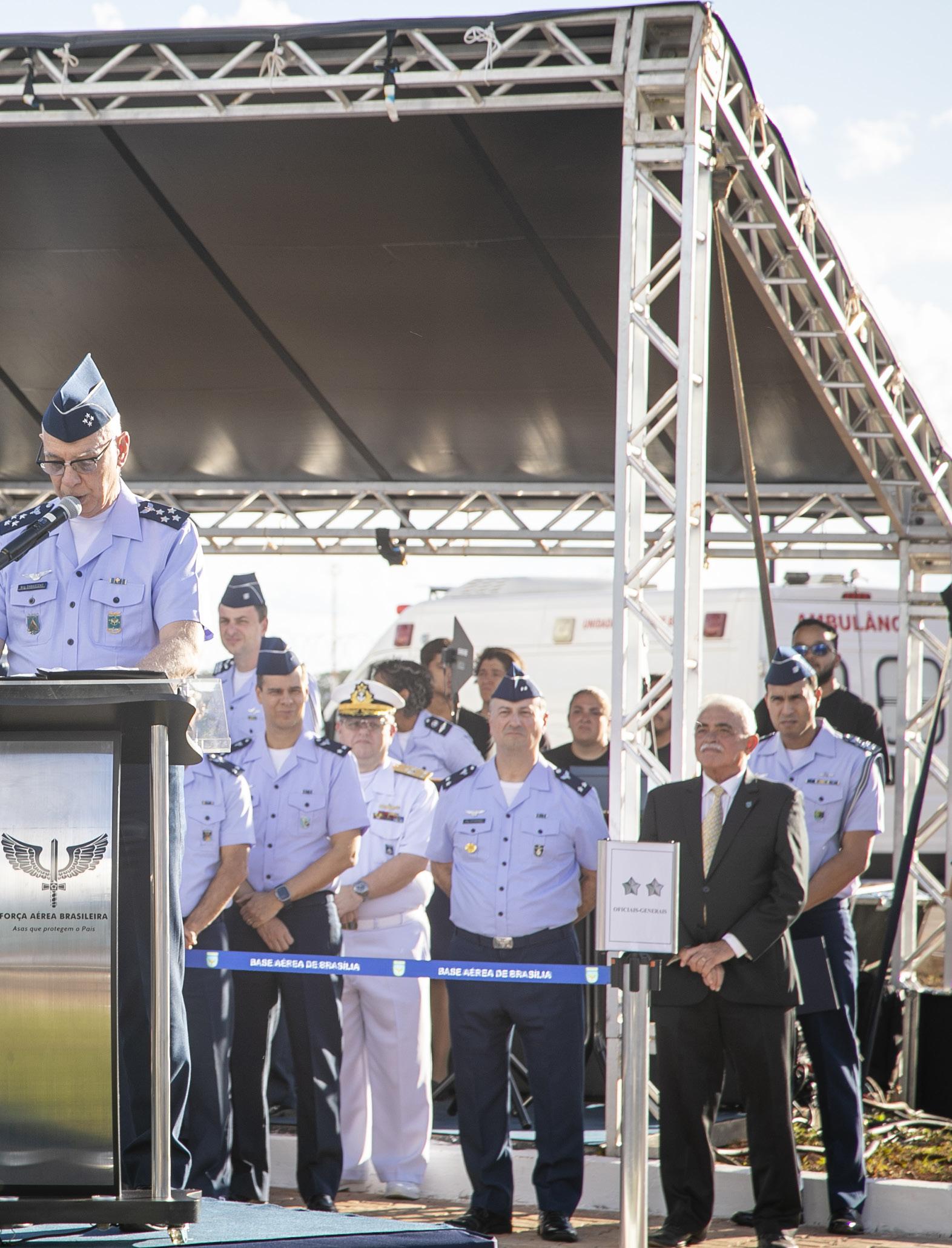 Aeronáutica, Tenente-Brigadeiro do Ar Marcelo Kanitz Damasceno, acompanhado pelos Ex-Comandantes da Aeronáutica, Oficiais-Generais do Alto-Comando da Aeronáutica, Oficiais-Generais das Forças Armadas e demais autoridades civis e militares.