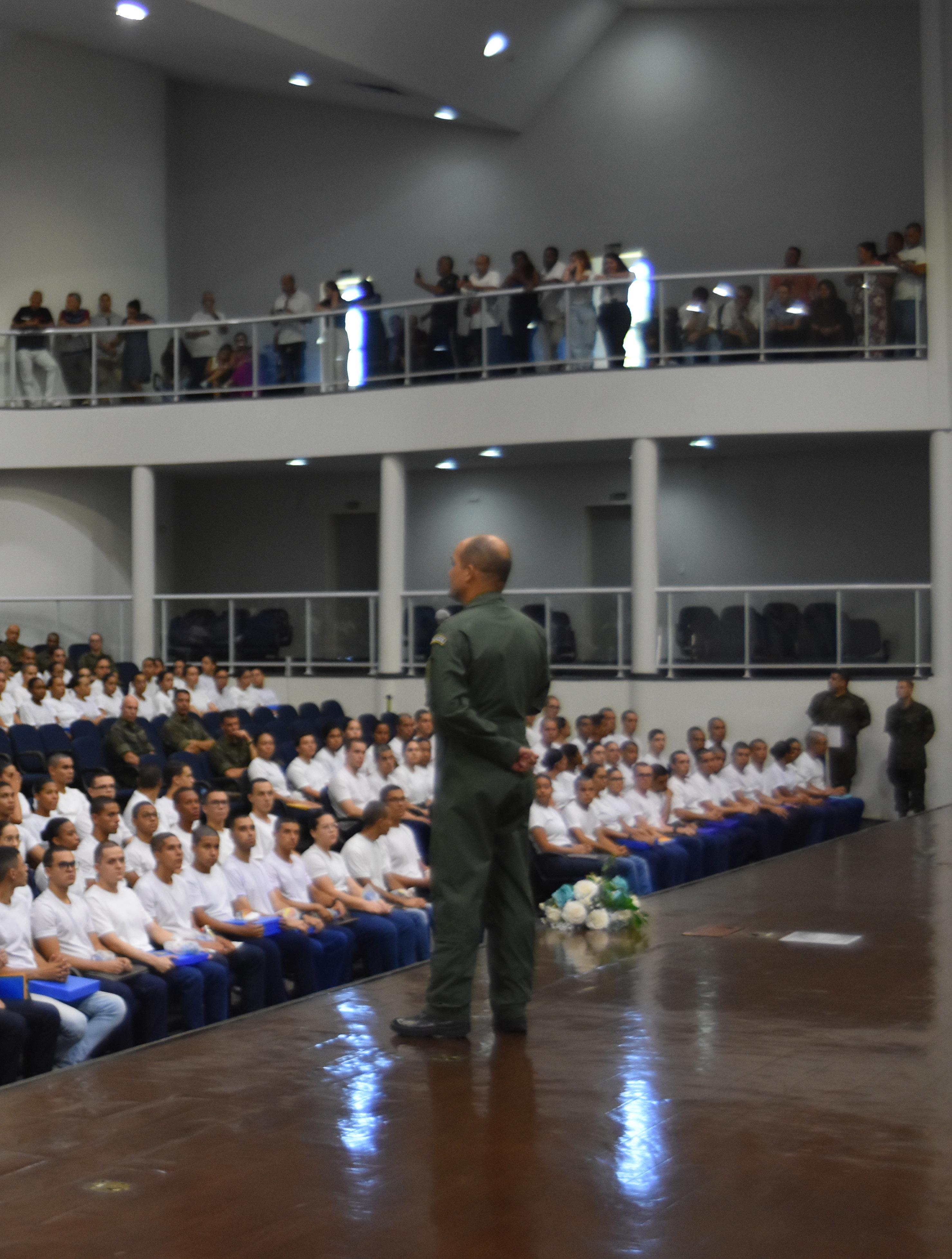 aos familiares, ressaltando que o sucesso na formação depende da tríplice hélice composta pela Escola, pela família e pelo próprio aluno. O Oficial-General também destacou a importância do Código de Honra do Aluno Especialista, cujo lema é “Disciplina, Amor à Profissão e Coragem”, como norte para os futuros sargentos da FAB.