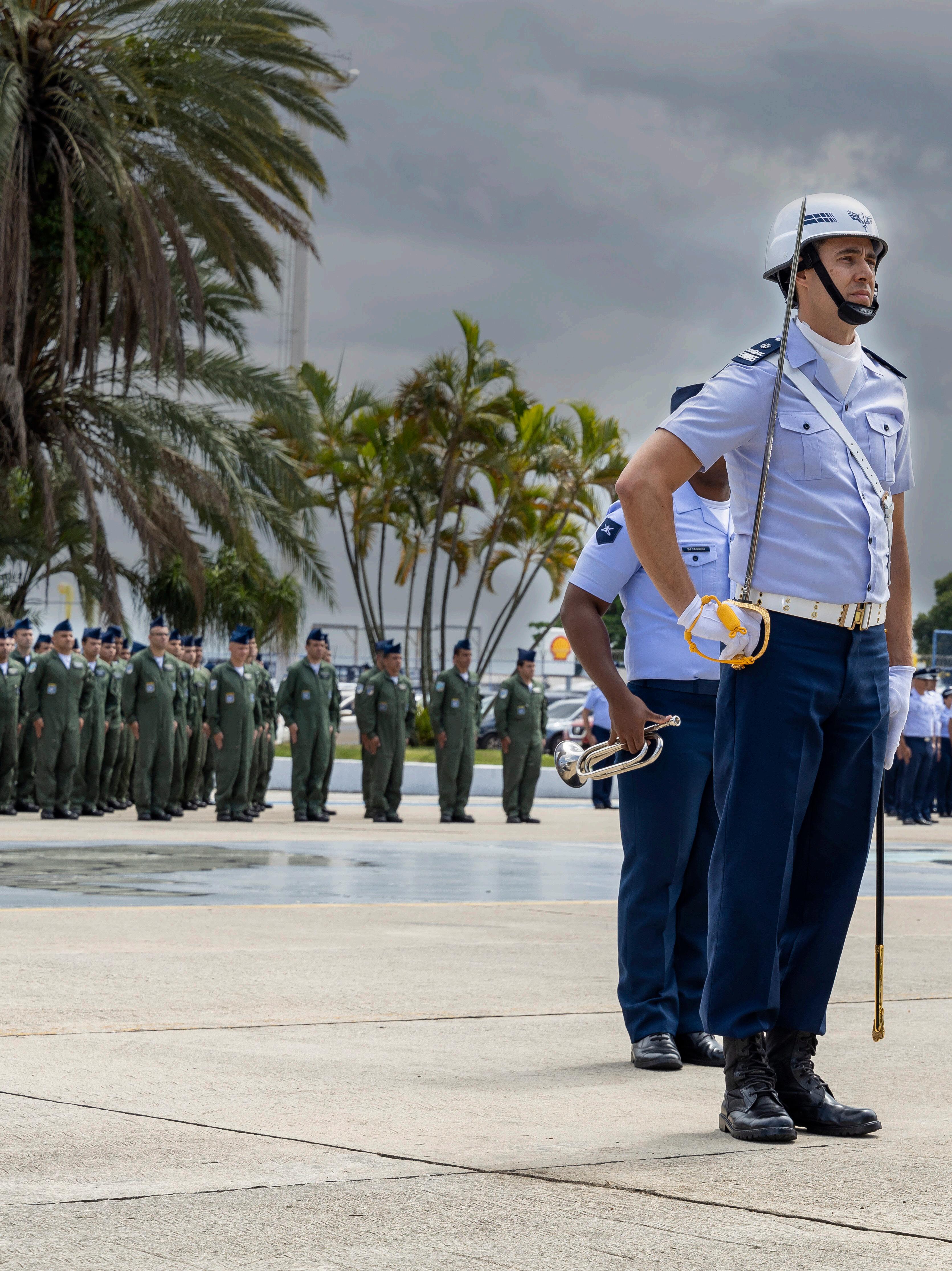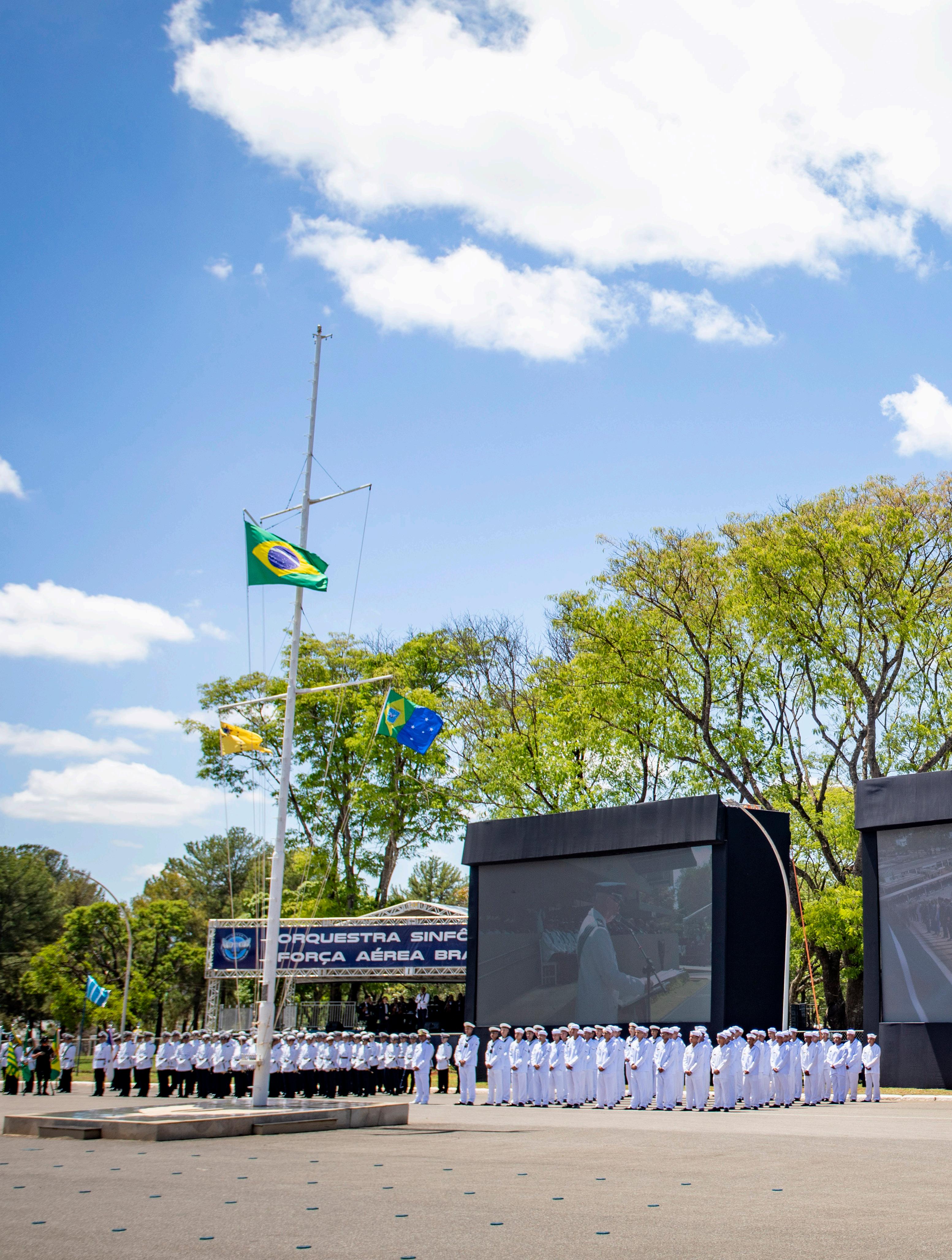 O encerramento foi marcado pelo sobrevoo do KC-390 Millennium e de dois caças F-39 Gripen, seguido por desfile militar com tropas da Marinha, do Exército e da FAB, simbolizando a força conjunta e o compromisso permanente com o Brasil.