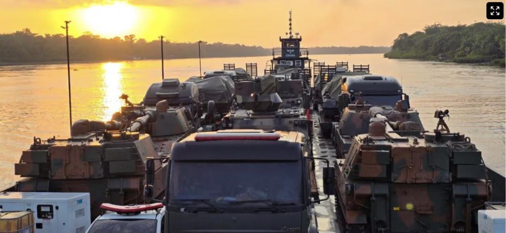 O efetivo é o de uma Força Expedicionária o primeiro escalão da Força Expedicionária Brasileira enviada à Itália, em 1944, tinha cerca de 5 mil homens. Seu tamanho e a logística para seu deslocamento faz da operação a maior já feita pela Defesa. E isso às vésperas da COP 30, a conferência do clima da ONU, em Belém, e no momento em que os EUA preparam uma nova política de defesa, onde se quer submeter os narcotra cantes não mais ao direto penal, mas às leis da guerra, o que será usado para apertar o cerco a Nicolás Maduro, na Venezuela.