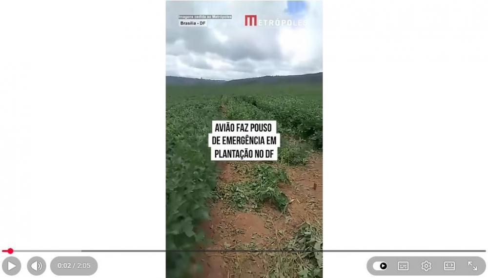 O Metrópoles apurou que, durante o pouso forçado, o trem de pouso da aeronave embolou na plantação de soja e tombou, em um movimento semelhante a um capotamento. O piloto e o passageiro foram levados de helicóptero a um hospital. O avião pertence a uma empresa especializada no desenvolvimento de tecnologias para nutrição, siologia vegetal e fertilidade do solo, com atuação no agronegócio. A aeronave que fez um pouso de emergência em uma fazenda, em Sobradinho (DF), na manhã desta sexta-feira (30/1), estava regular e é do modelo RV-9A.