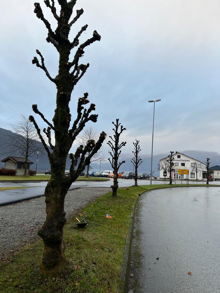Sesongen går mot slutten.Det rakes rakes løv og de fem trærne Manilla-svingen blir beskjært. De har vært forsømt, men vi håper de blir like fine som trærne i Åby-byen.