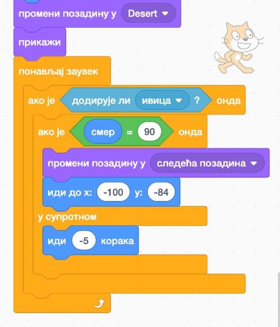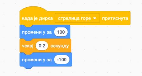Ideja: Zadajemo komandu tako da, kada se pritisne strelica gore, mačak treba da skoči.