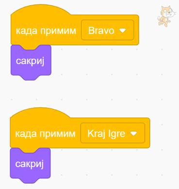 Nakon što smo kreirali ovaj blok komandi, moramo biti sigurni da će loptica na samom početku biti sakrivena dok joj ne damo komandu da se kreće.