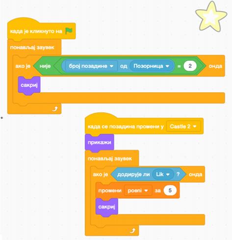 Neka je jedan od dobrih likova zvjezdica, i neka je druga pozadina Castle 2 Kada glavni lik dodirne zvjezdicu dobija 5 poena, a ona nestaje.