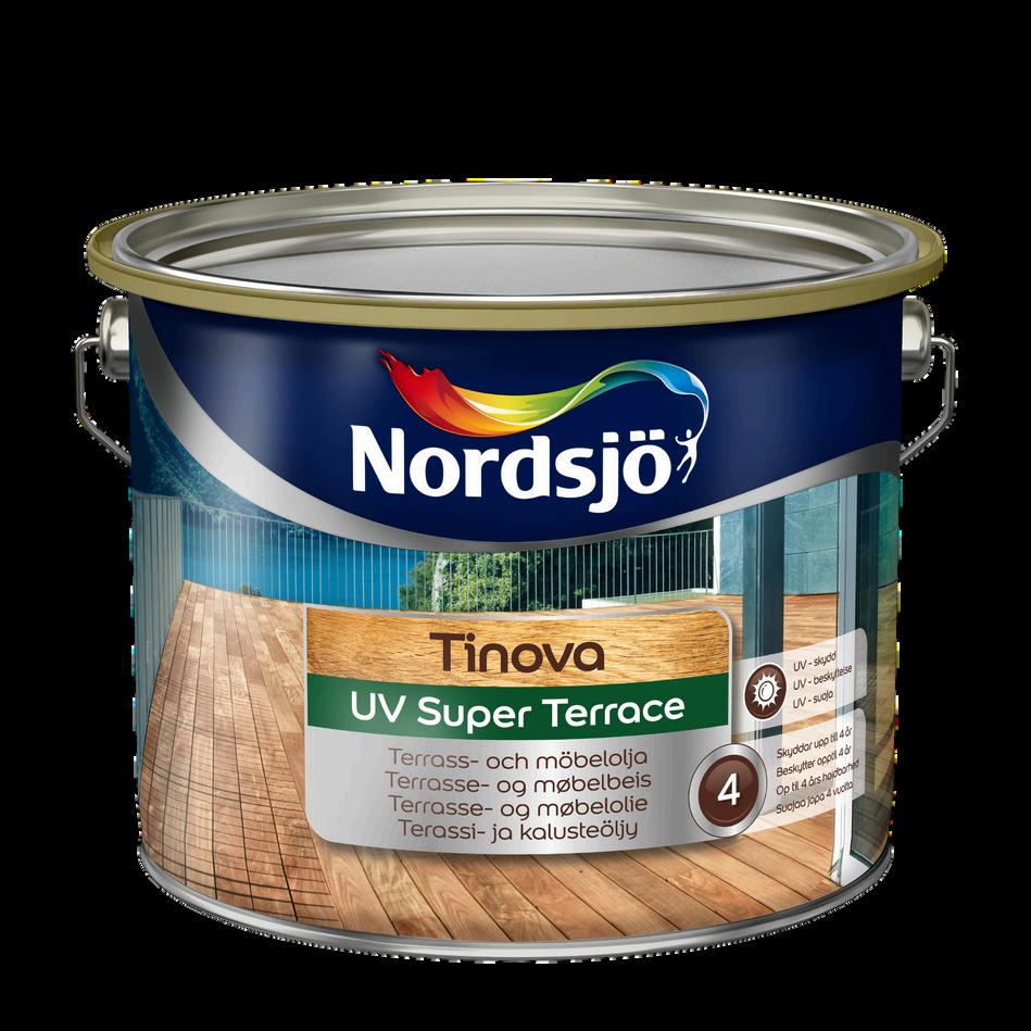 Tinova UV Super Terrace er sera góð til allar træterrassur Hon er serliga gjørd til at verja í móti UV strálum. Eisini sera væl egnað til havamøblar UV super terrace er oljubaserað. Kann tónast í nógvar litir