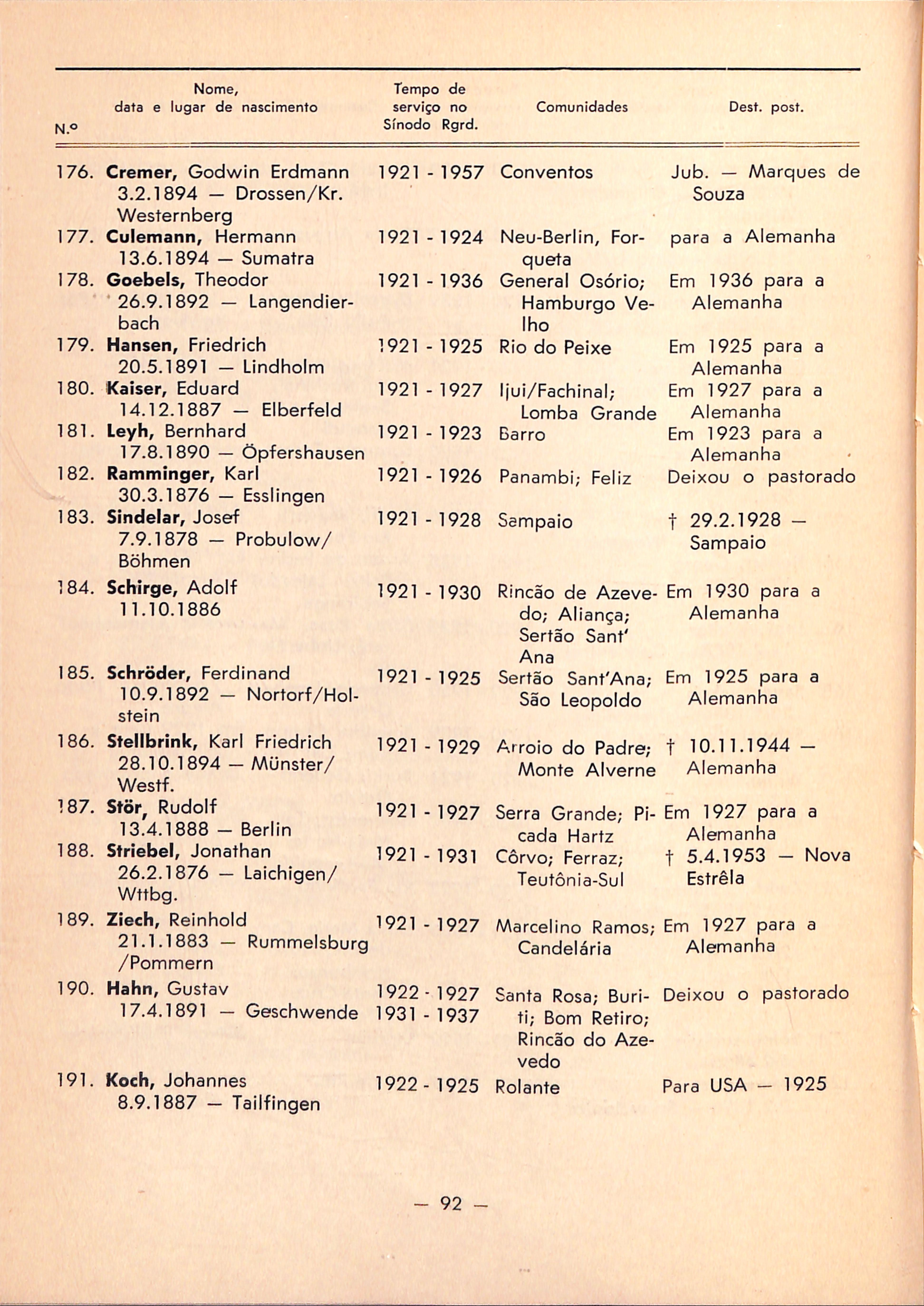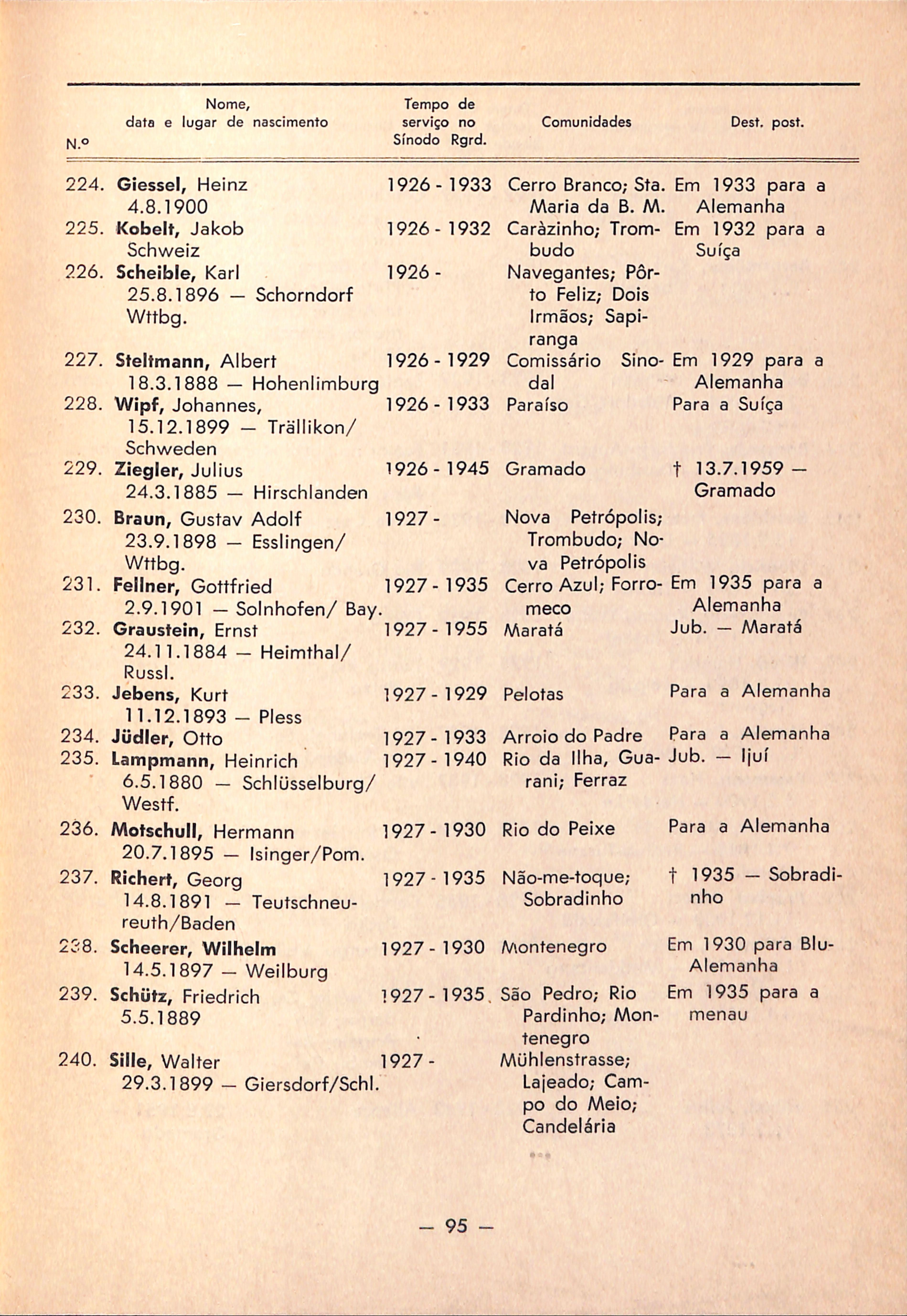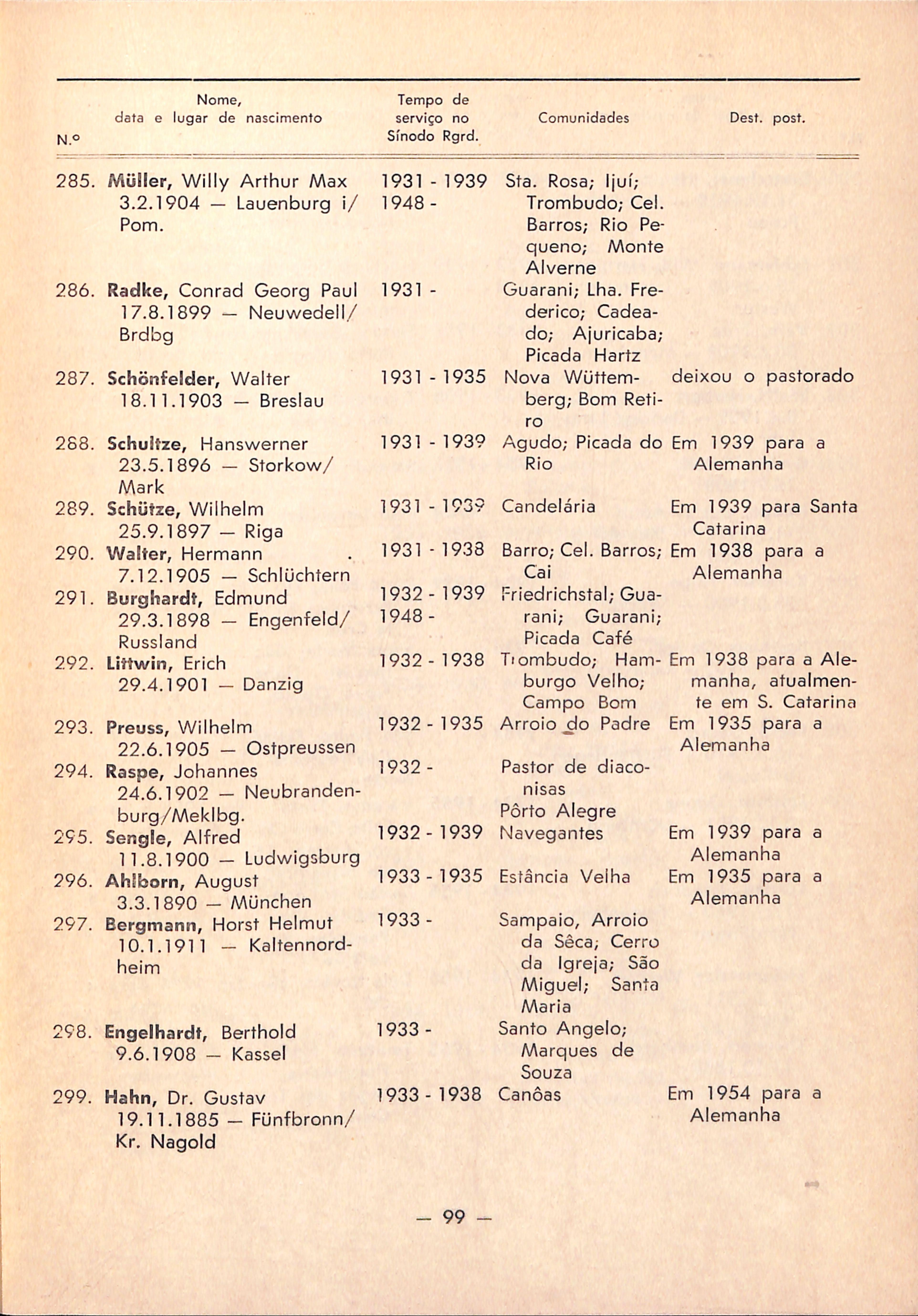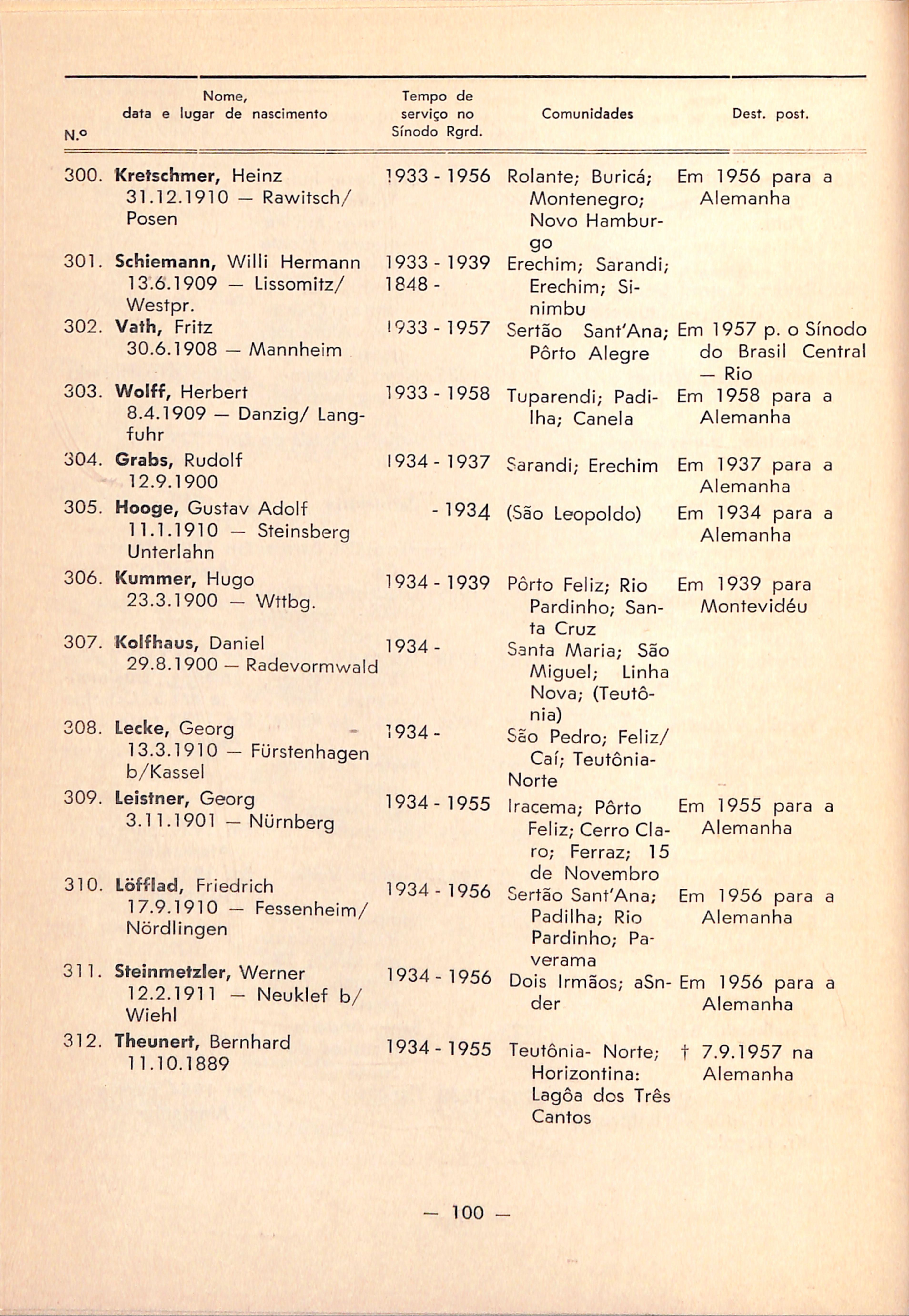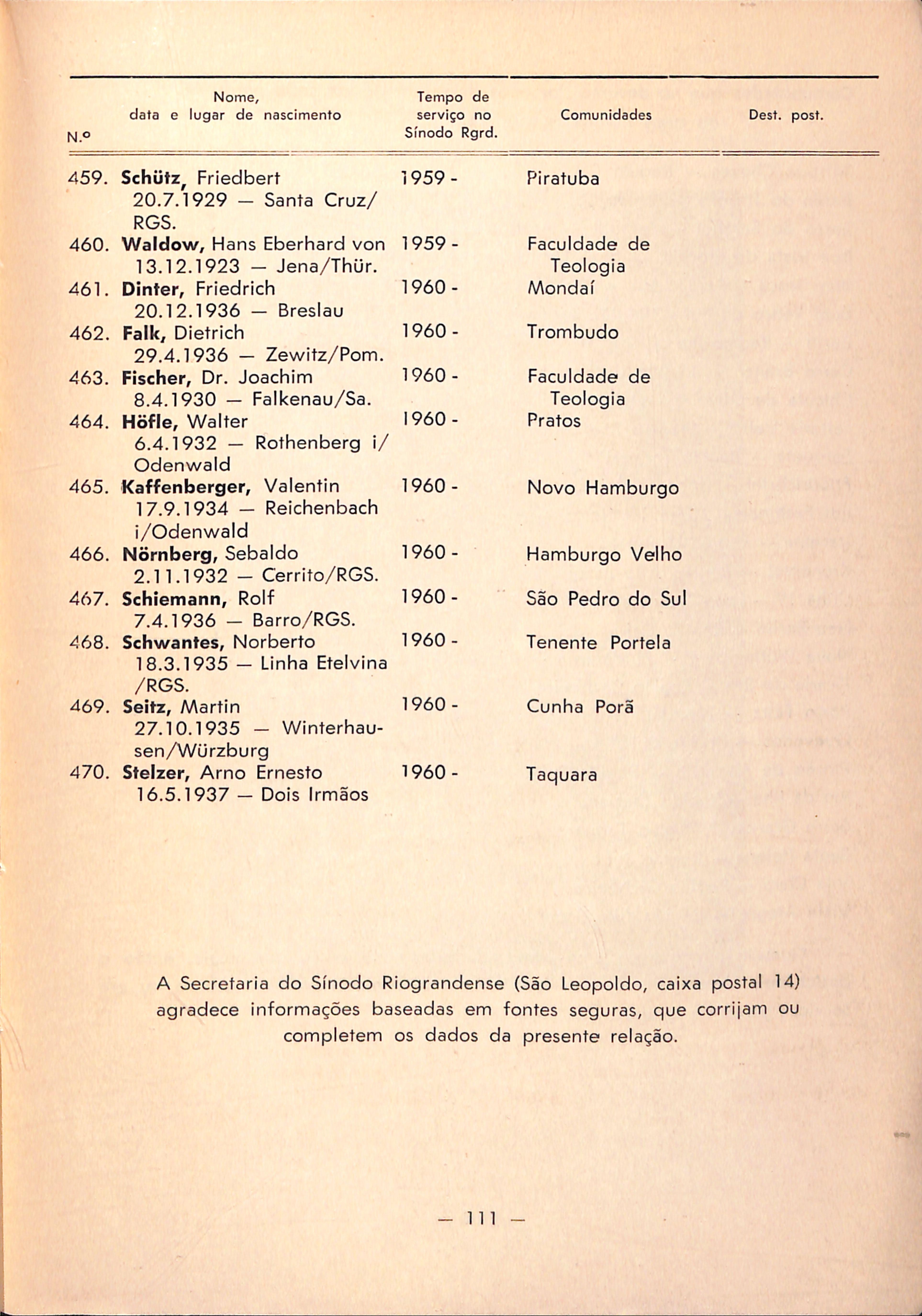 A Secretaria do Sínodo Riograndense (São Leopoldo, caixa postal 14) agradece informações baseadas em fontes seguras, que corrijam ou completem os dados da presente relação.