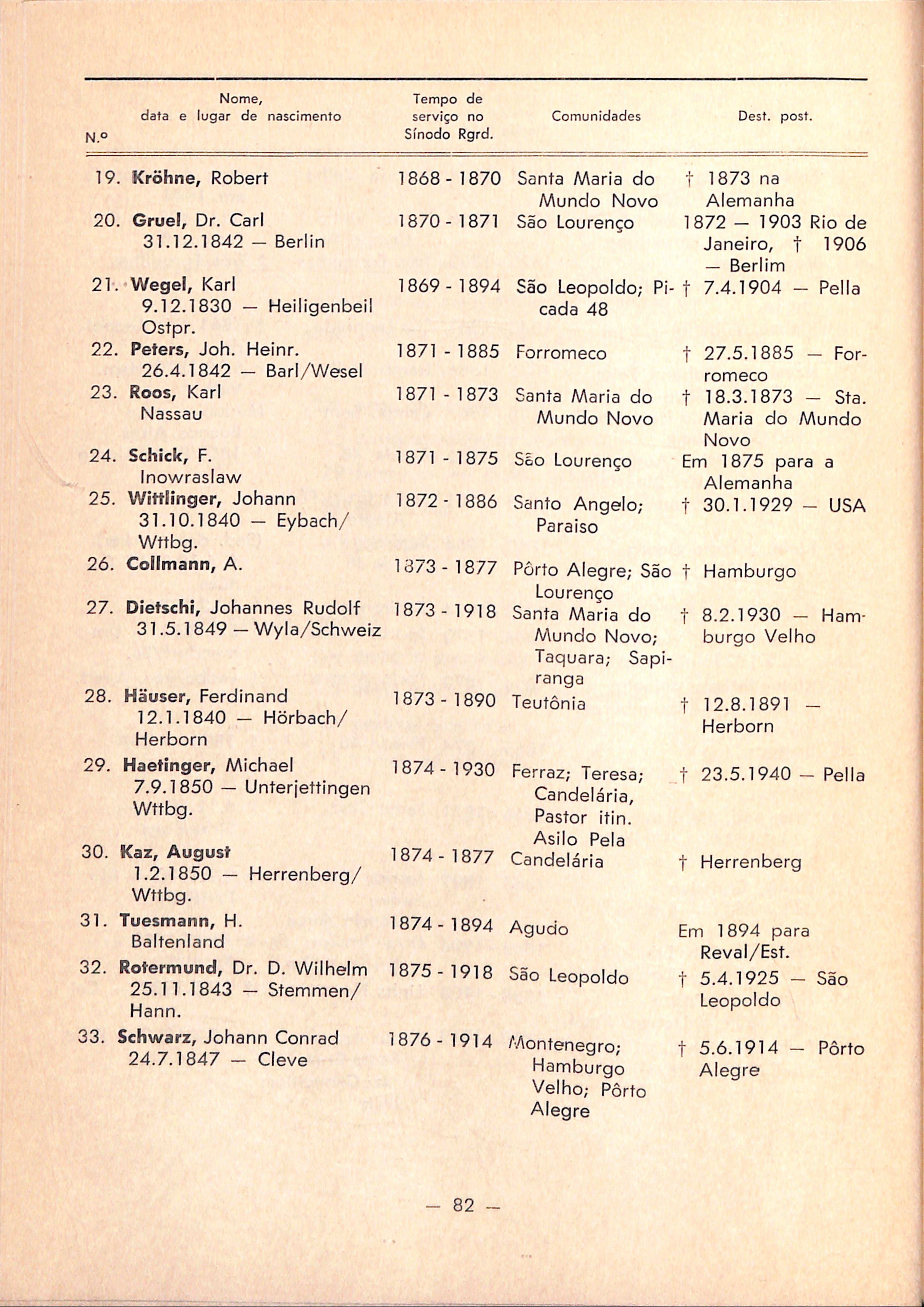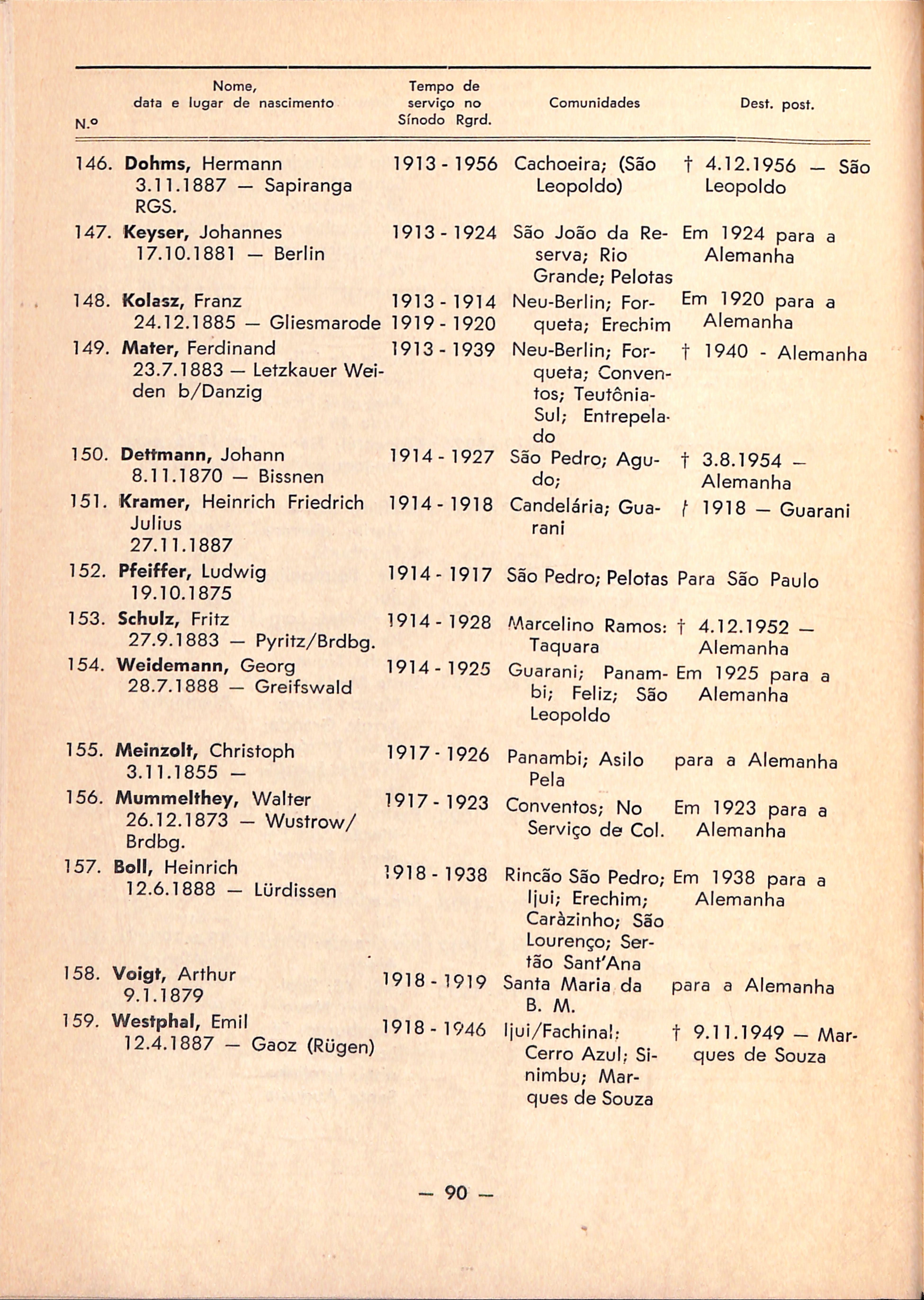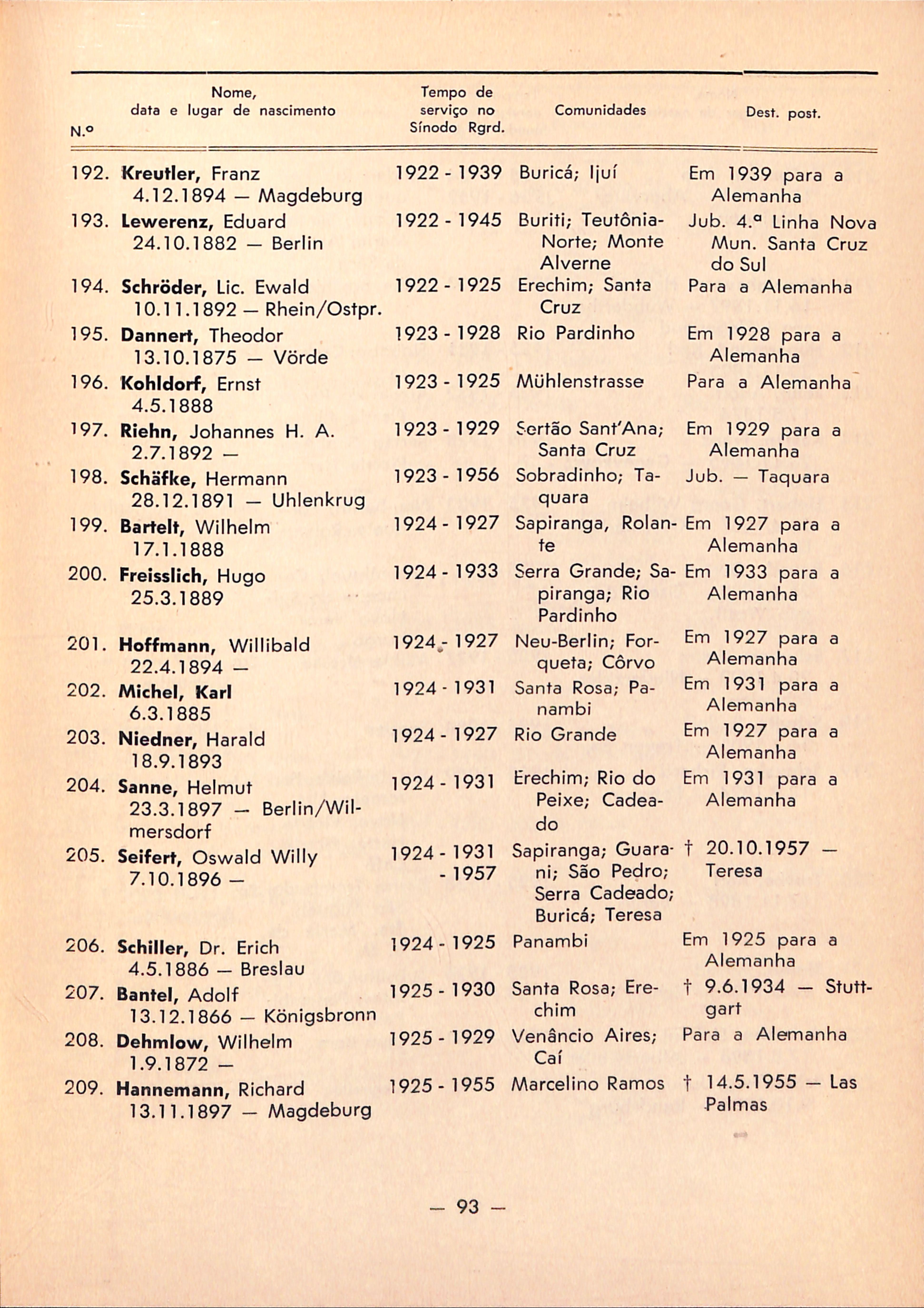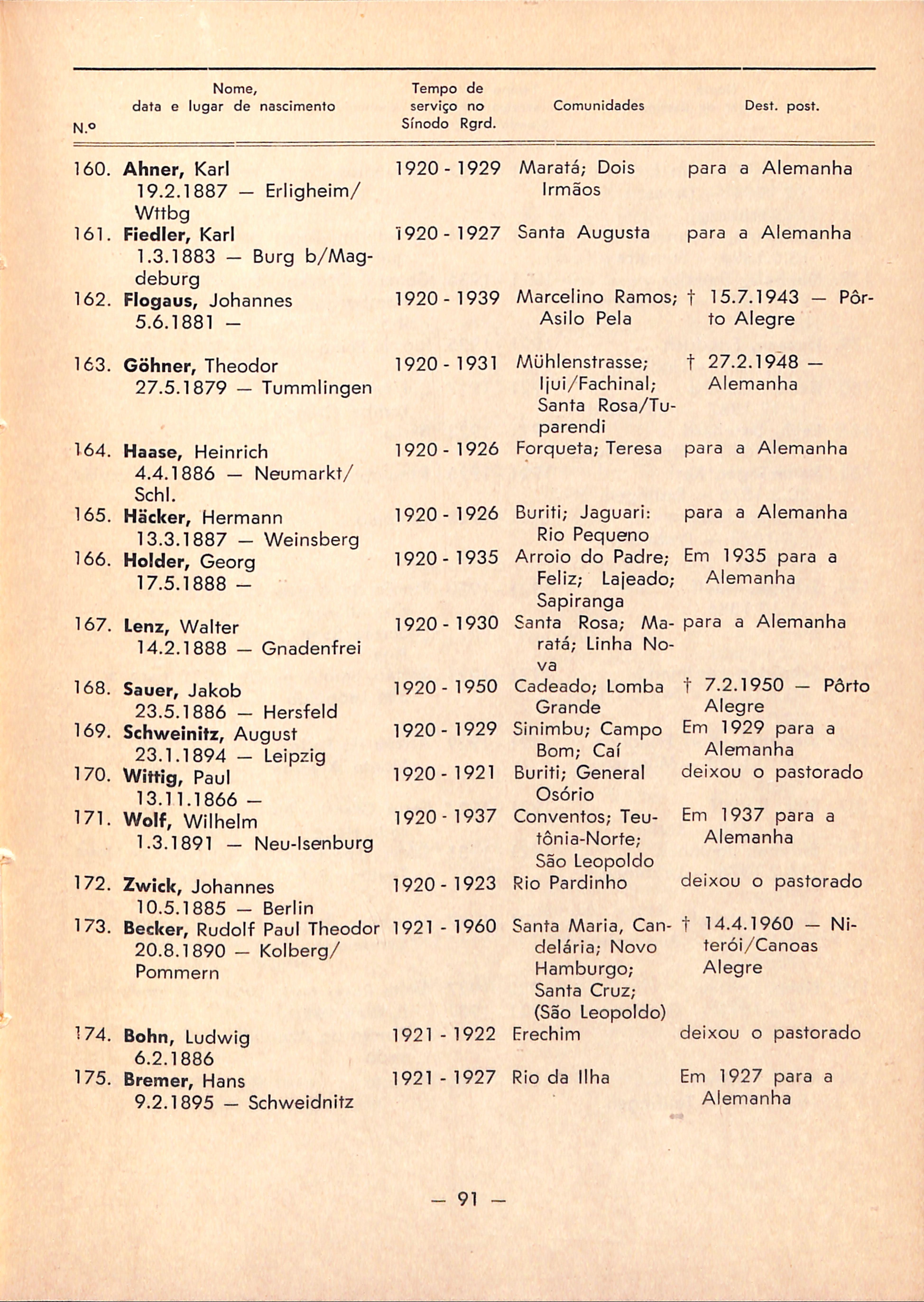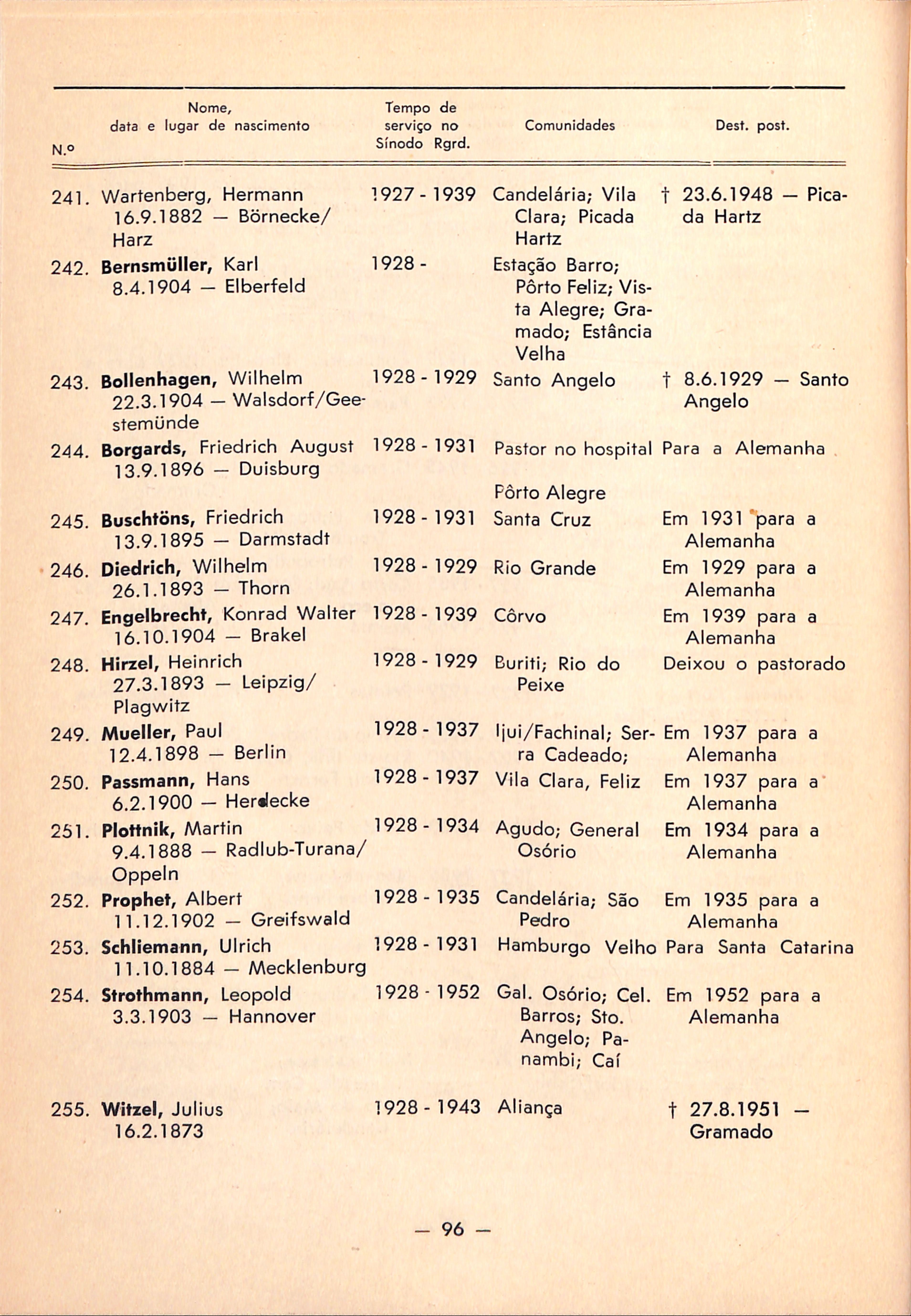A Secretaria do Sínodo Riograndense (São Leopoldo, caixa postal 14) agradece informações baseadas em fontes seguras, que corrijam ou completem os dados da presente relação.