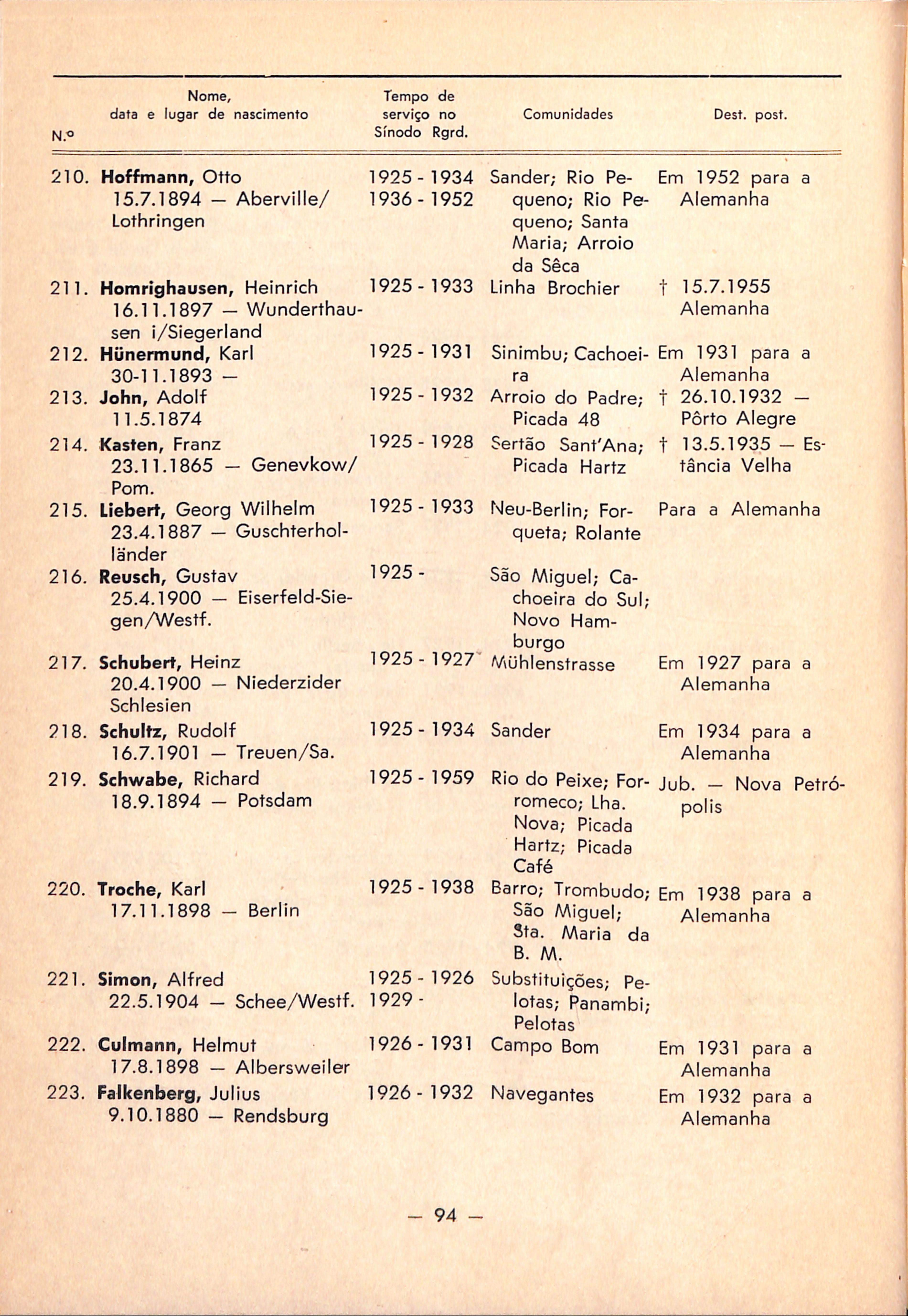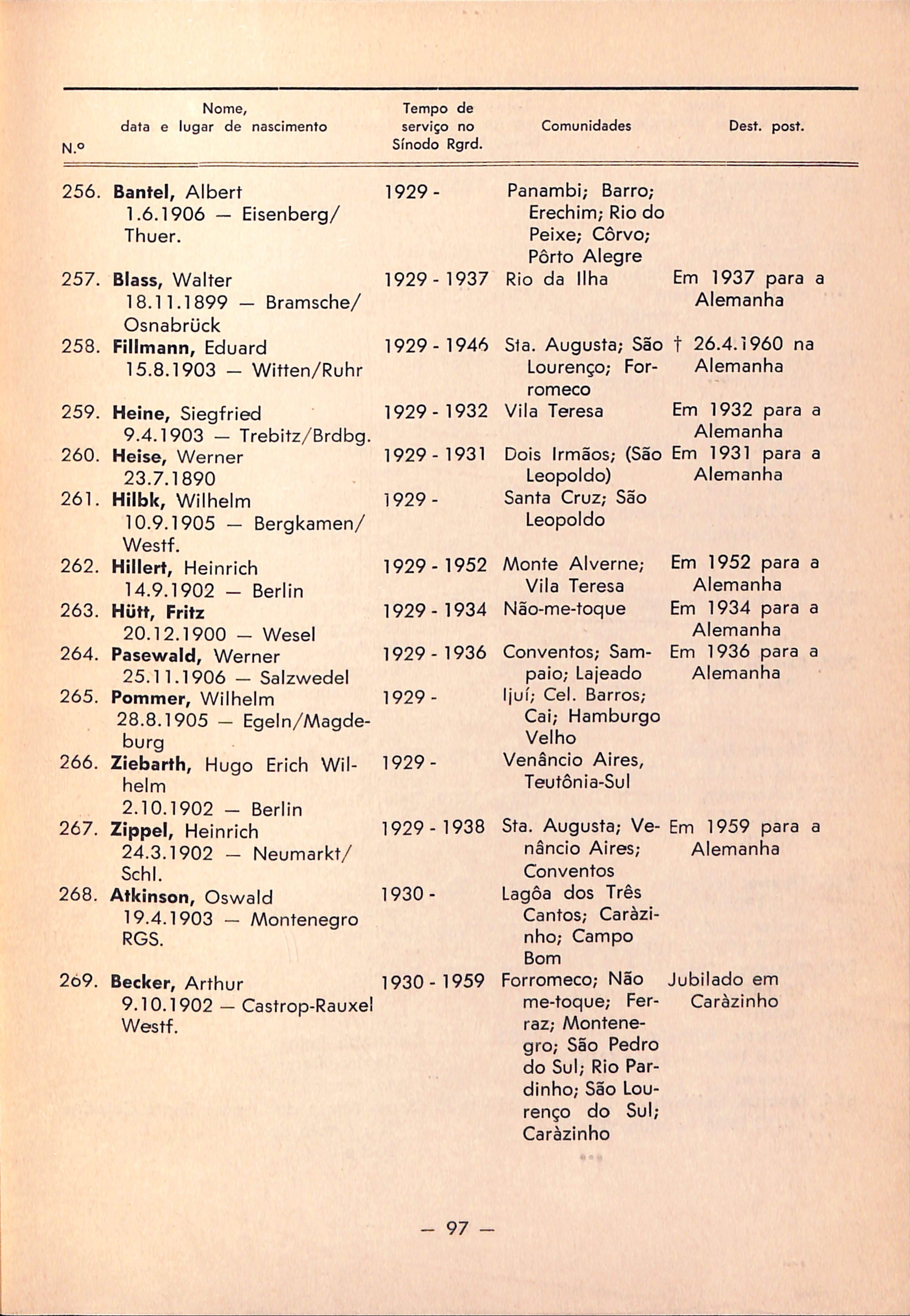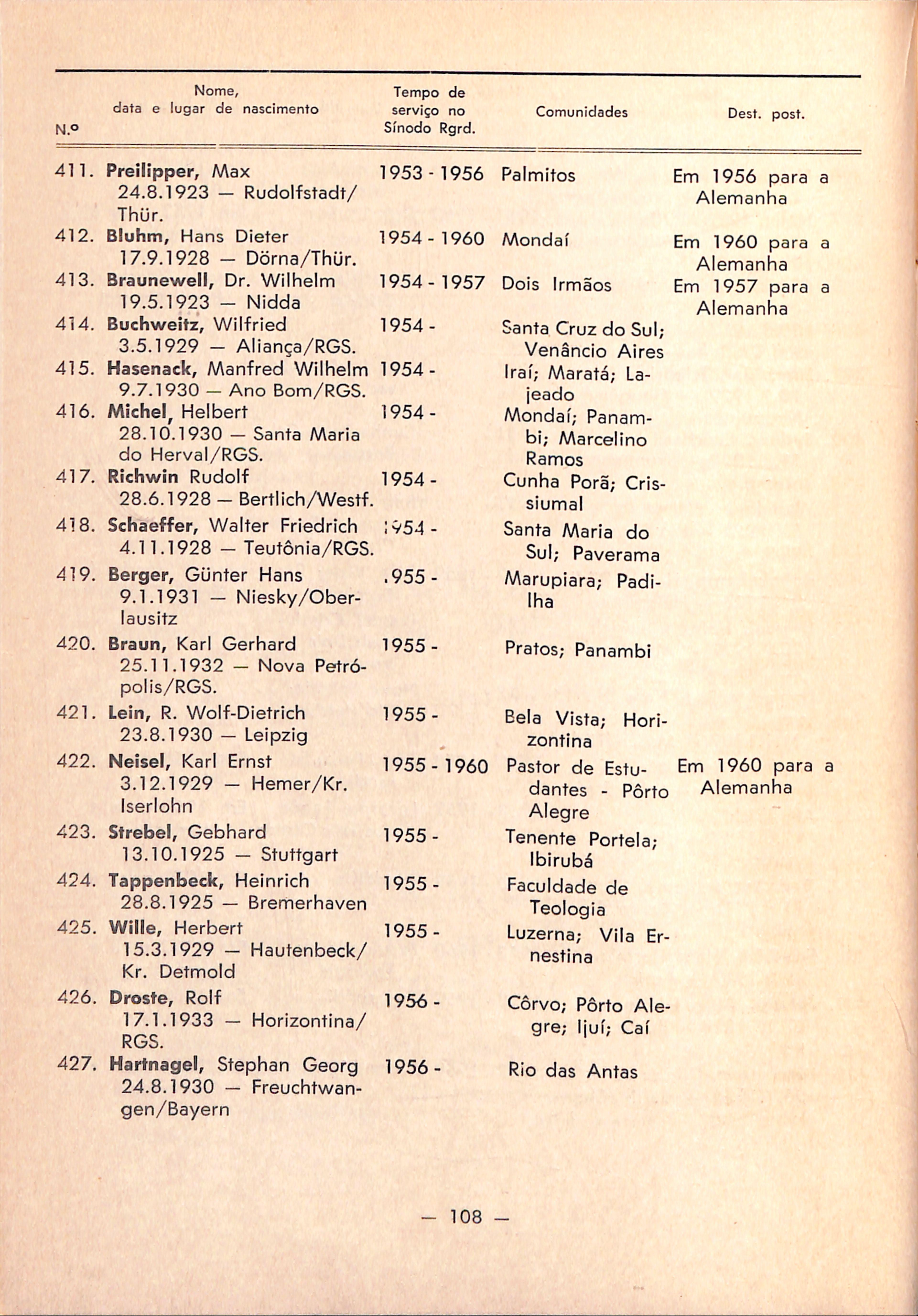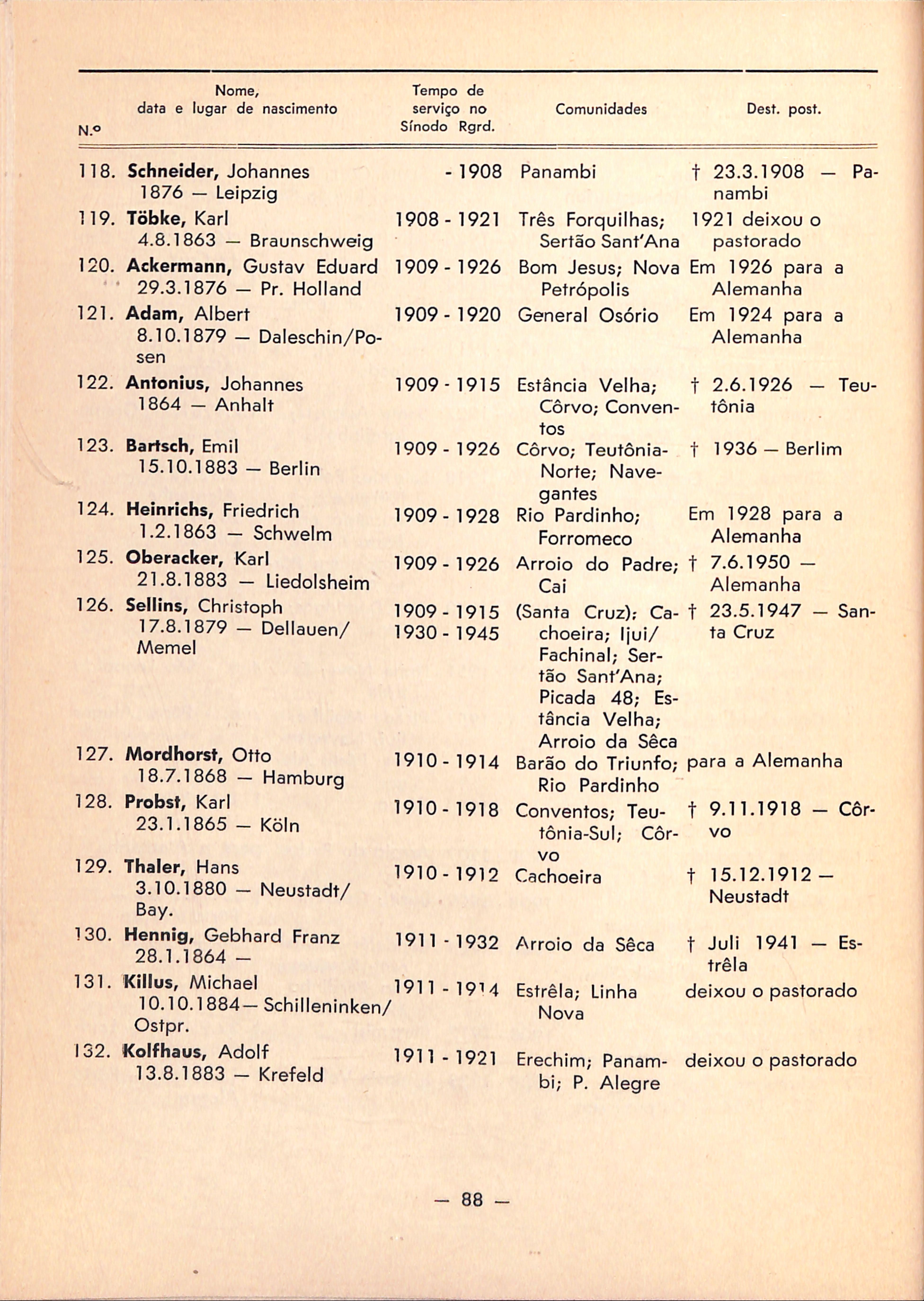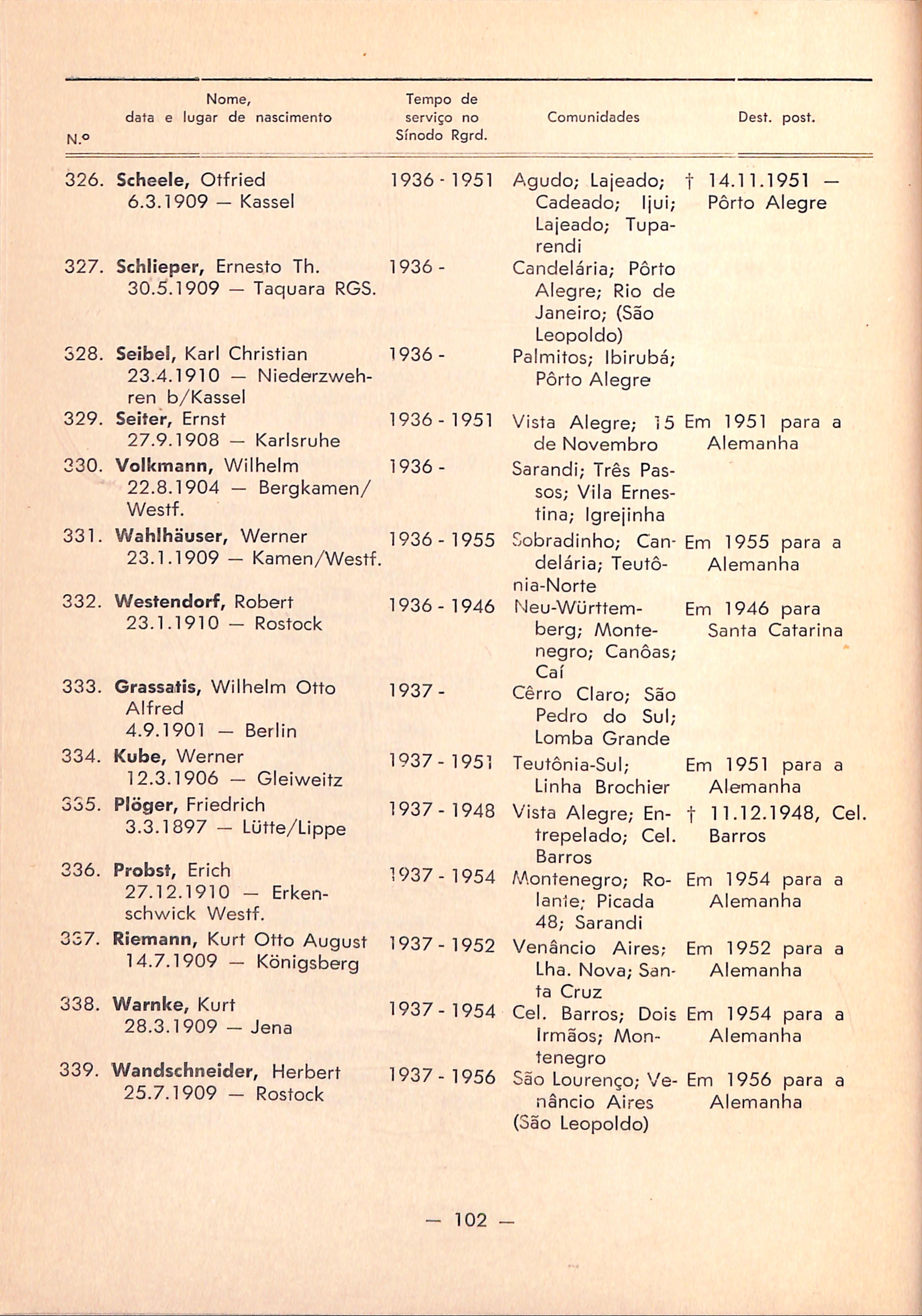 A Secretaria do Sínodo Riograndense (São Leopoldo, caixa postal 14) agradece informações baseadas em fontes seguras, que corrijam ou completem os dados da presente relação.