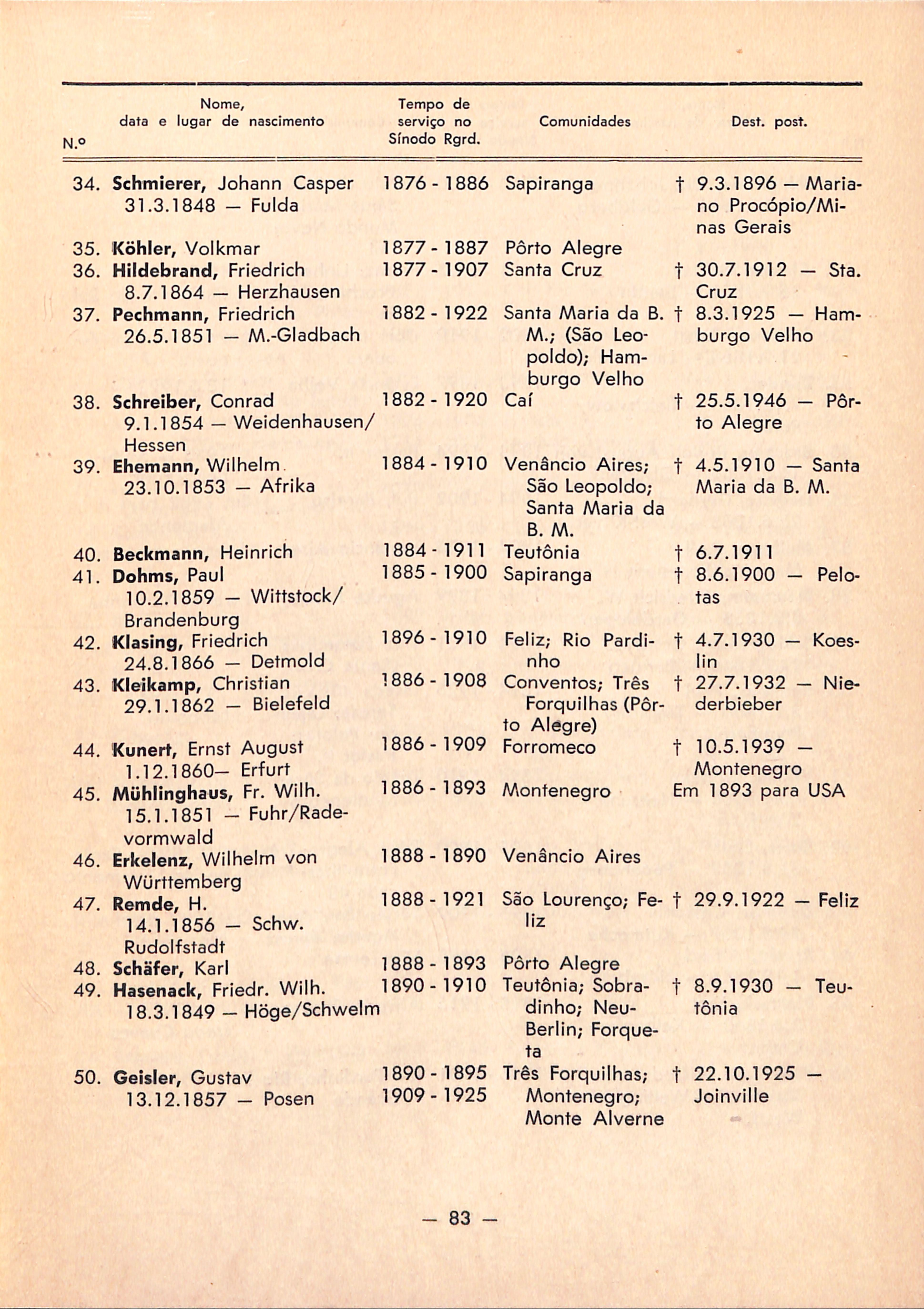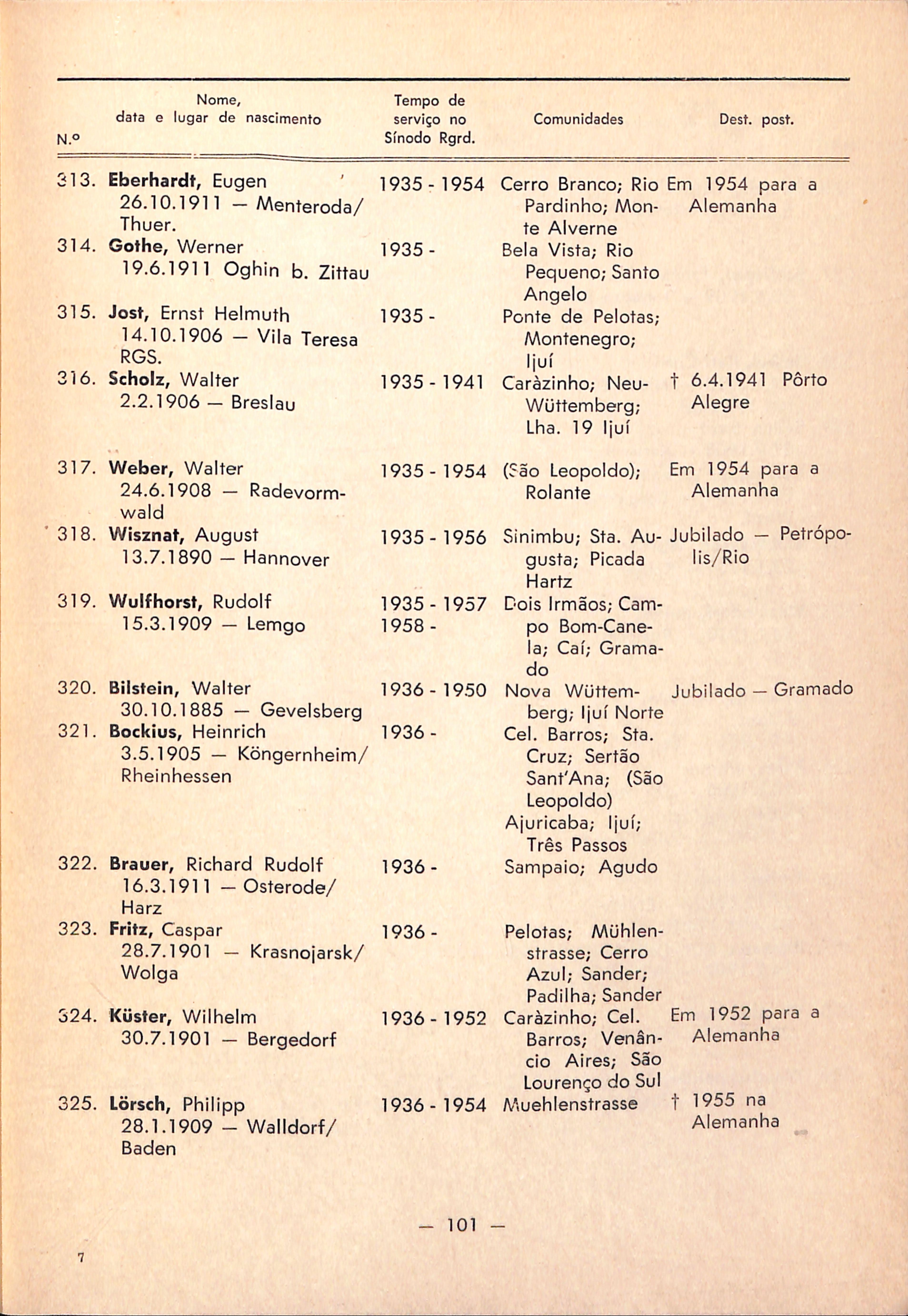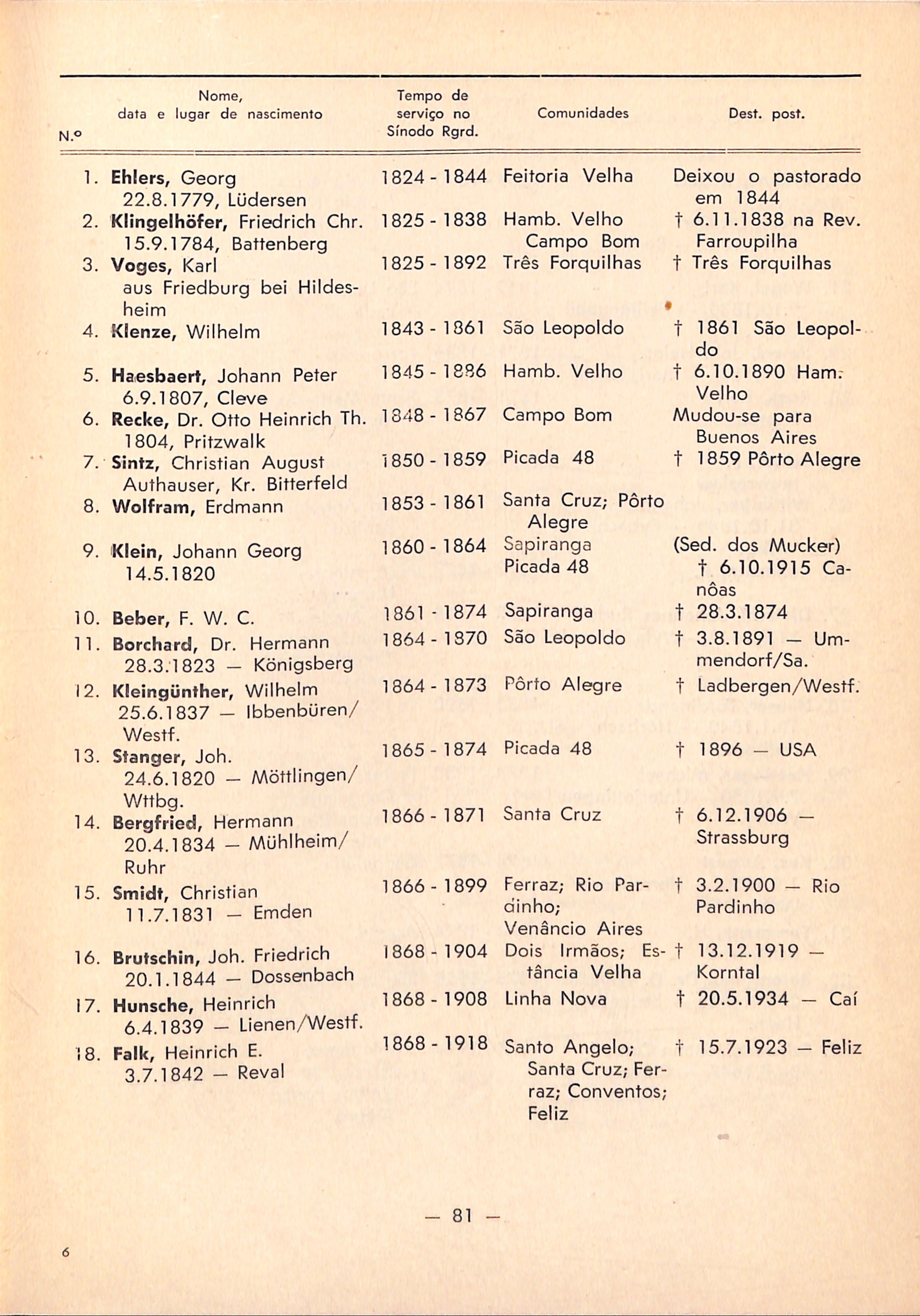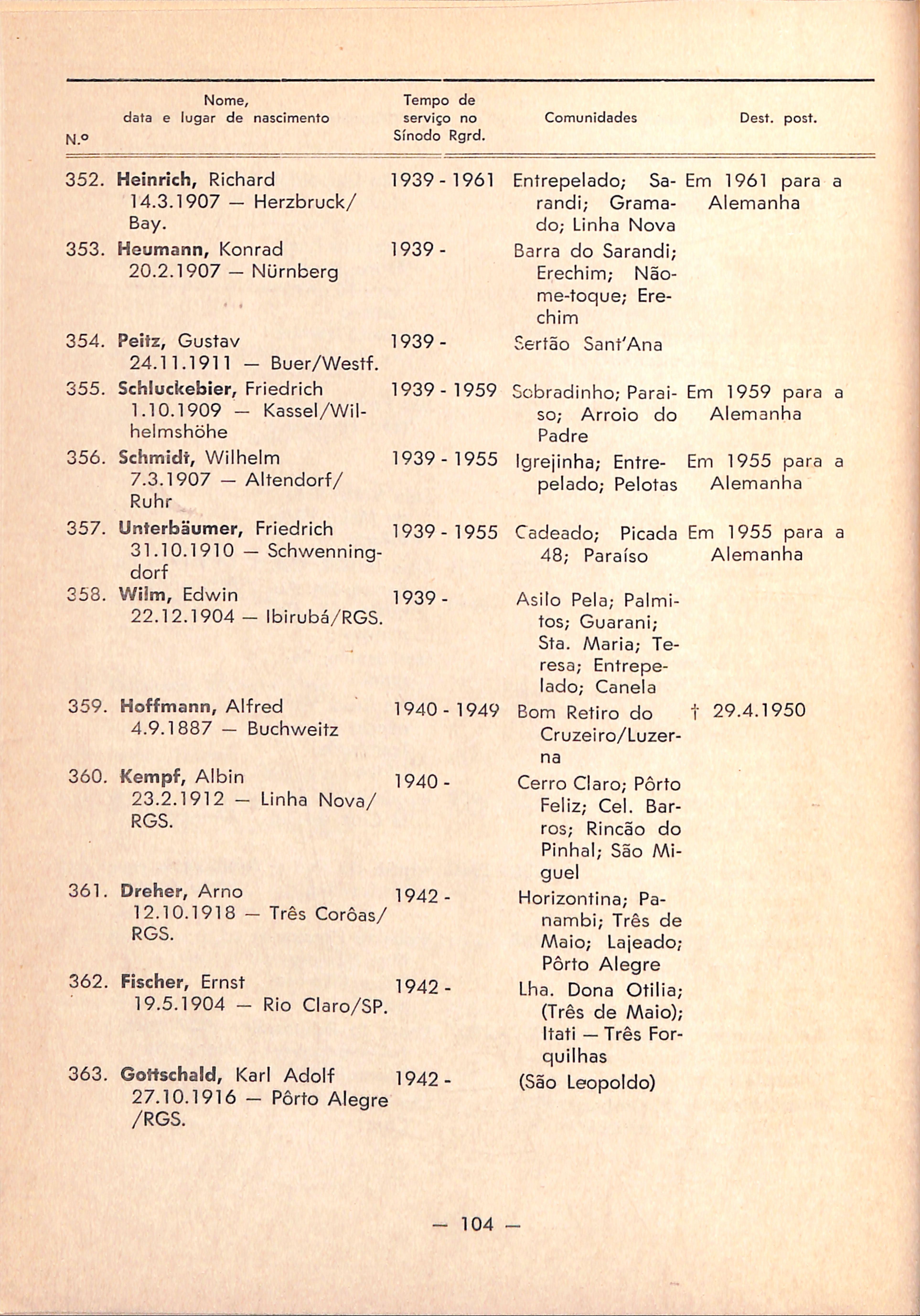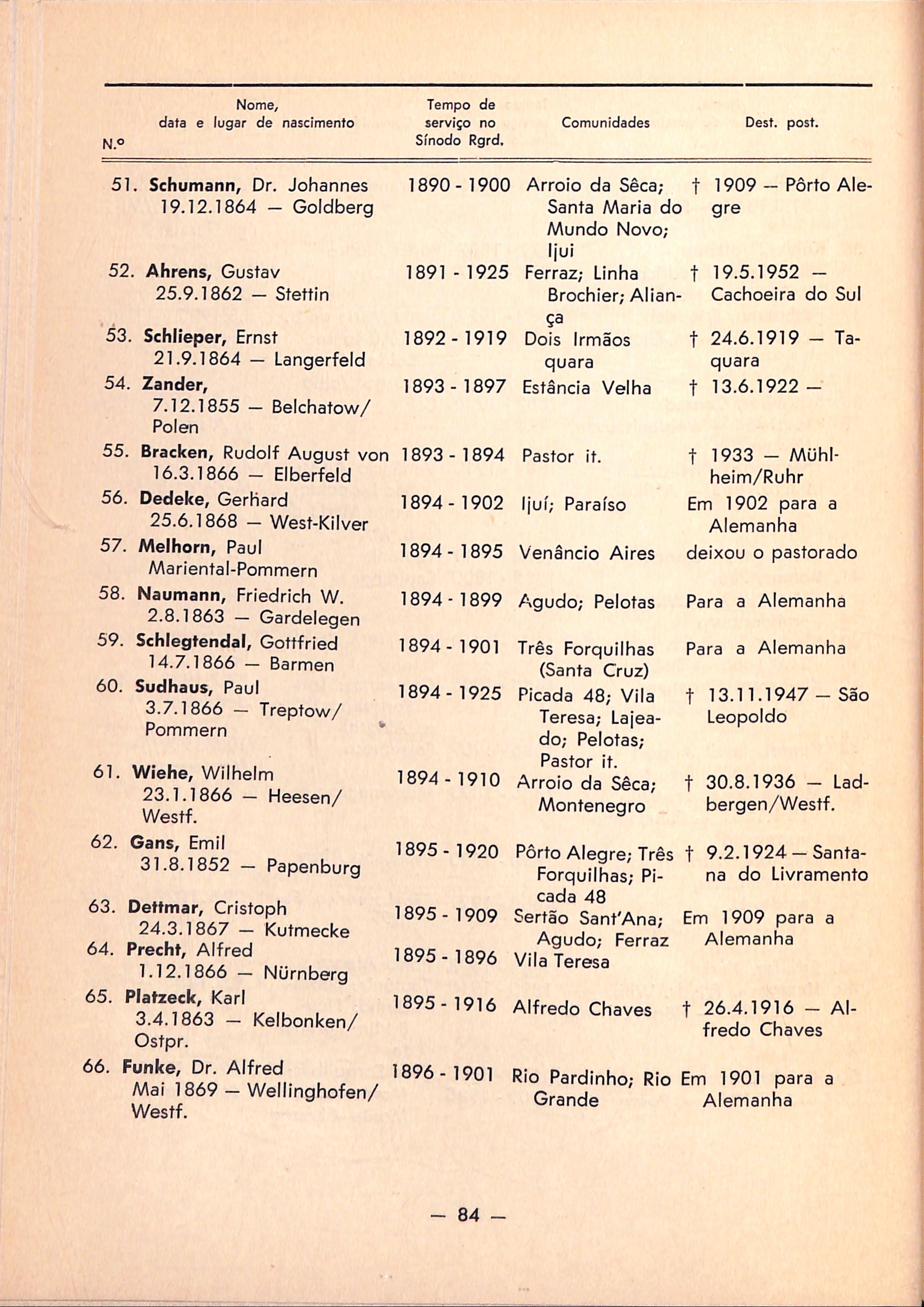 A Secretaria do Sínodo Riograndense (São Leopoldo, caixa postal 14) agradece informações baseadas em fontes seguras, que corrijam ou completem os dados da presente relação.