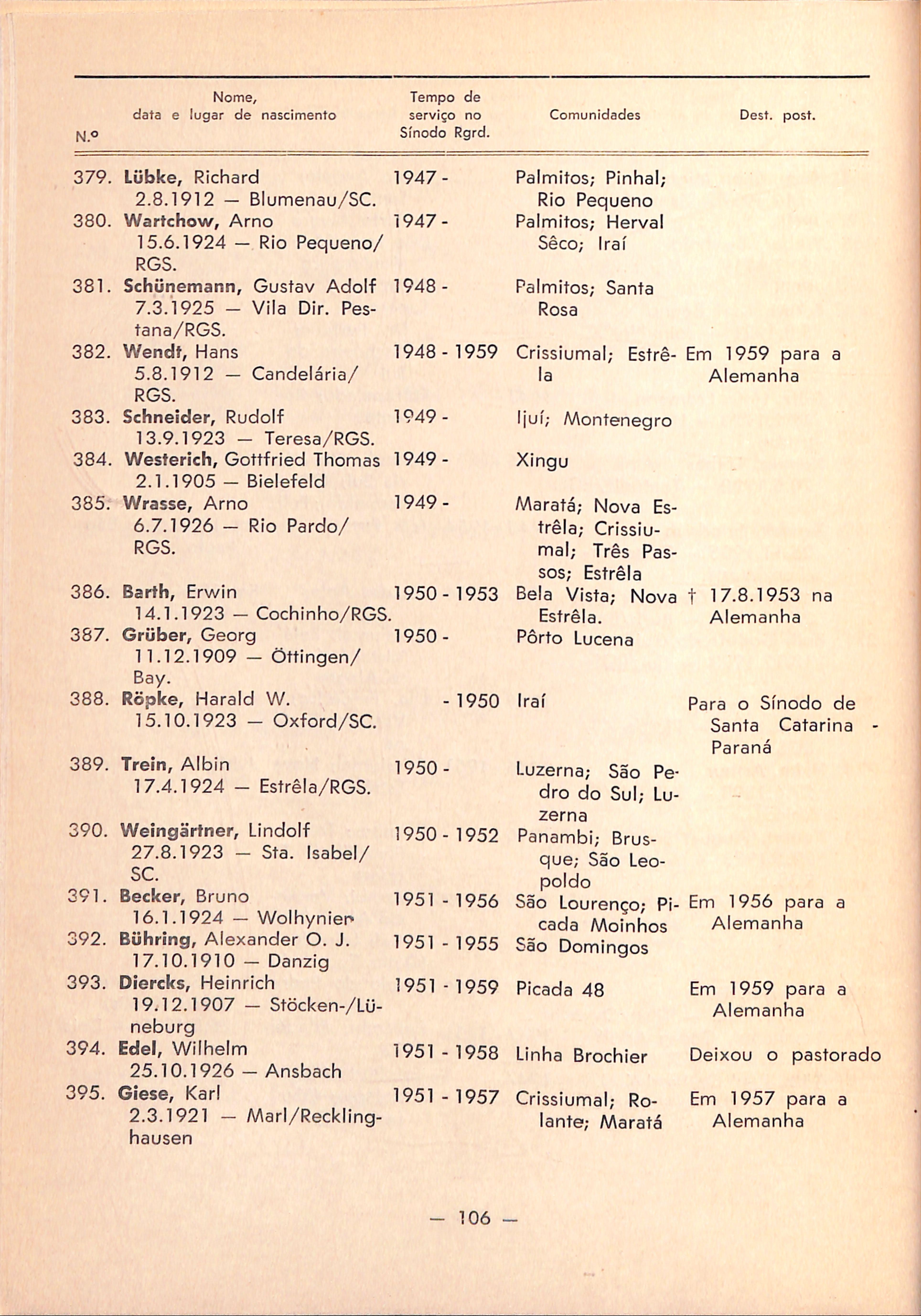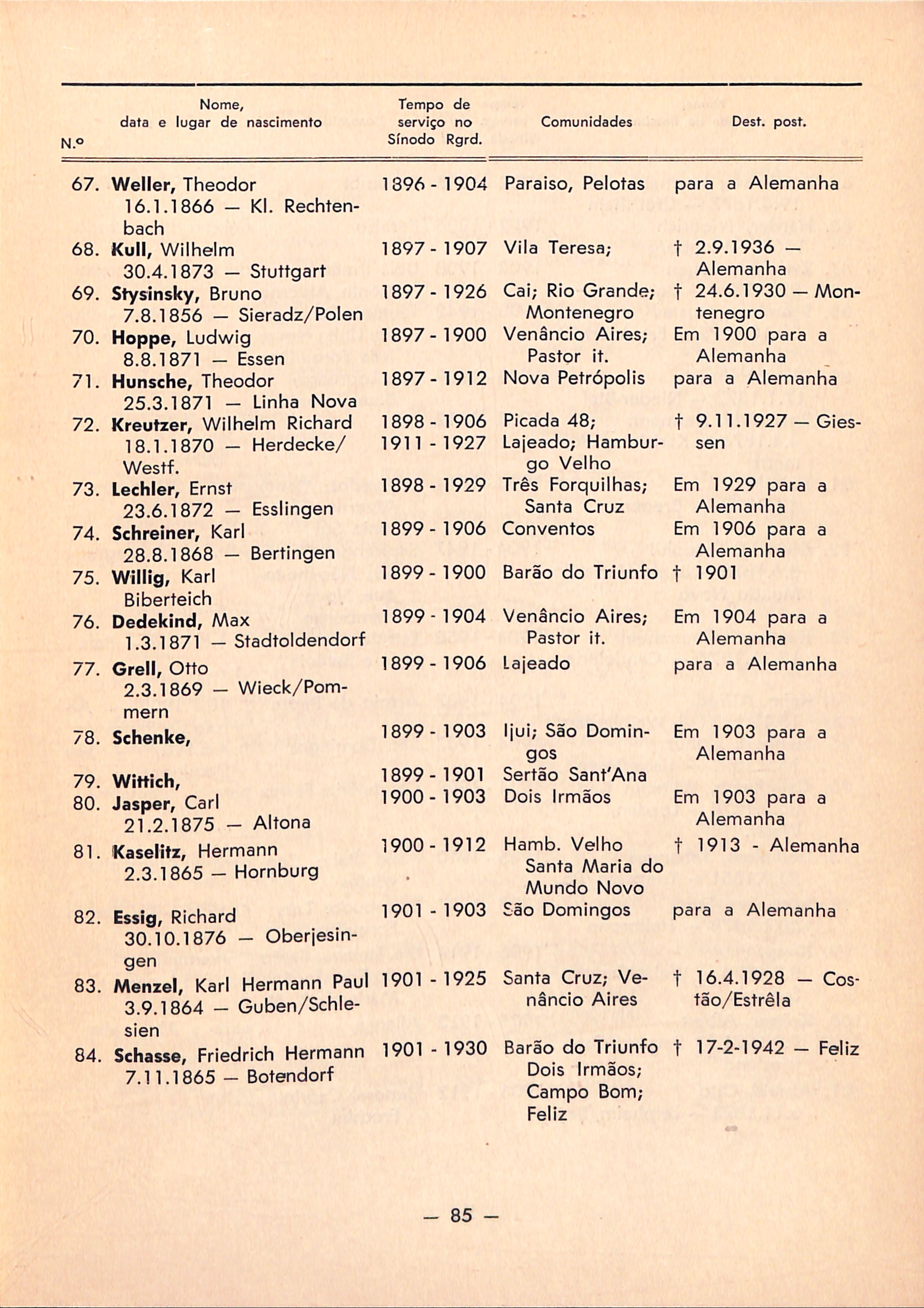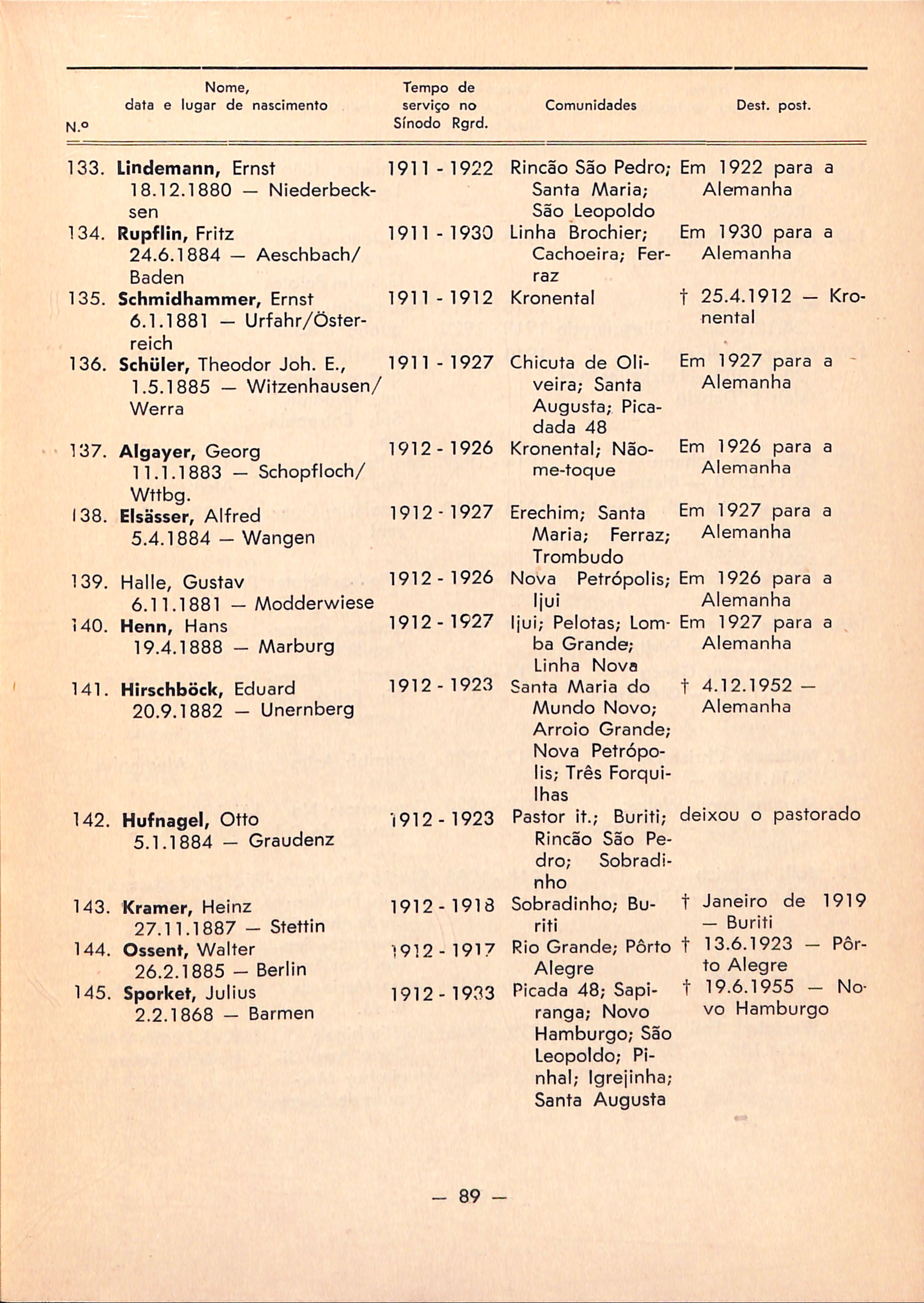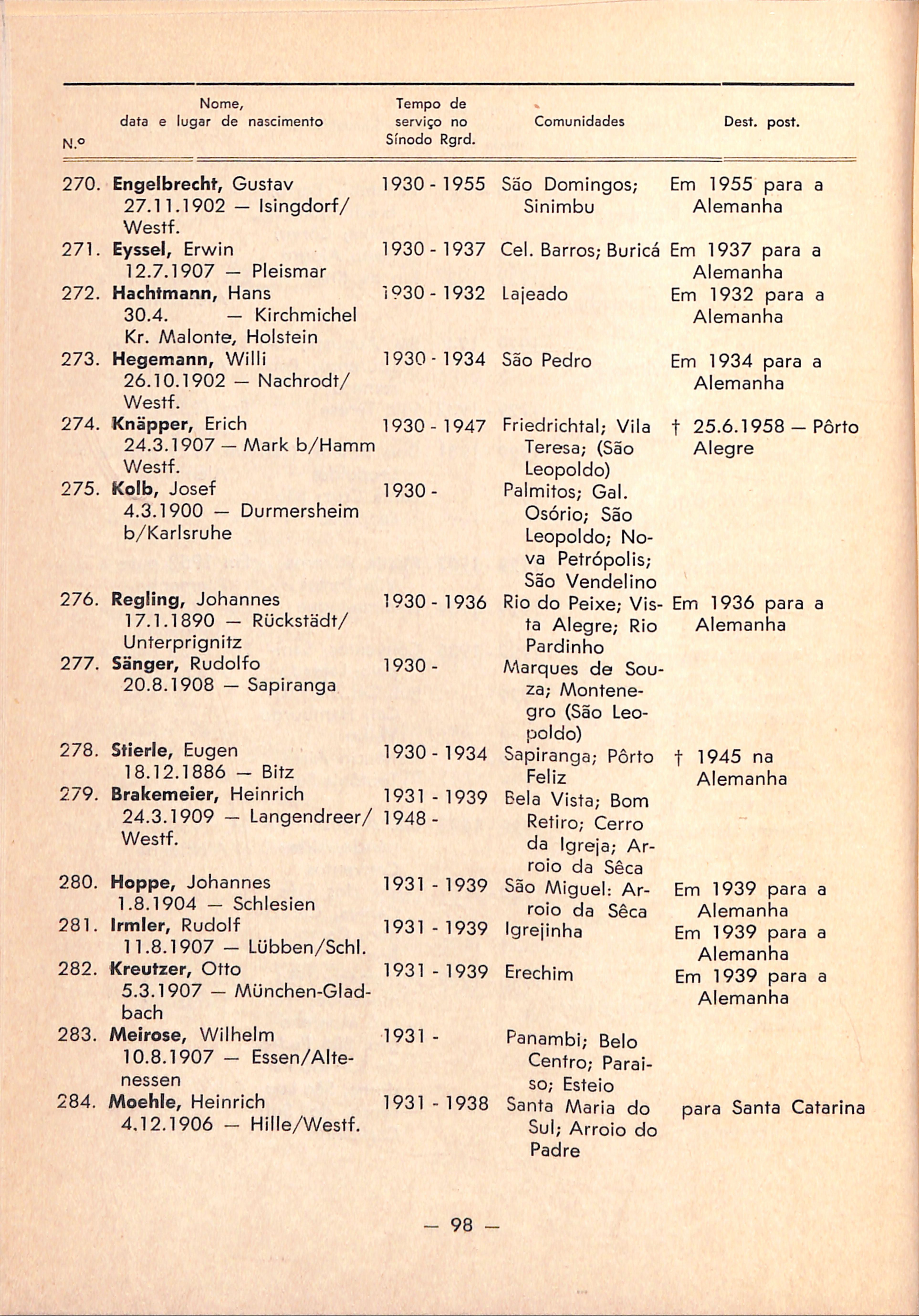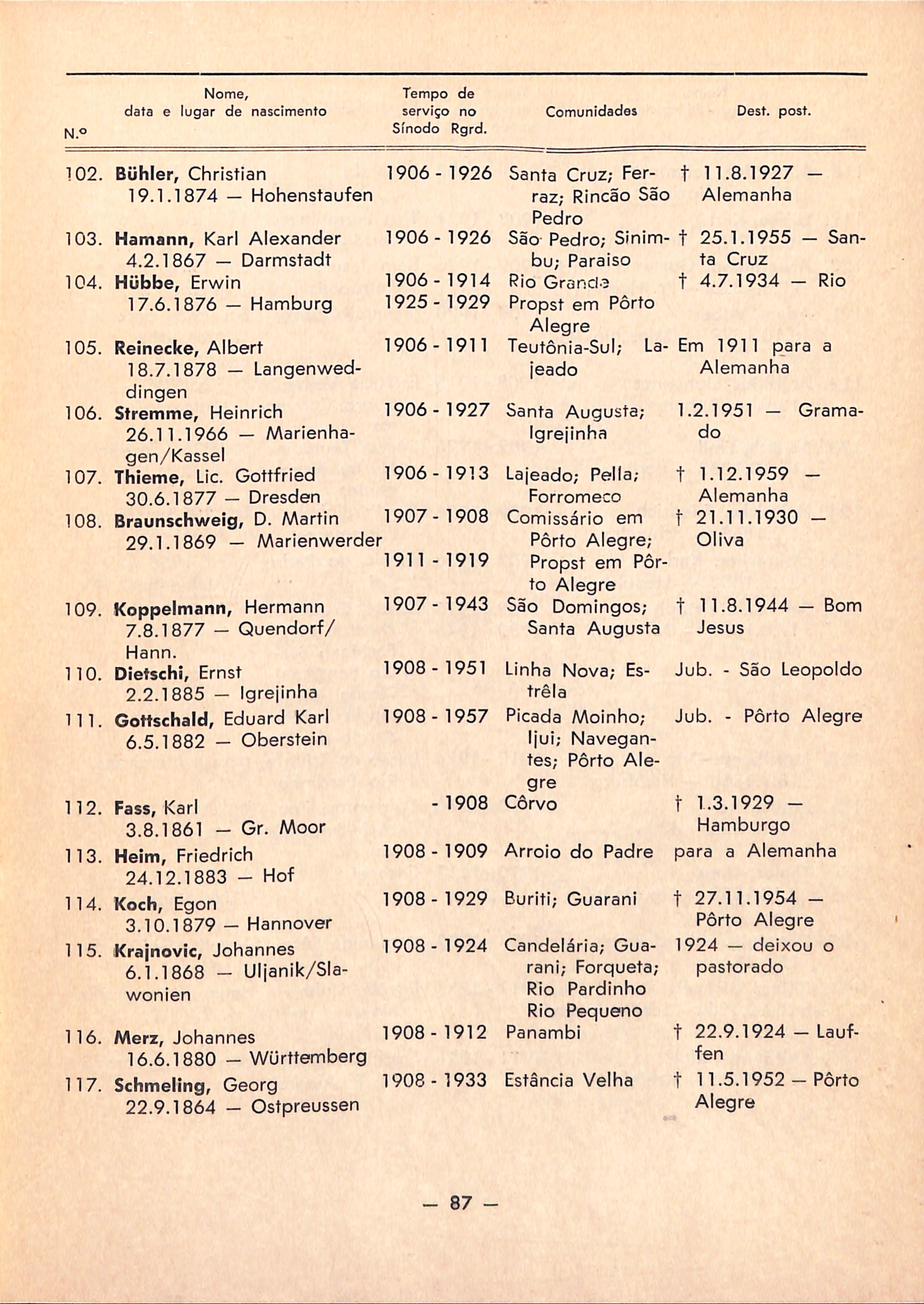 A Secretaria do Sínodo Riograndense (São Leopoldo, caixa postal 14) agradece informações baseadas em fontes seguras, que corrijam ou completem os dados da presente relação.