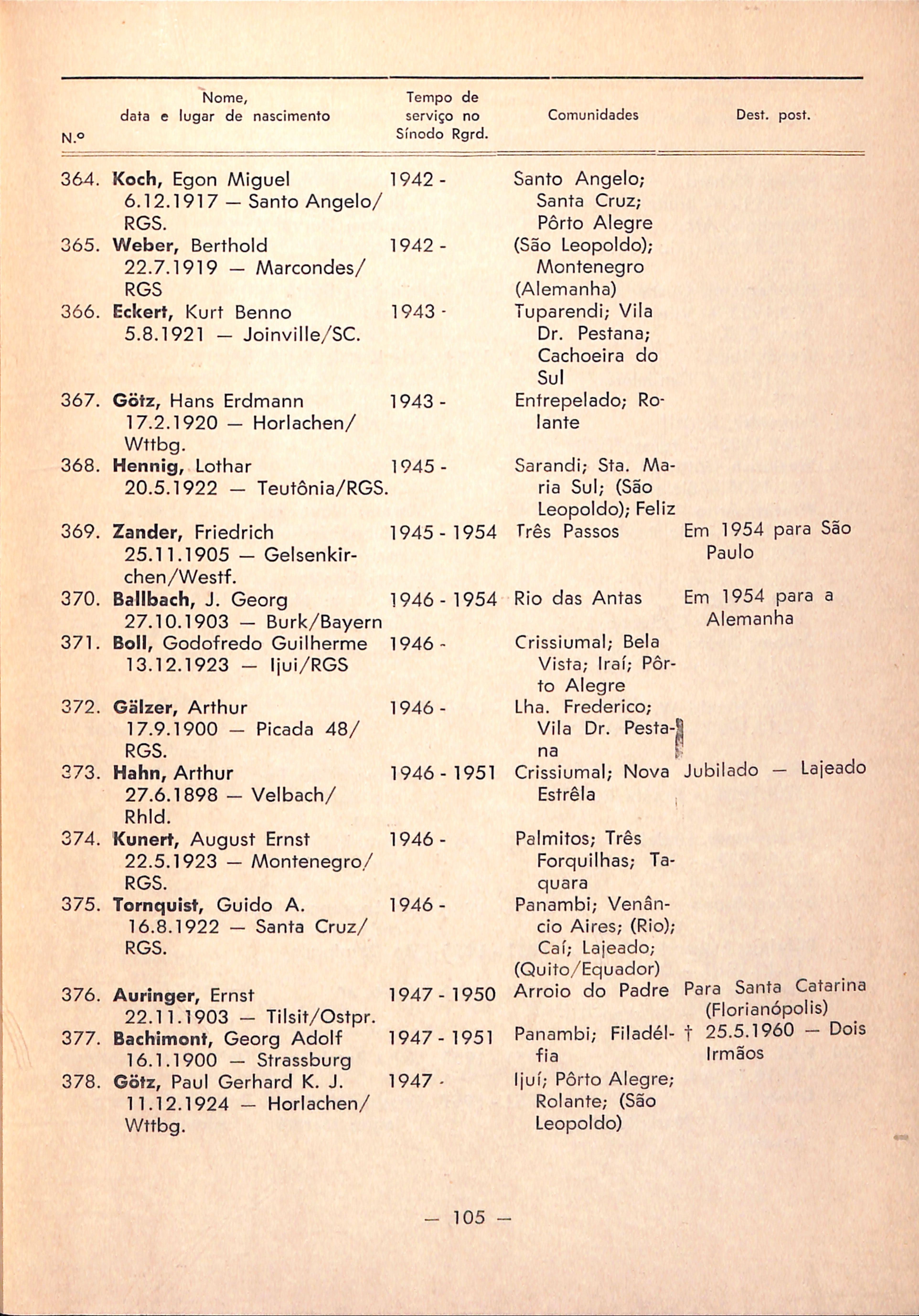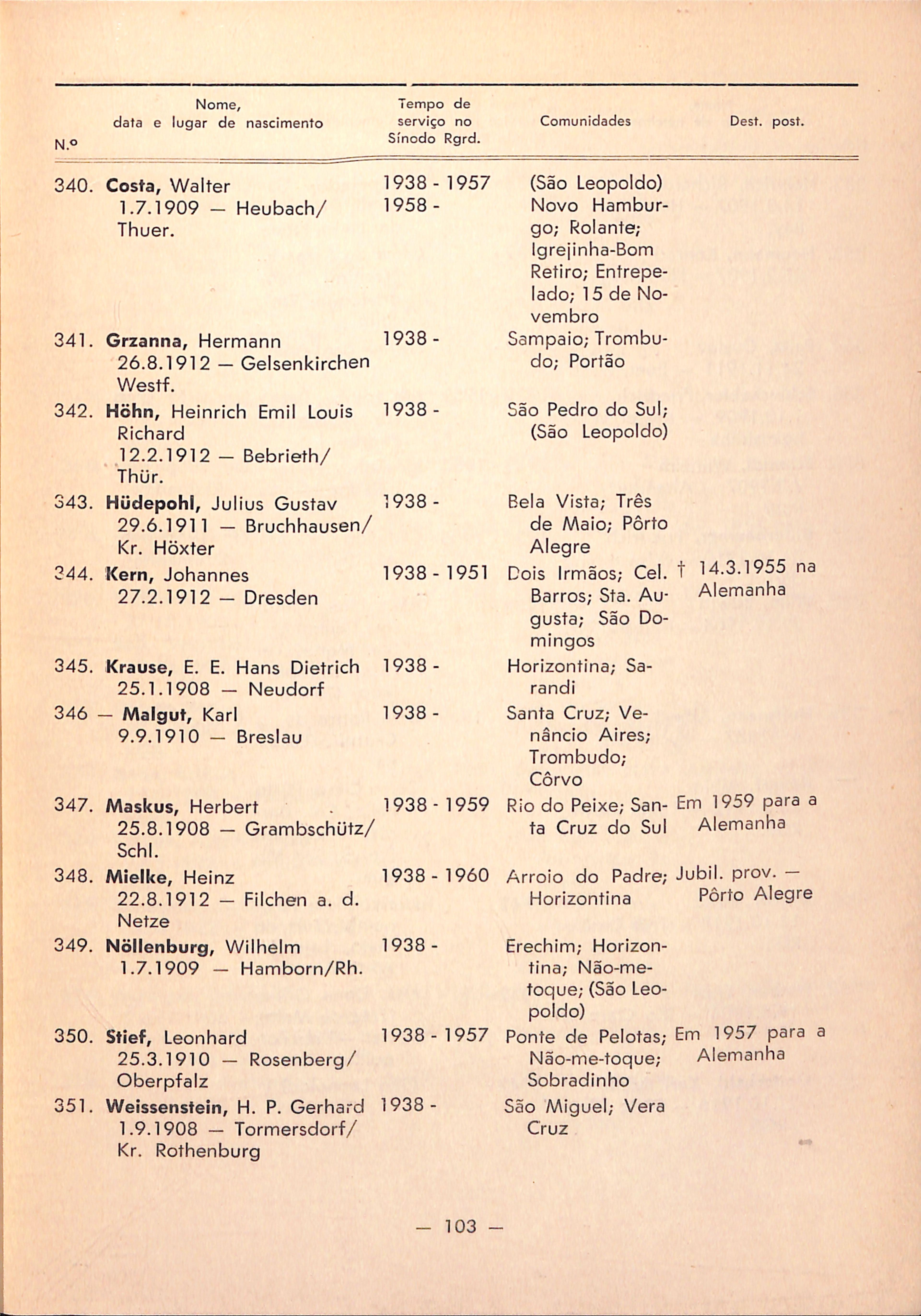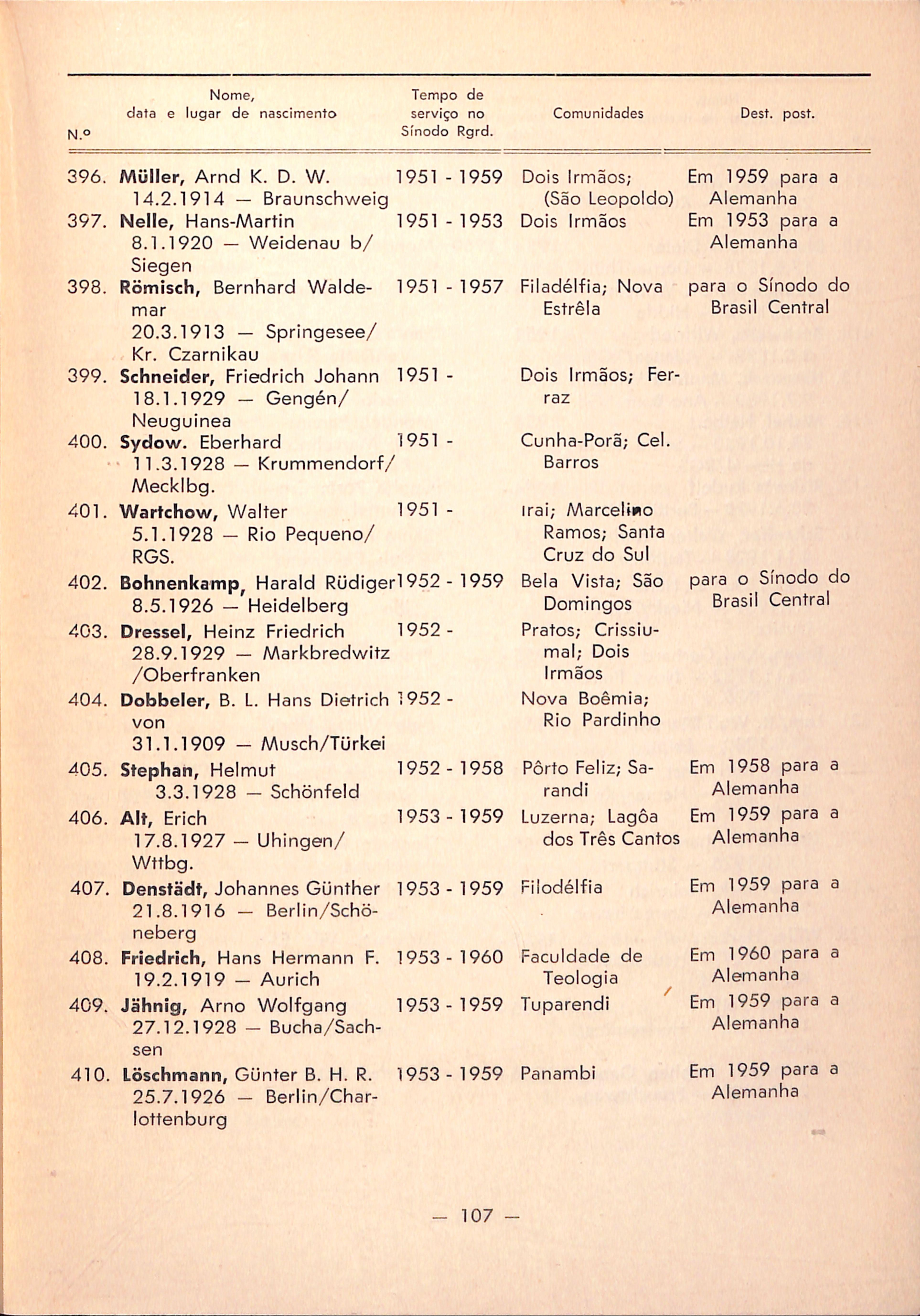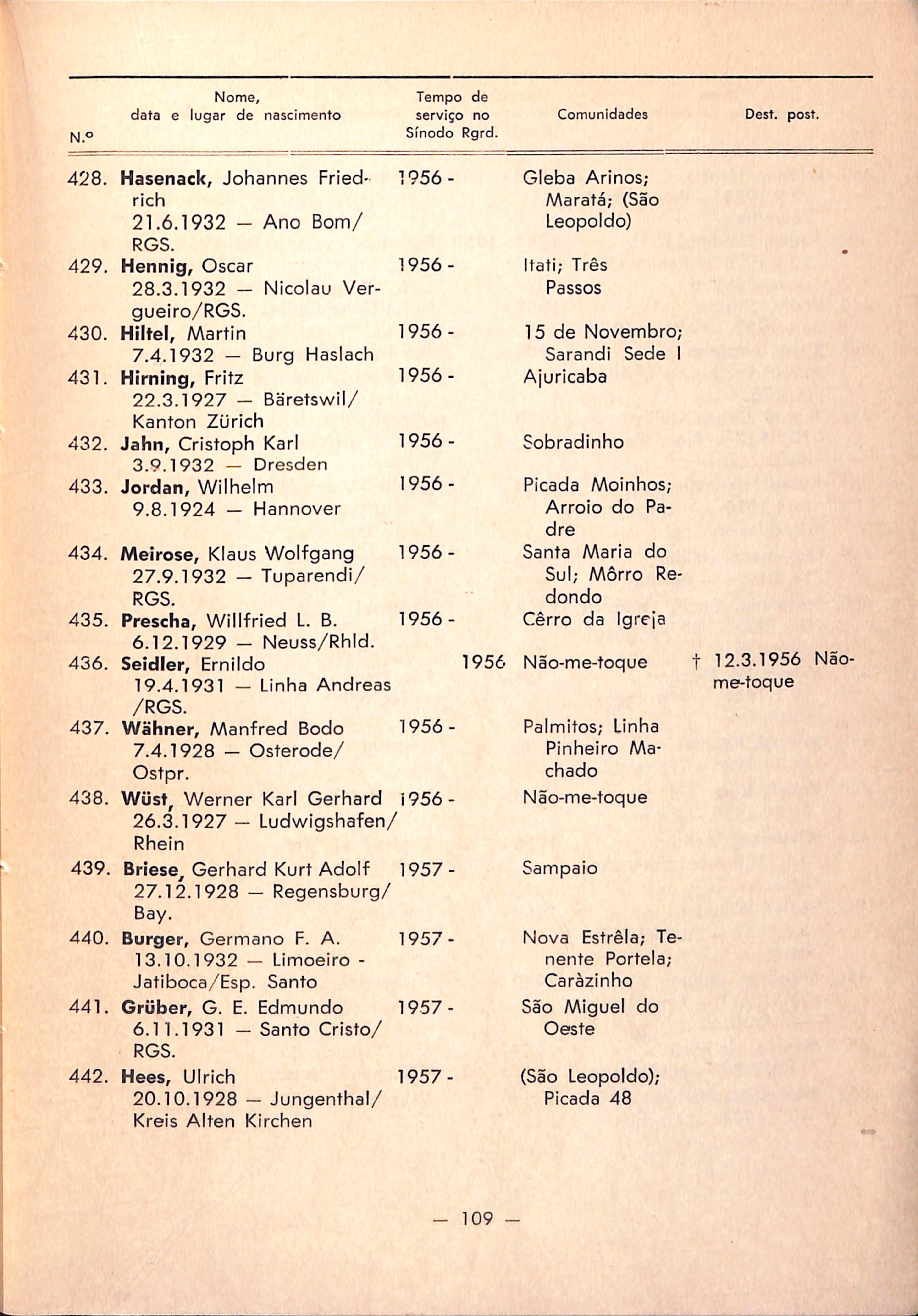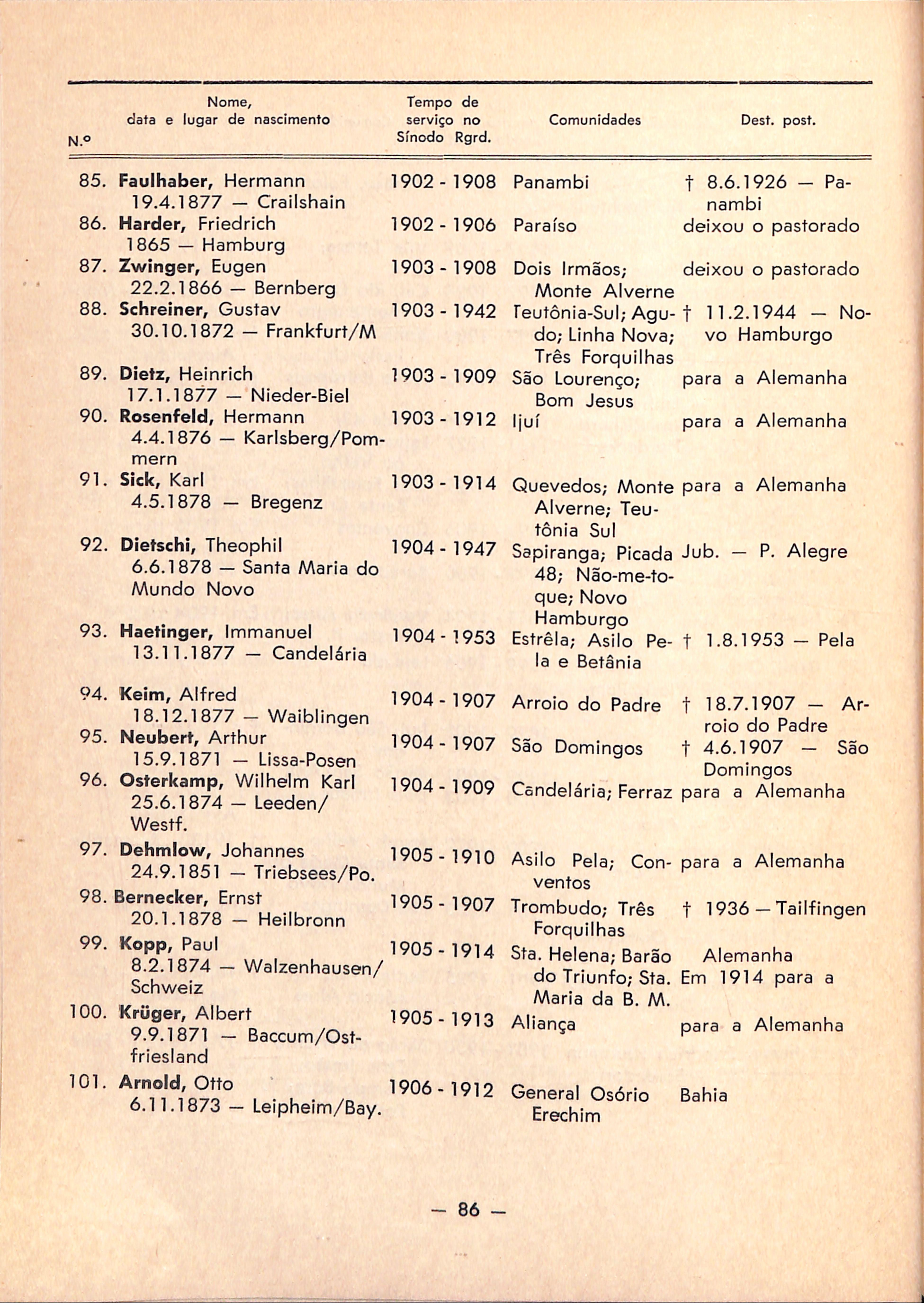 A Secretaria do Sínodo Riograndense (São Leopoldo, caixa postal 14) agradece informações baseadas em fontes seguras, que corrijam ou completem os dados da presente relação.