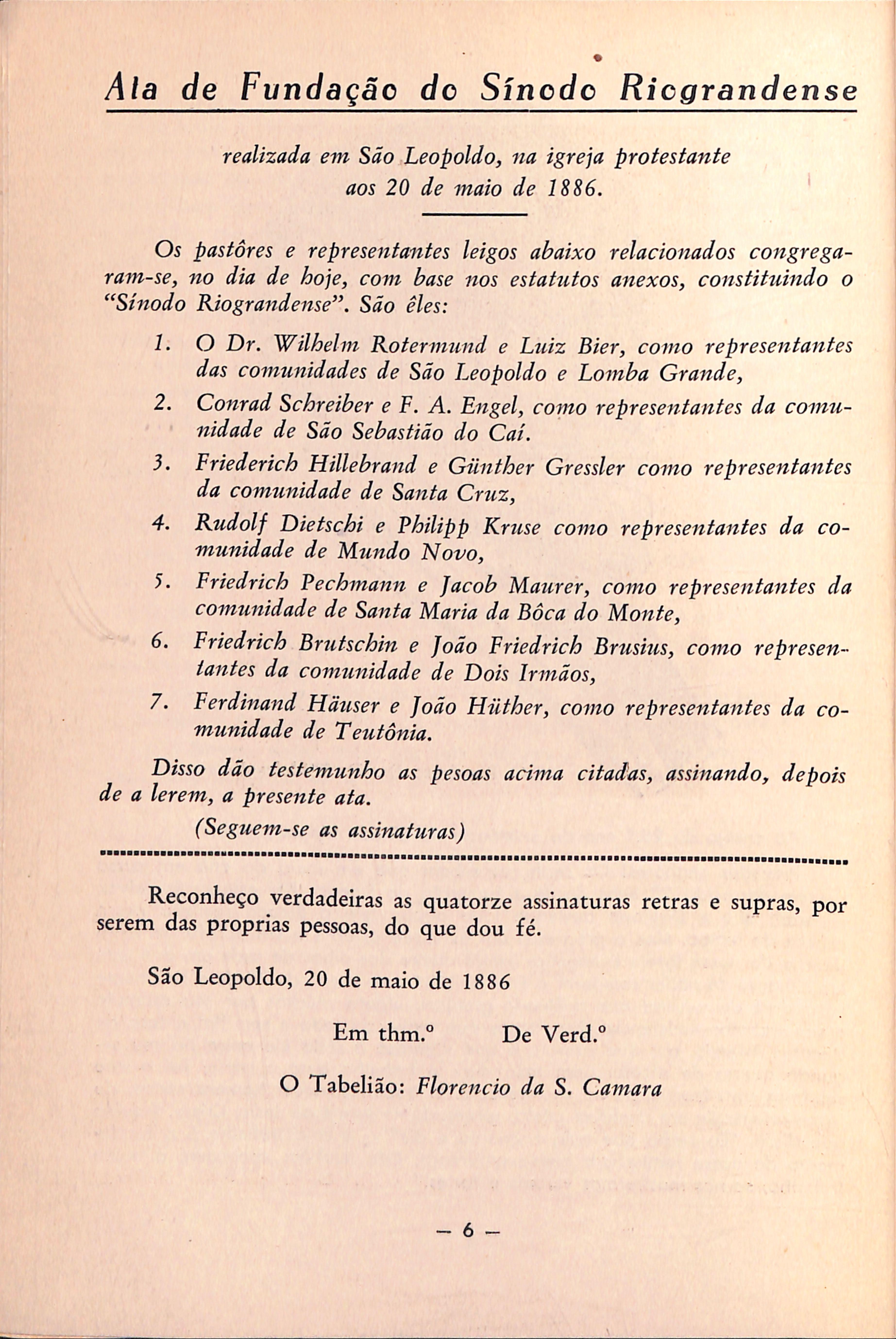 Friederich Hillebrand e Günther Gressler como representantes da comjinidade de Santa Cruz, Kudolf Dietschi e Philipp Kruse como representantes da co munidade de Mtindo Novo, Friedrich Pechmann e Jacob Maurer, como representantes da comunidade de Santa Maria da Bôca do Monte, Friedrich Brutschin e João Friedrich Brtisius, como represen tantes da comtmidade de Dois Irmãos, Ferdinand Hãuser e João Híither, como representantes da munidade de Teutônia.