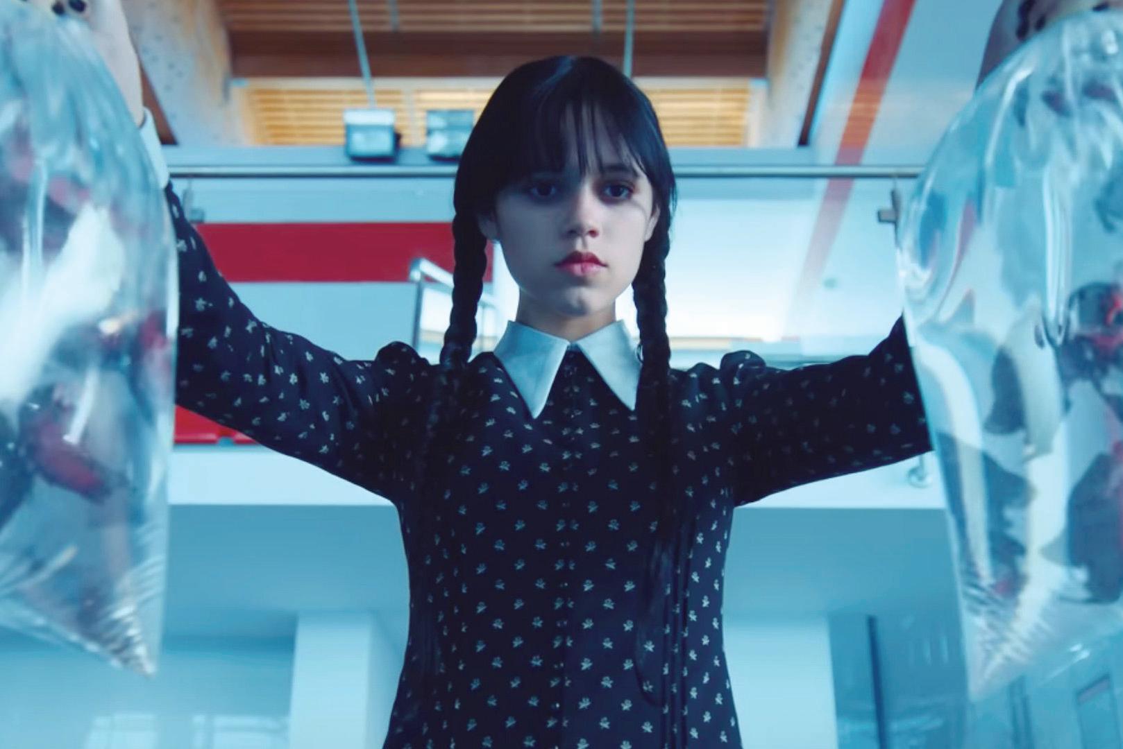 la serie sobre la juventud de Merli na Addams, fue presentado por Netflix a mitad de 2022, revelando a Jenna Ortega, por primera vez, en la piel de la escalofriante joven, con su clásico vestido de cuello camise ro y sus míticas trenzas.