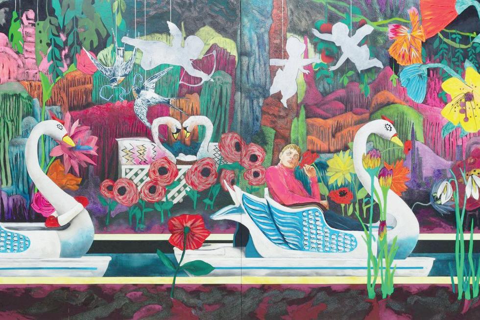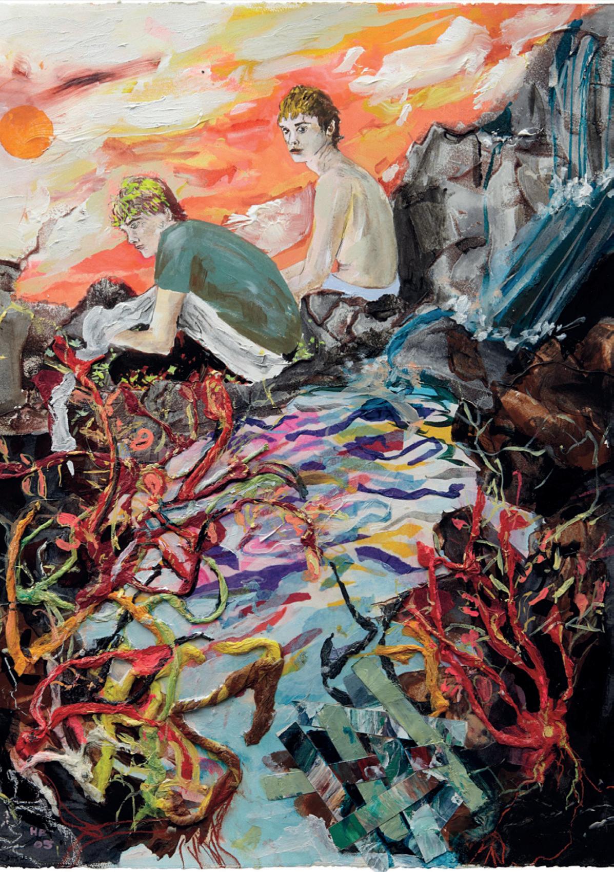 Hernan Bas crea pinturas, obras sobre papel, videos e instalaciones que entrelazan aventuras adolescentes con poesía clásica, relatos religiosos, mitología, lo paranormal y la literatura. Influenciado por el Romanticismo del siglo XVIII, que glorificaba la sublime belleza de la naturaleza, y el movimiento decadentismo del siglo XIX, que evocaba el nihilismo romántico, el escepticismo, el exceso y la artificialidad, las primeras obras de Bas a menudo retrataban figuras masculinas adolescentes casi ocultas, sumidas en la contemplación en medio de vastos paisajes de otro mundo. A medida que la figura y los interiores que ocupaban cobraban mayor relevancia en la obra de Bas, también lo hacía el contexto social y cultural en el que vivían. Abarcando una amplia gama de épocas y temas, Bas investiga la inquisición, el deseo y las obsesiones, e invita