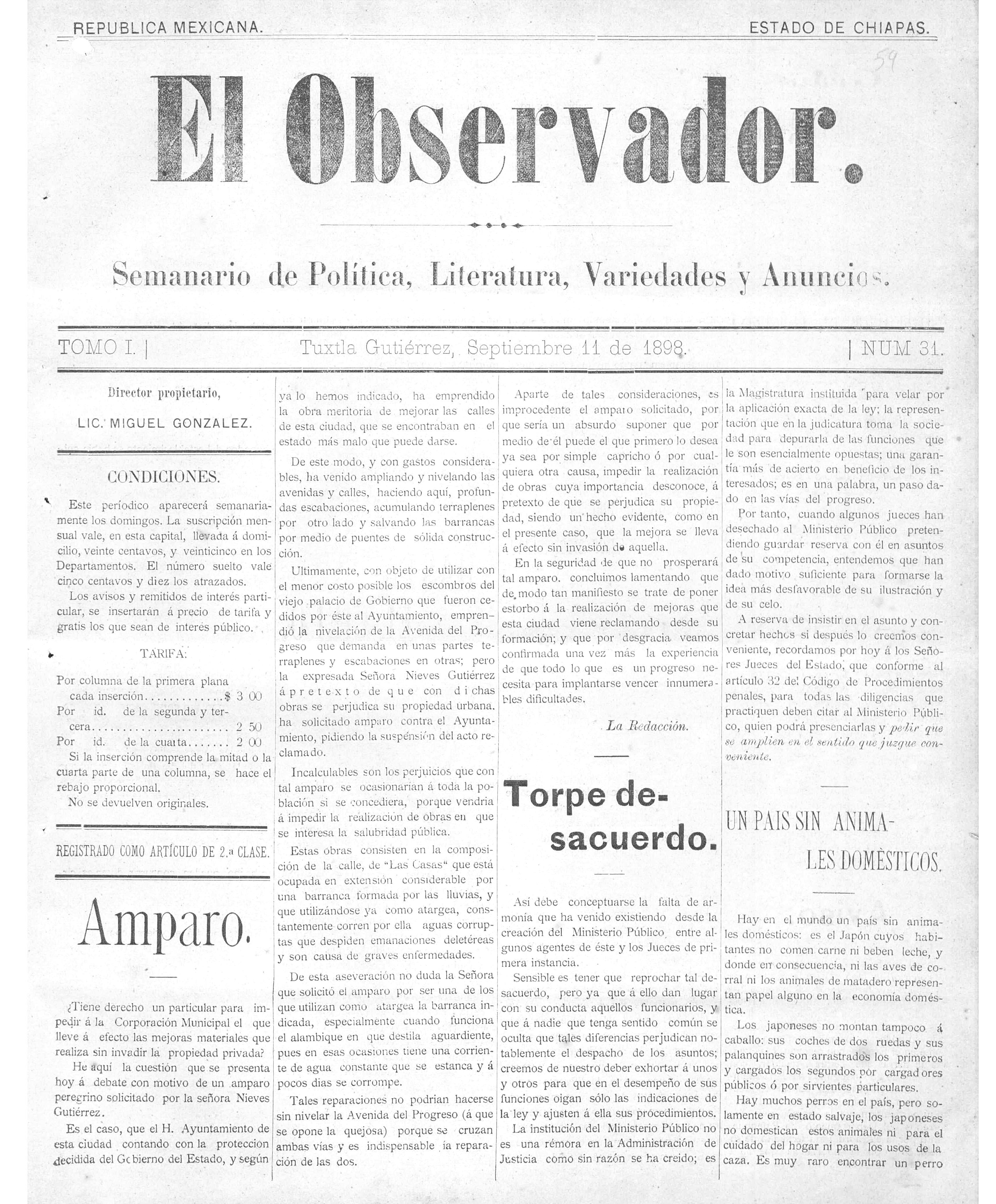 PORTAVOZ: El diario de todas las voces. Periódico de lunes a viernes. Editor responsable: José Juan Balcázar Moreno. Número de Certificado de Reserva de Derechos al Uso Exclusivo, otorgado por el Instituto Nacional del Derecho de Autor: 04-2019-051613453700-101. Número de Certificado de Licitud de Título y Contenido: 17346. Domicilio de la Publicación, Imprenta y Distribuidor: Primera Norte Oriente 1445, Centro, C.P. 29000. Tuxtla Gutiérrez, Chiapas.