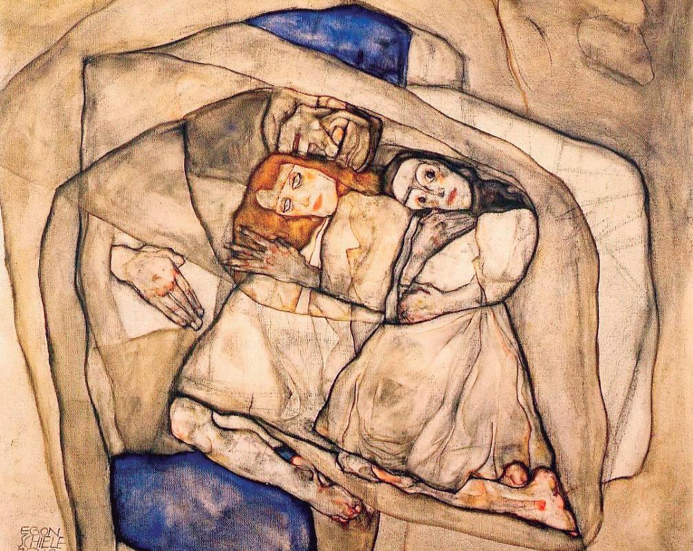 Y es que Schiele tenía verdadero amor por el desnudo. Eran los suyos desnudos duros y agudos, con líneas cortantes e incisivas, pero no solo físi-