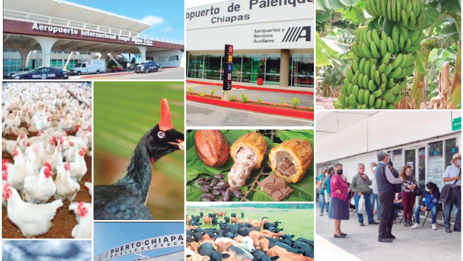 Chiapas es el principal productor de café orgánico, aporta 41.0 por ciento del volu men nacional que alcanza una producción total de 1.8 millones de sacos, lo que da trabajo a 175 mil 757 productores de café. Somos el 2do estado productor de cacao detrás Tabasco (68.59 por ciento), y noso tros (30.97 por ciento). Cada año en Chiapas se producen 360 millones de kilos de carne de pollo que se comercializa en 28 estados del país. Somos el 3er lugar nacional por el valor de la producción de ganado bovino. Tenemos el 30 por ciento de agua dulce de todo el país, el 60 por ciento de la biodiver sidad de todo el país. Ciudades coloniales, sitios arqueológicos, bellezas naturales, 278 kilómetros de esteros y litoral desaprove chados y una superficie de 7.48 millones de hectáreas, de las cuales poco más de la mi tad están aún hoy, a pesar de la destrucción, cubiertas de árboles.