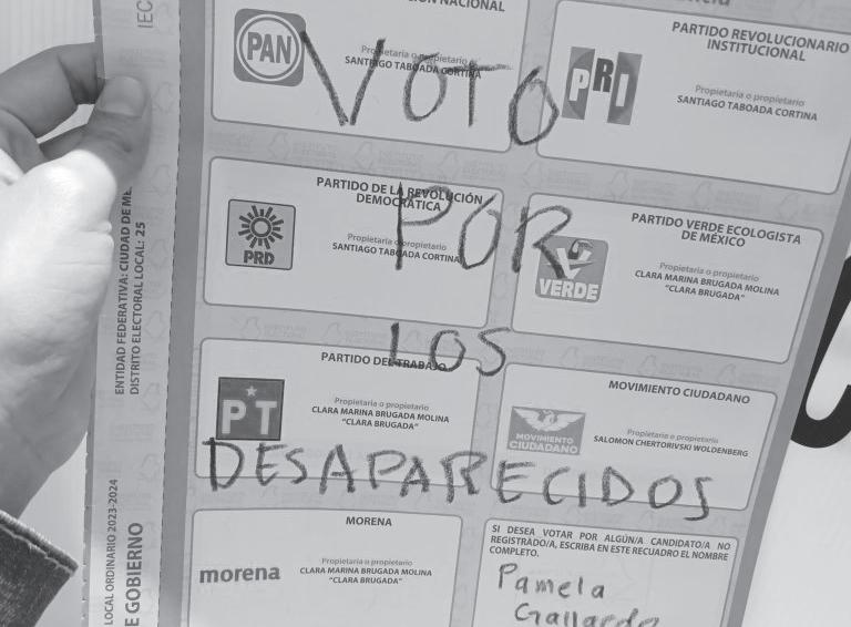 De acuerdo con su página de Internet: https://votaxdesaparecidos. wordpress.com, la campaña «Votar por una persona desaparecida» consiste en utilizar el apartado «candidatos no registrados», que se encuentra al final de la boleta