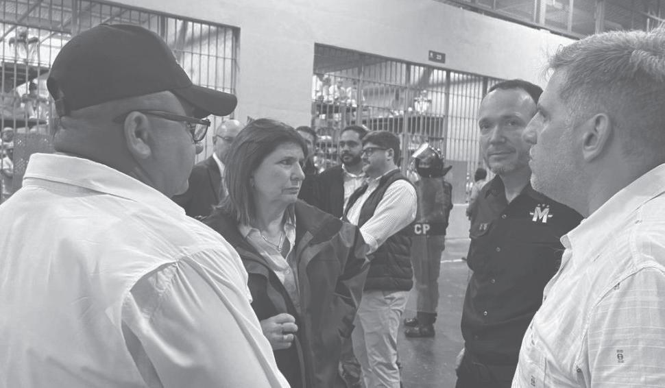 La ministra de Seguridad de Argentina, Patricia Bullrich, visitó el Centro de Confinamiento del Terrorismo (CECOT) en El Salvador, donde se espera se encontró con el presidente salvadoreño, Nayib Bukele.