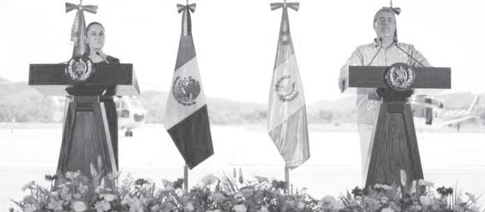 “Fue una muy buena reunión (con el presidente de Guatemala el pasado viernes) y además lo que estamos trabajando, que es la extensión hacia Guatemala, o la continuidad del tren interoceánico, de la línea K de Ixtepec a Ciudad Hidalgo y que cruce a Guatemala. Obviamente eso ya lo haría Guatemala bajo sus propias normas, reglas, leyes”, puntualizó.