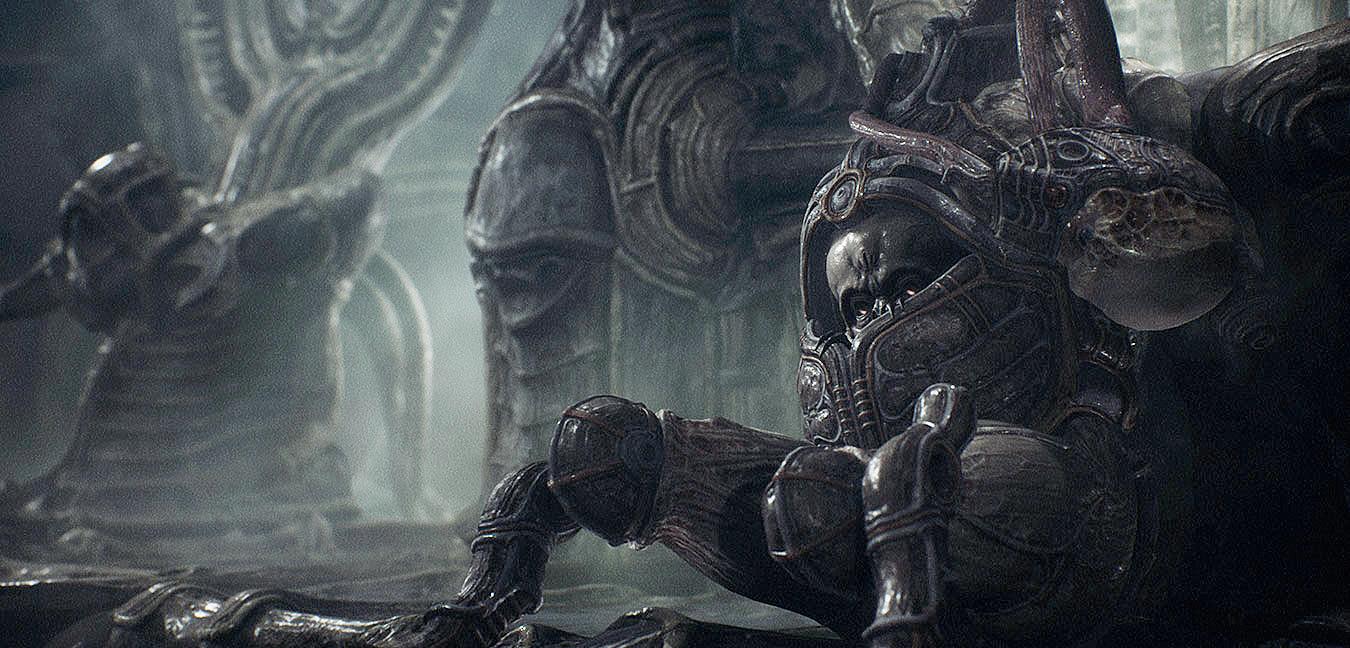Scorn se desarrolla en un universo de pesadilla con formas extrañas y un entramado sombrío.