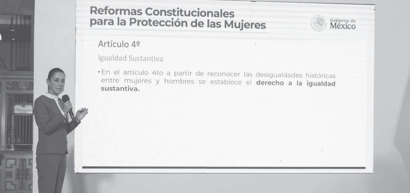 En el artículo cuarto se incorpora el derecho a la igualdad sustantiva, que tiene que ver no solamente en la igualdad... sino que además todas las leyes y todas las disposiciones de nuestro país tienen que considerar las particularidades de las mujeres y sus derechos humanos”, detalló Sheinbaum Pardo.