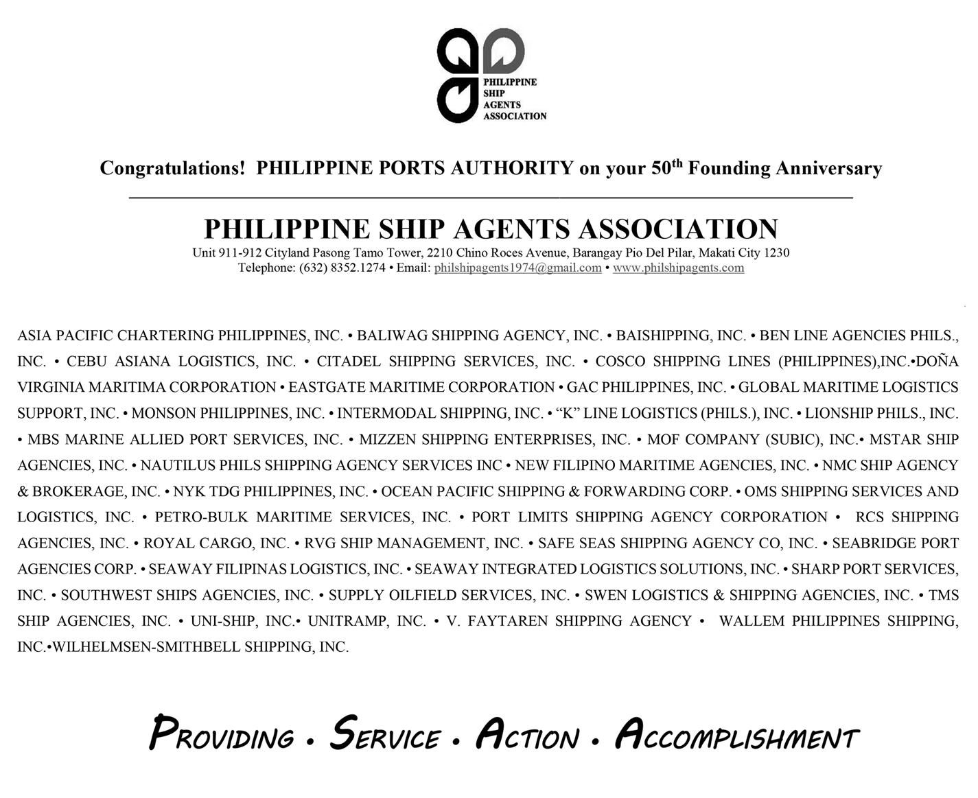 Committed to fostering efficient, modern, and sustainable port infrastructure projects to support national development and global connectivity, PPA has been serving the people and connecting the Philippine islands to world since its inception.