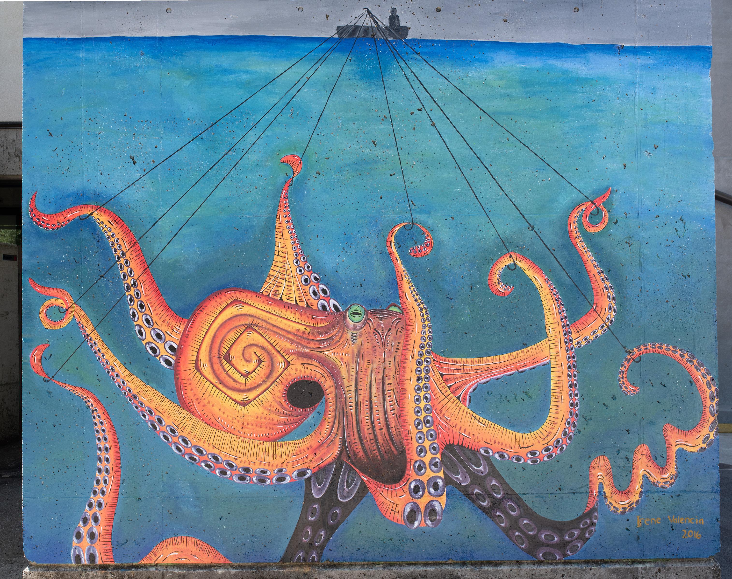 My mural called “Under the Sea” will not only enhance the beauty of Porter College, but will also promote diversity of the arts. This mural depicts an image of a fisherman in the process of capturing a massive octopus. I chose an octopus to represent ourselves as “liberated” creatures as an octopus displays “human-like” tendencies such as protection of food, intellectual abilities, and impressive memory retention skills. Whereas, the fisherman portrays “power”. The entirety of the image addresses the issue of “control” versus “freedom”. By this logic, individuals can break free from restraining forces (internal, external, etc.) through self-determination and community support. As students, we are powerful forces capable of overcoming many obstacles, but I think this how we approach every situation that will contribute to our well-being. As a result of upholding a set of values and beliefs, true to themselves, people can rise above their struggles to achieve greatness.