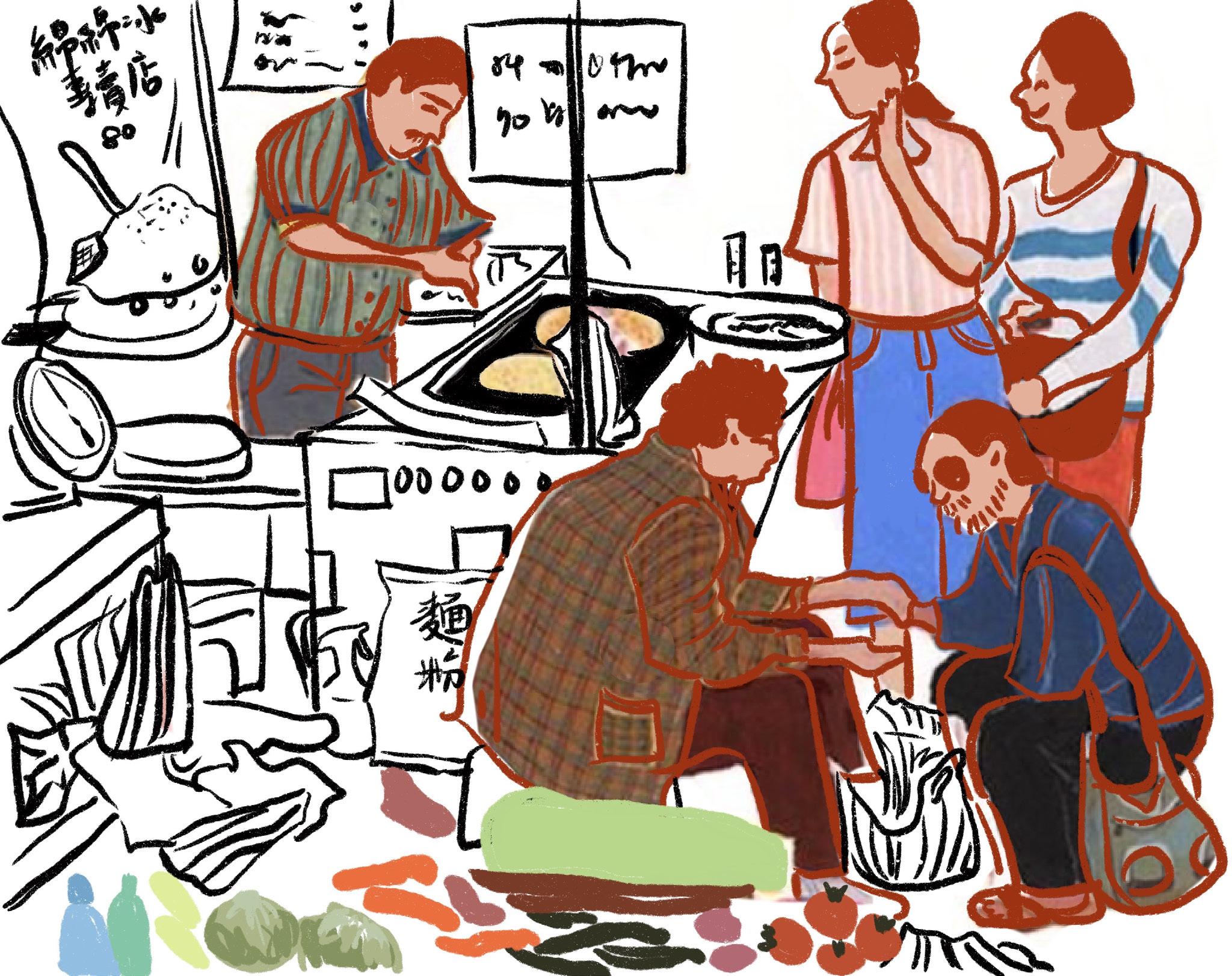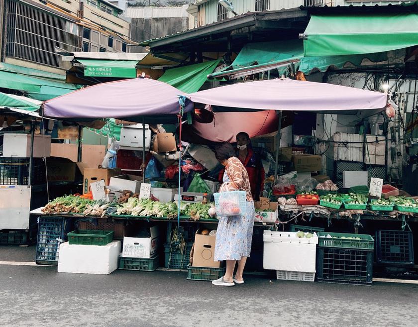 生鮮蔬果攤販與熟食區的過渡空間行為